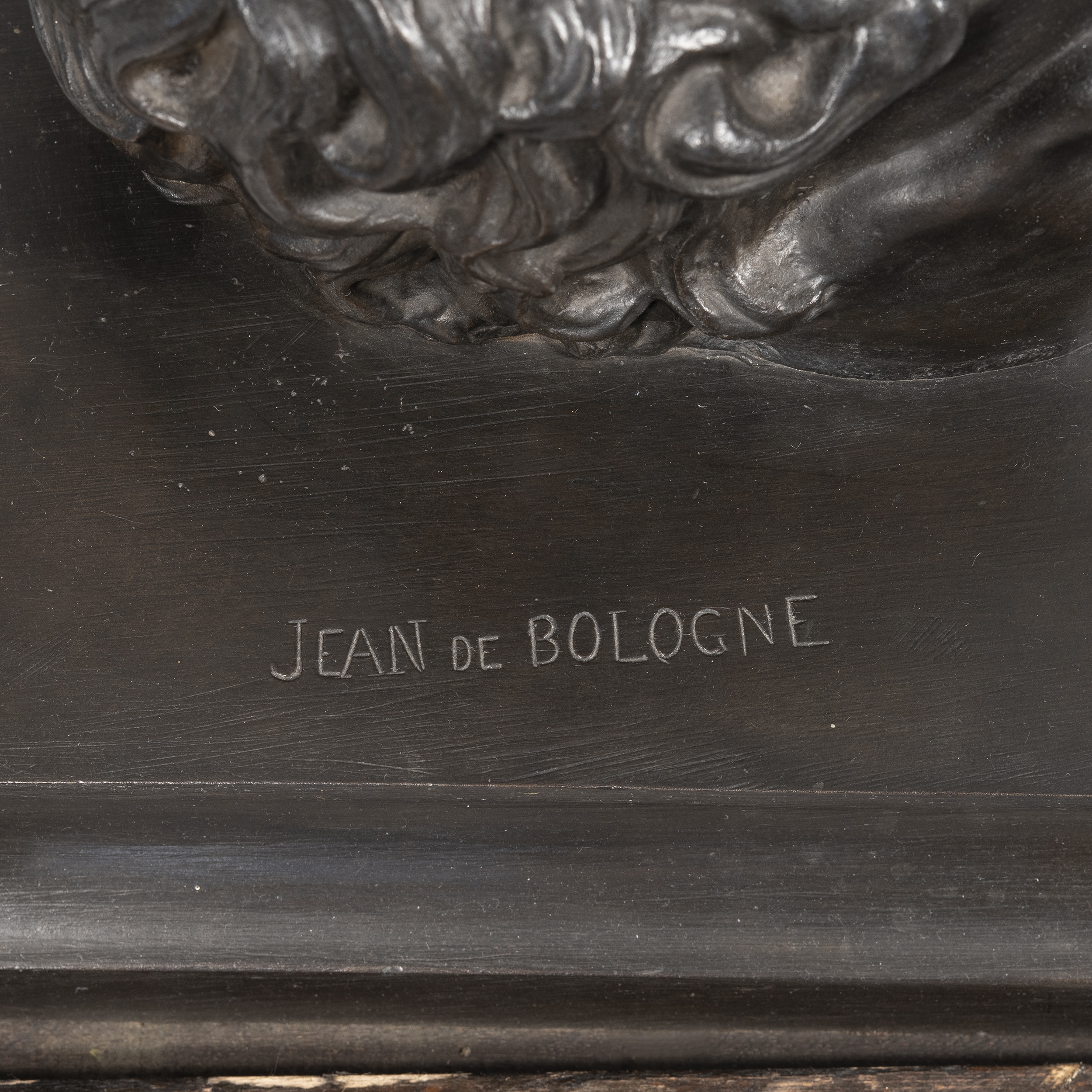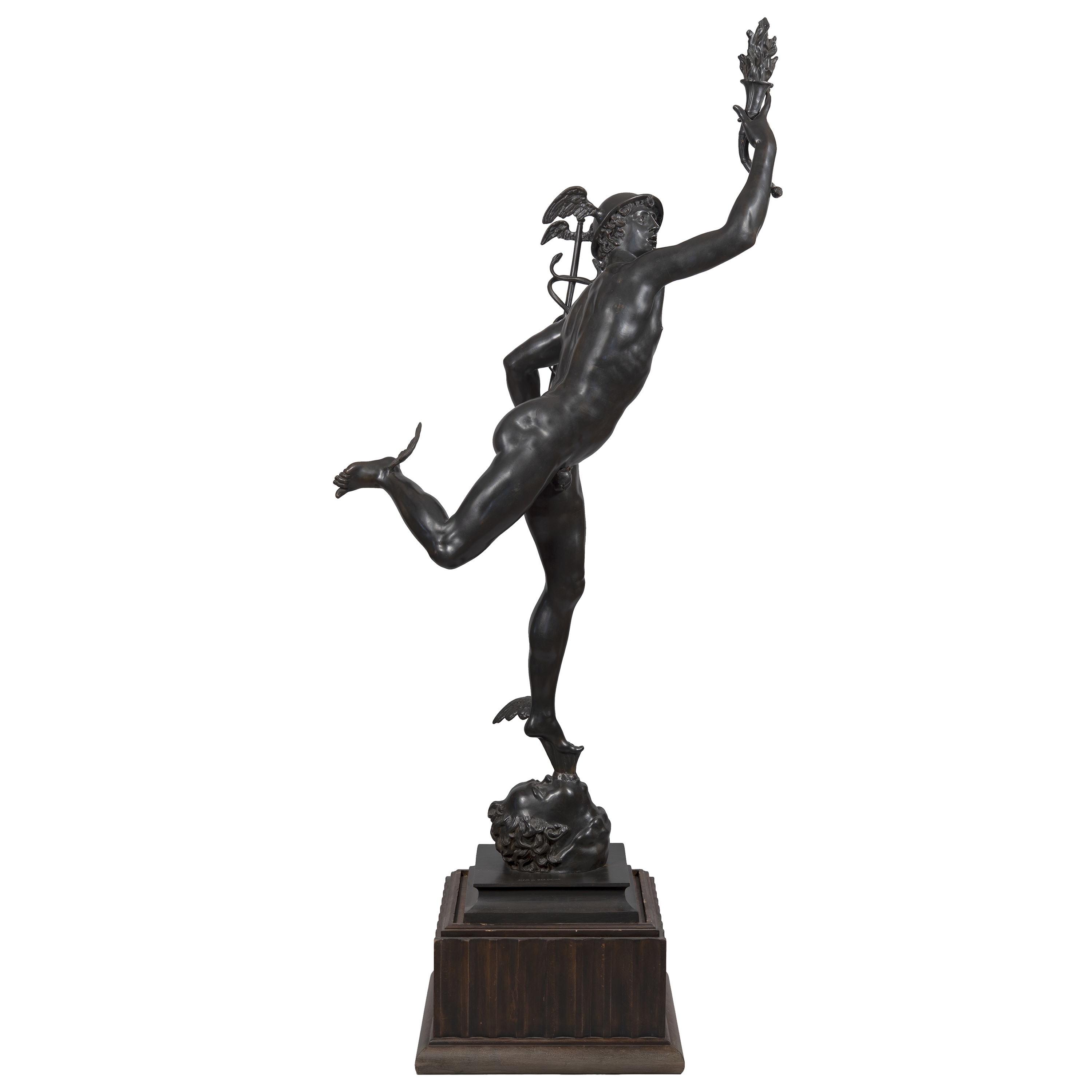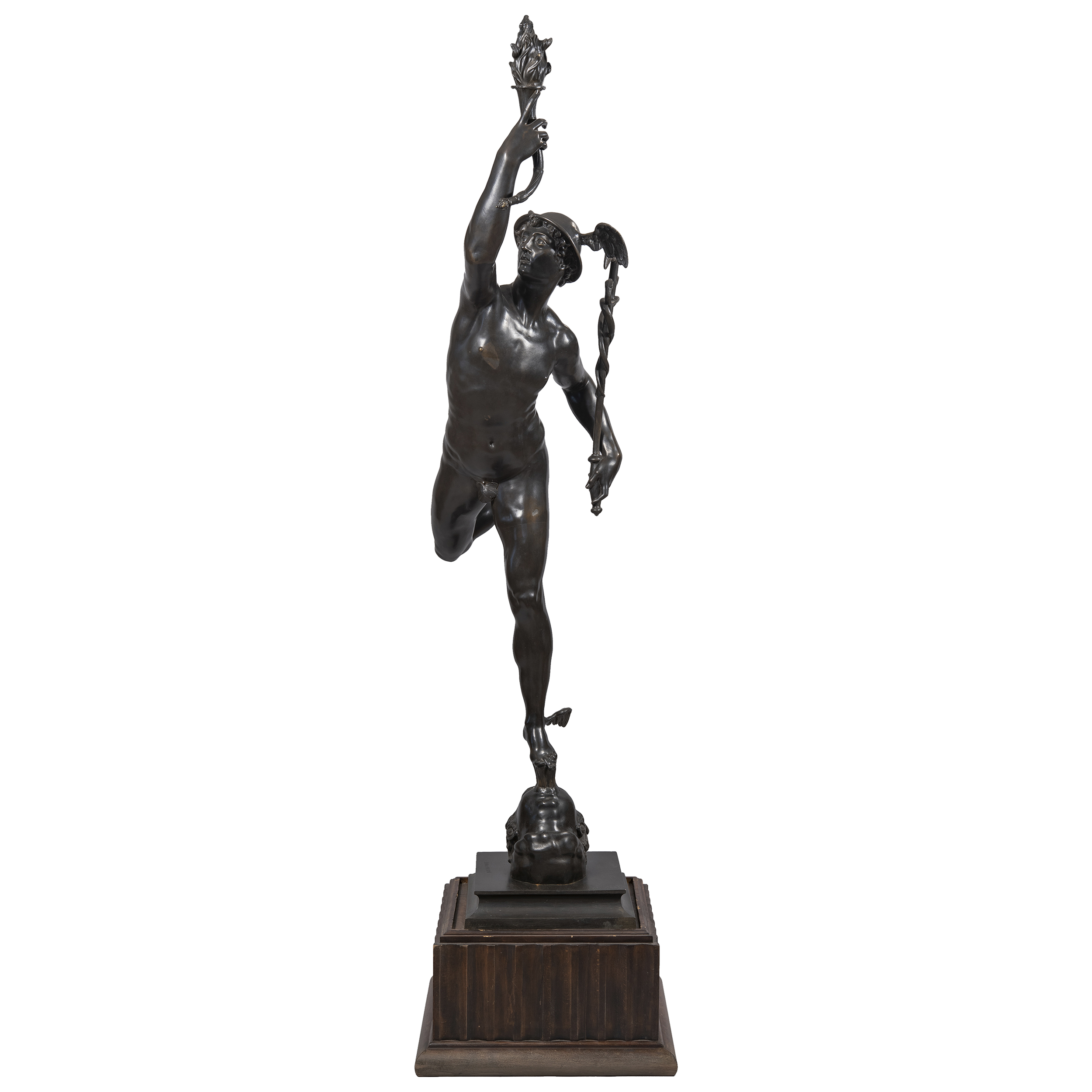 Выполнена по модели 1580 года флорентийского скульптора XVI века Джованни да Болонья (Джамболонья). Бронза, литье, проработка, патинирование, монтировка, на постаменте воспроизведение факсимиле подписи скульптора: «JEAN DE BOLOGNE», Европа, конец XIX века, высота - 201 см