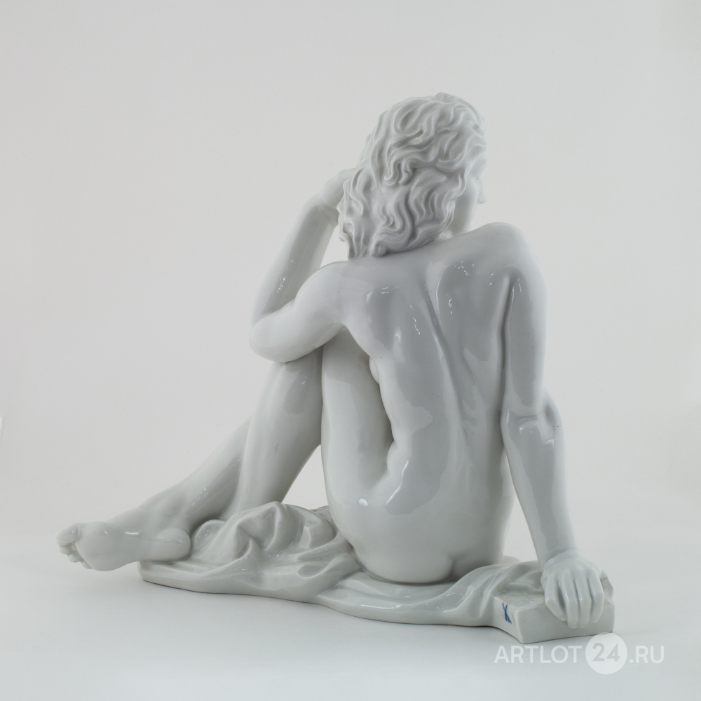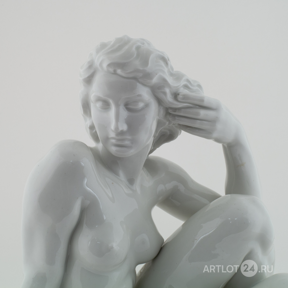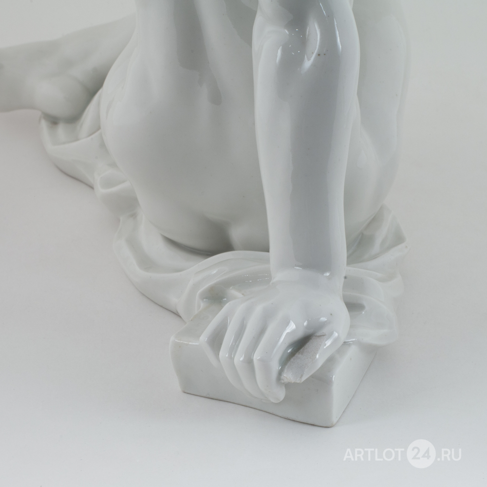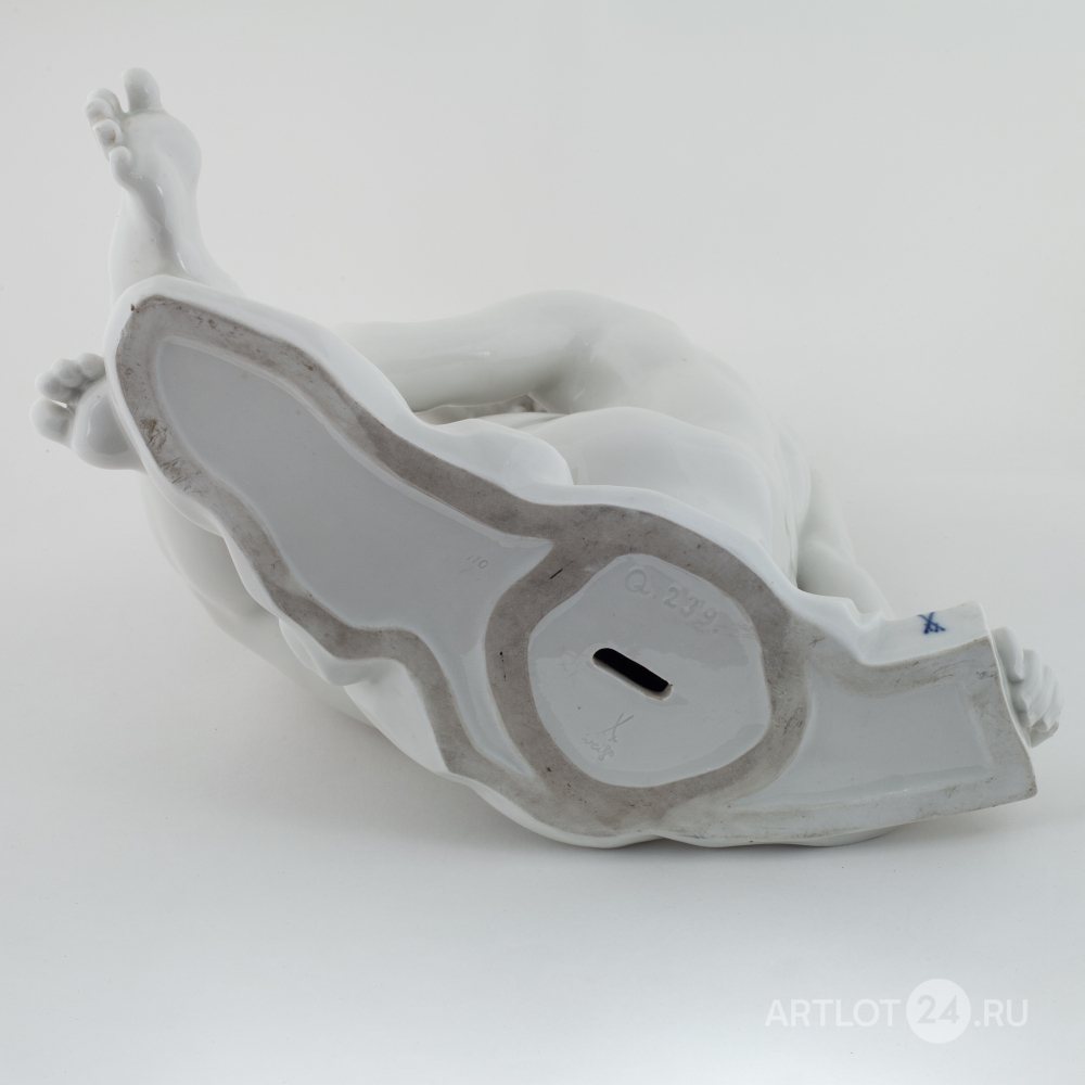 Фарфор, лепка, глазурь, на цоколе клеймо кобальтом в виде скрещенных мечей, а также оттиск «Robert Ullmann. 1940» в тесте, в основании «Q.239», «скрещенные мечи» над «weiss» и «110», автор скульптуры - Роберт Ульман (Robert Ullmann, 1903-1966), Мейсенская фарфоровая мануфактура (Meissen), Германия, 1940-е годы, размер (в/ш/г): 33 х 37 х 20 см