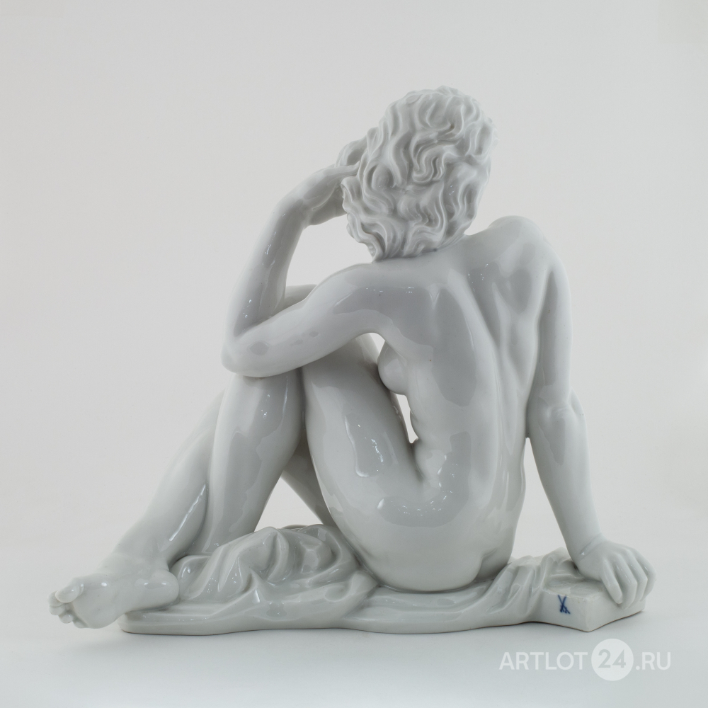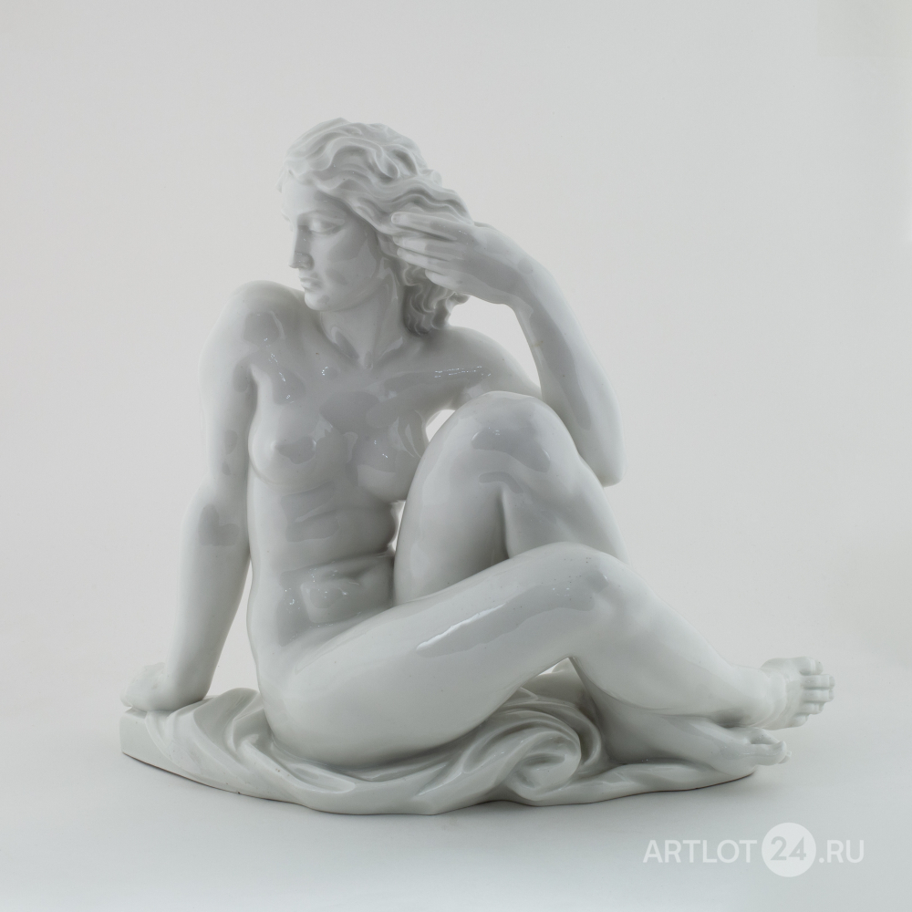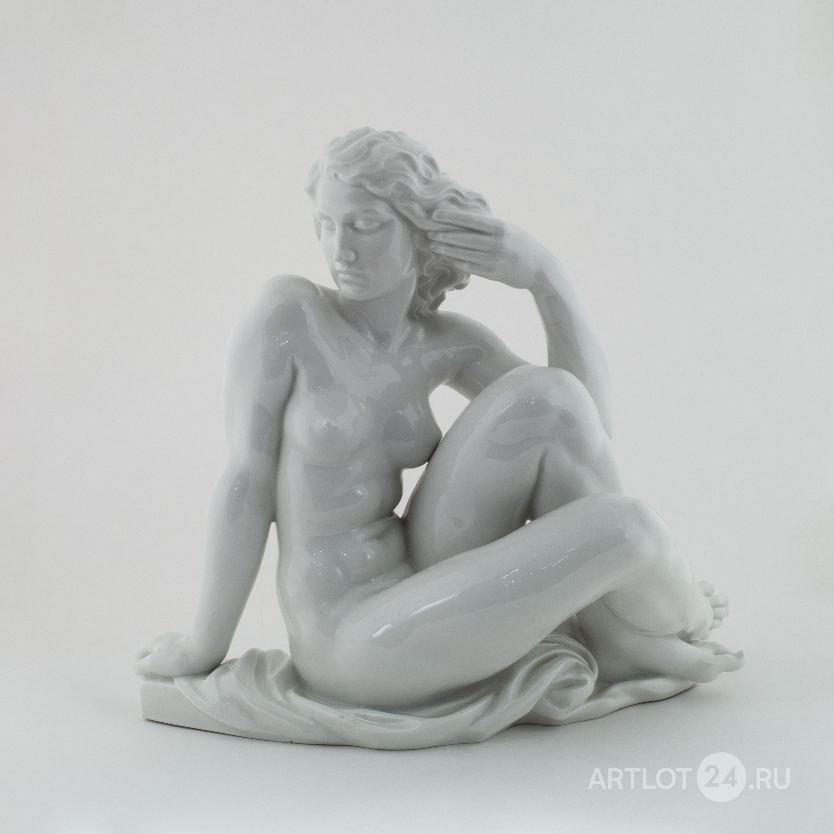 Фарфор, лепка, глазурь, на цоколе клеймо кобальтом в виде скрещенных мечей, а также оттиск «Robert Ullmann. 1940» в тесте, в основании «Q.239», «скрещенные мечи» над «weiss» и «110», автор скульптуры - Роберт Ульман (Robert Ullmann, 1903-1966), Мейсенская фарфоровая мануфактура (Meissen), Германия, 1940-е годы, размер (в/ш/г): 33 х 37 х 20 см