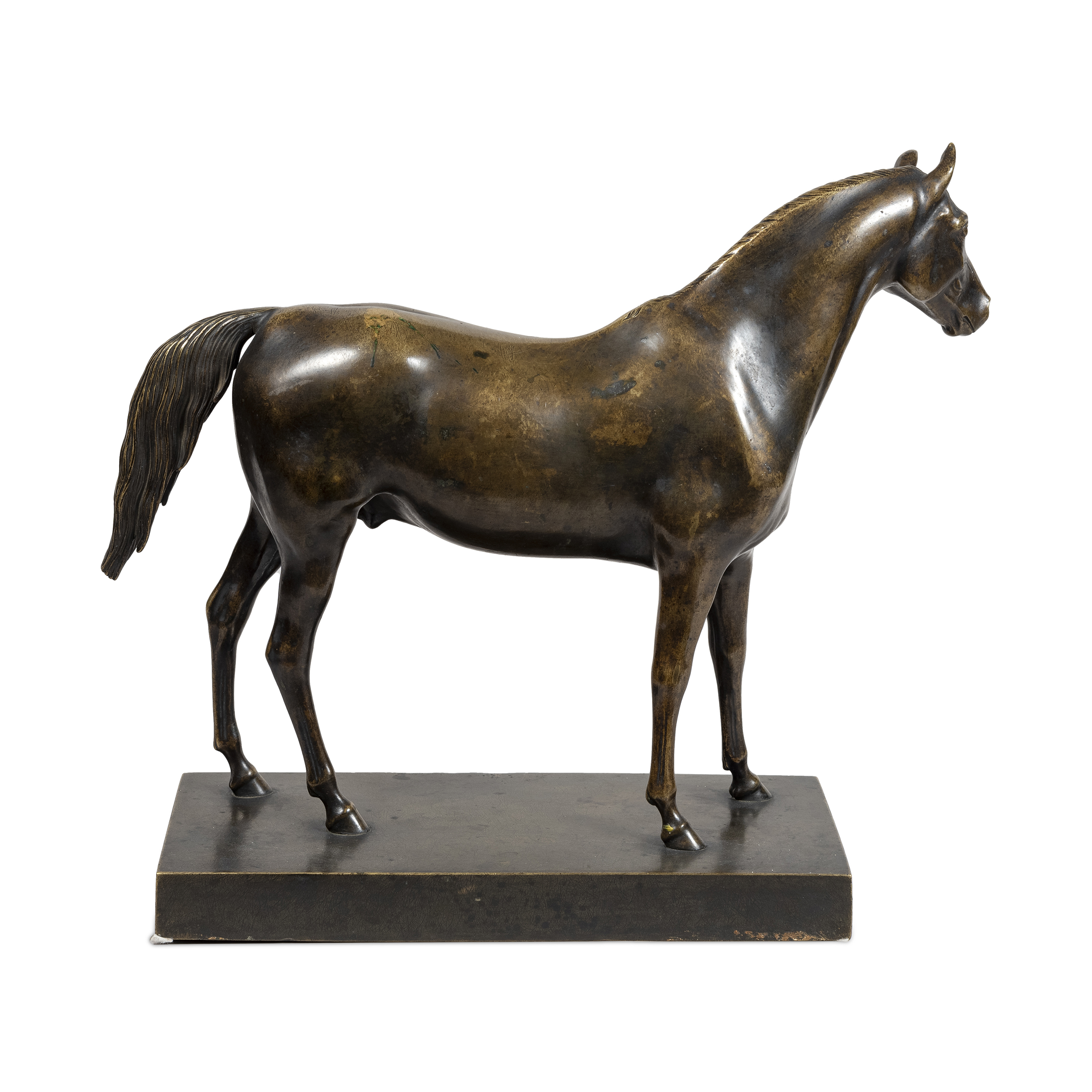 Модель 1837 года скульптора Петра Карловича Клодта фон Юргенсбурга (1805-1867). Бронза, литье, патинирование, монтировка, в литье на торце плинта клеймо «НТЗ» Нижне-Тагильского завода, ведущего литейного предприятия Демидовых, литейщик – Фёдор Филиппович Звездин (1805-?). Размер (в/ш/г): 37 х 48 х 17 см, вес – 7,5 кг.