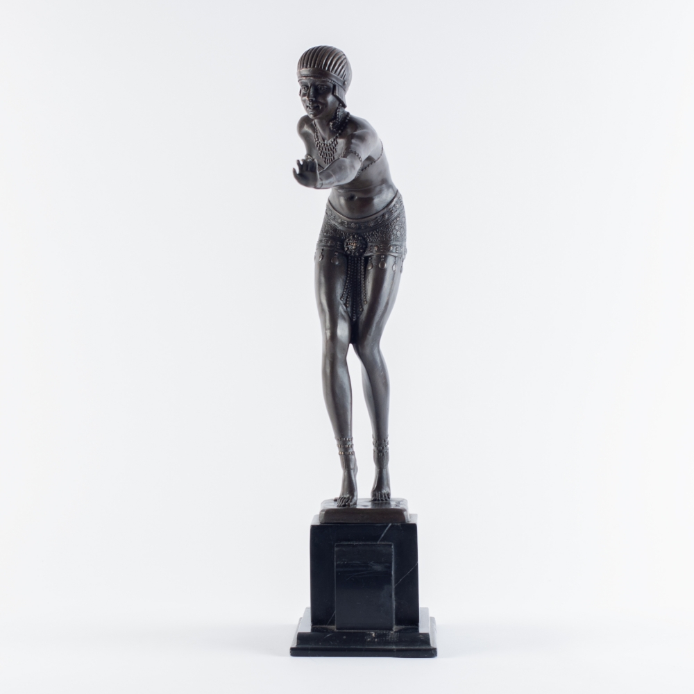 Бронза, литье, патинирование, чёрный мрамор, Европа, ХХ век, высота - 38 см, постамент: 10 х 18 х 11,5 см