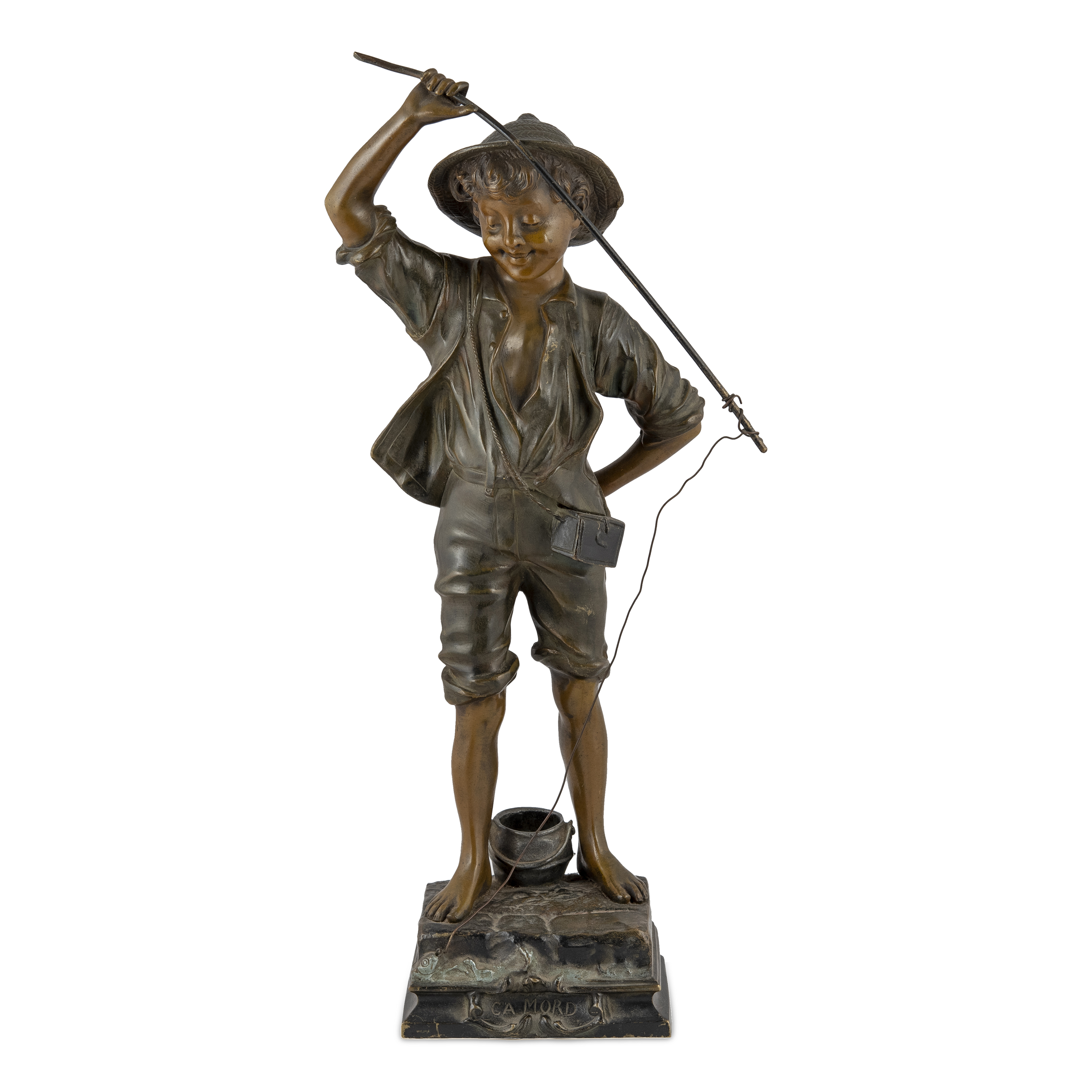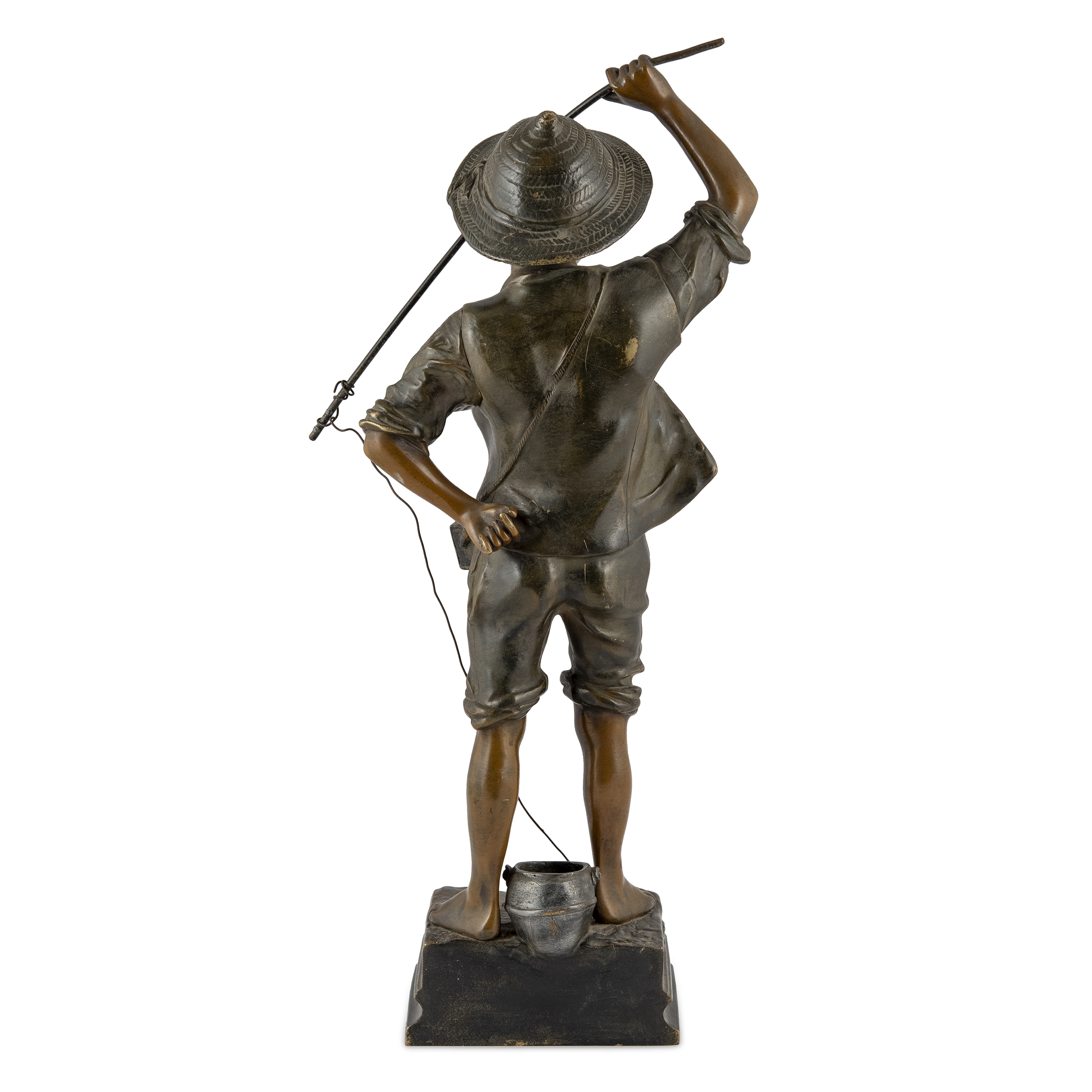 Оригинальное название - «Клюет». По модели французского скульптора Поля Люазо-Руссо (Paul Louis Emile Loiseau-Rousseau, 1861-1927). Бронза, литье, чеканка, шлифовка, полихромное патинирование, монтировка, в основании постамента надпись «Ca MORD», справа в литье факсимиле подписи скульптора «Rousseau», Франция, первая половина ХХ века, высота - 43 см