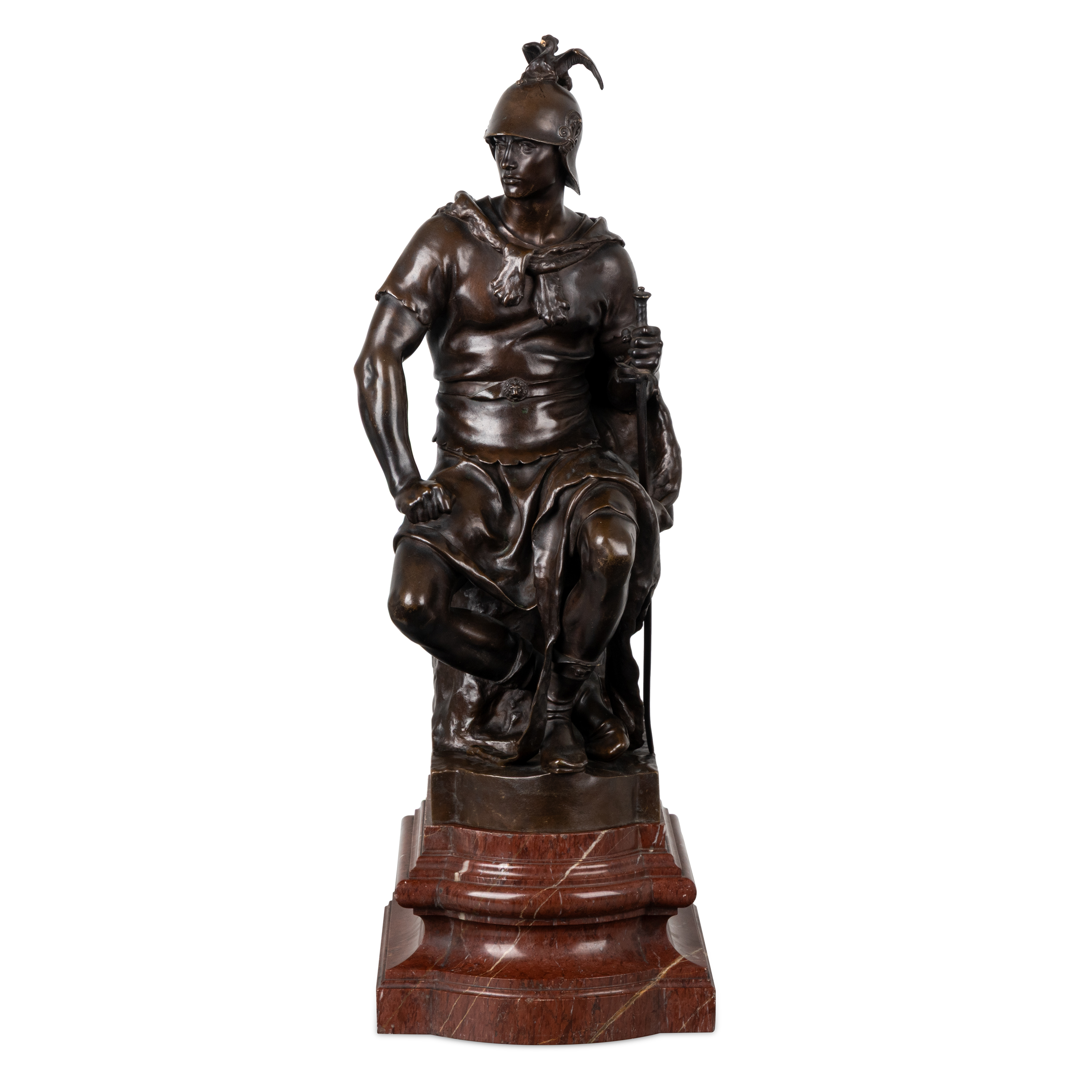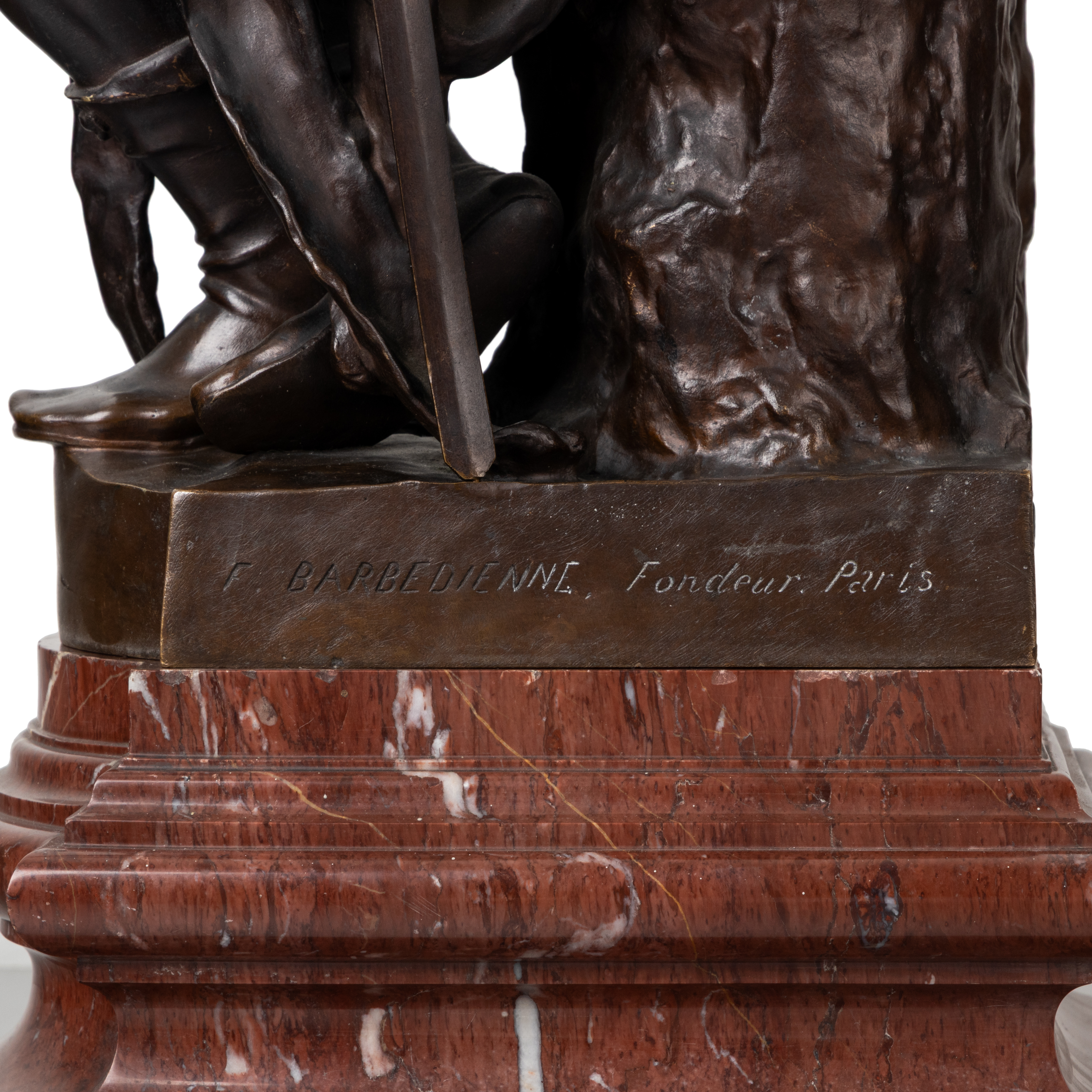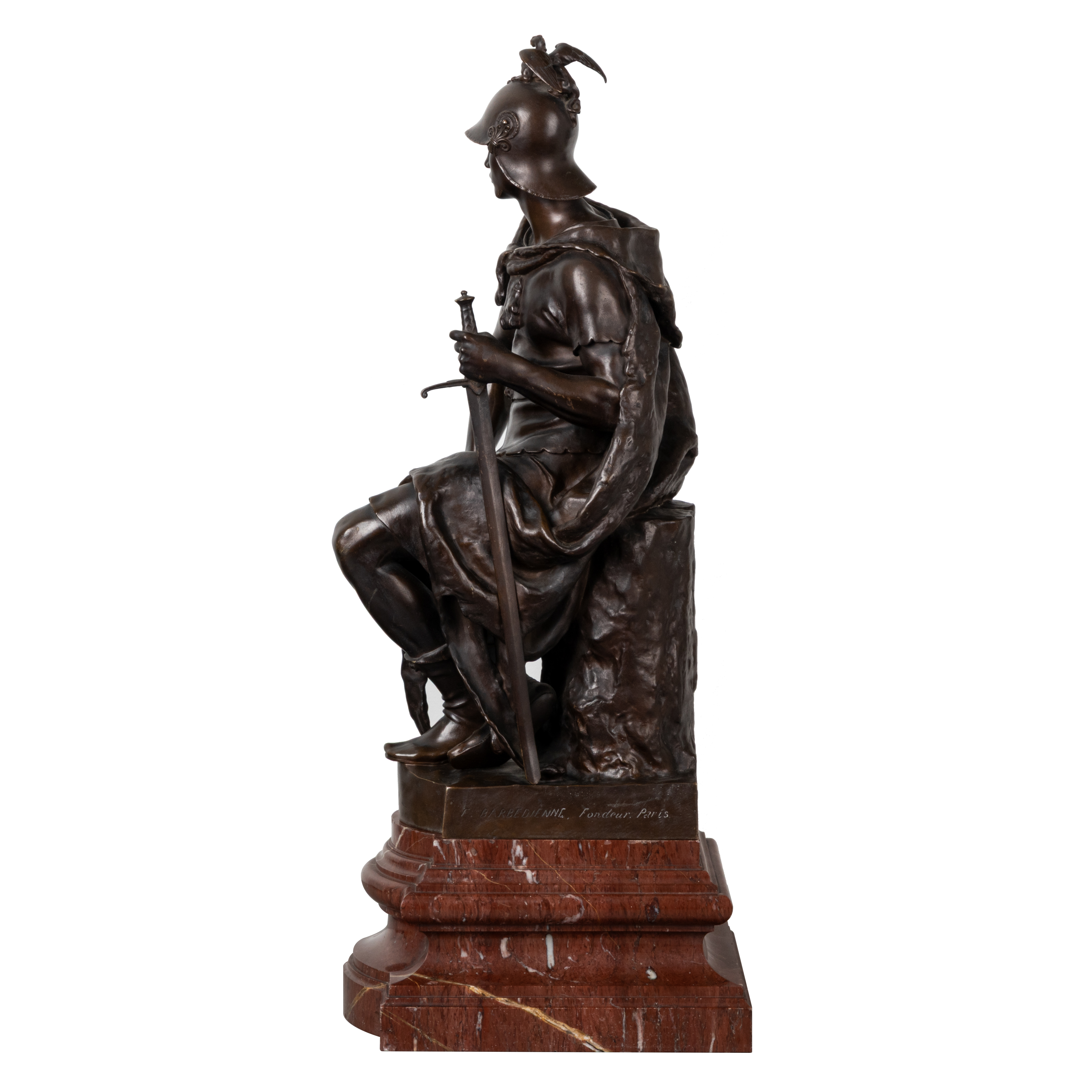 Бронза, мрамор. Высота:66 см По модели французского скульптора Поля Дюбуа, подпись на основании «F.BARBEDIENNE».