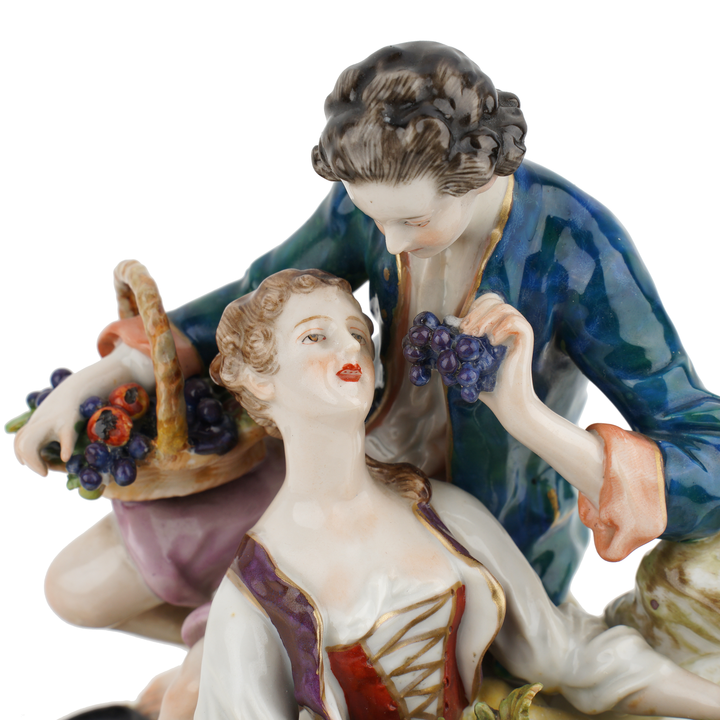 Фарфор, лепка, полихромная надглазурная роспись, золочение, подглазурное клеймо кобальтом в виде зеркальной монограммы «FG» под короной.