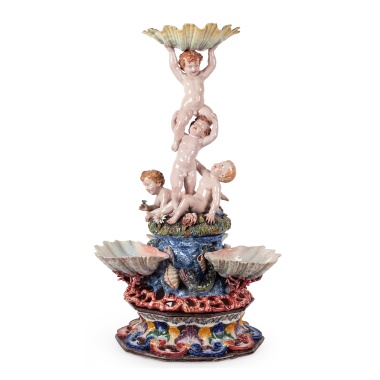 Спичечница (футляр или подставка для коробки со спичками) выполнена по модели з-да Гарднера. Бисквит, белый и зеленый бисквит, рельеф, Россия, Дмитровский завод в Вербилках, 1920-ые годы, размеры: высота: 13 см, глубина: 10 см, длина: 14 см.