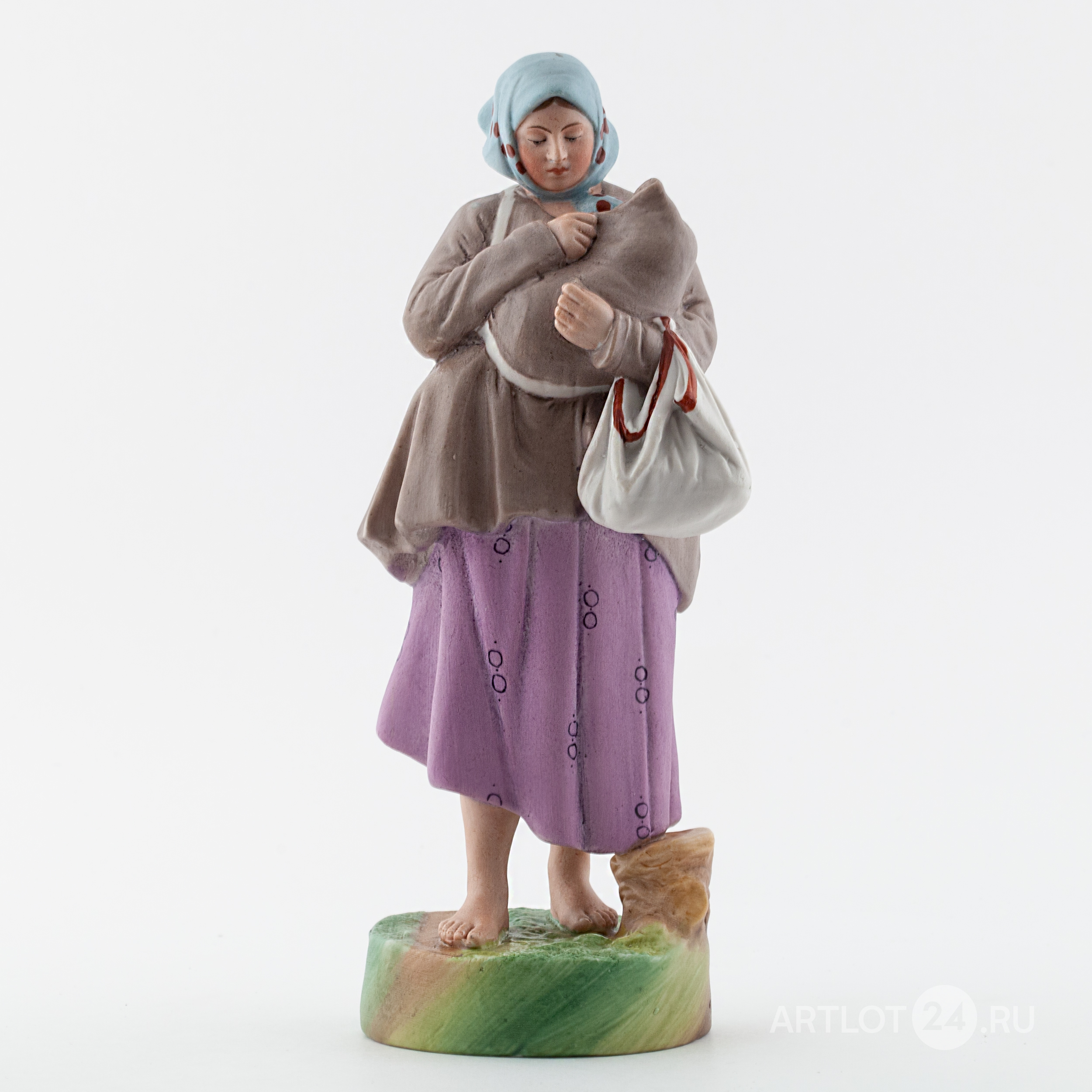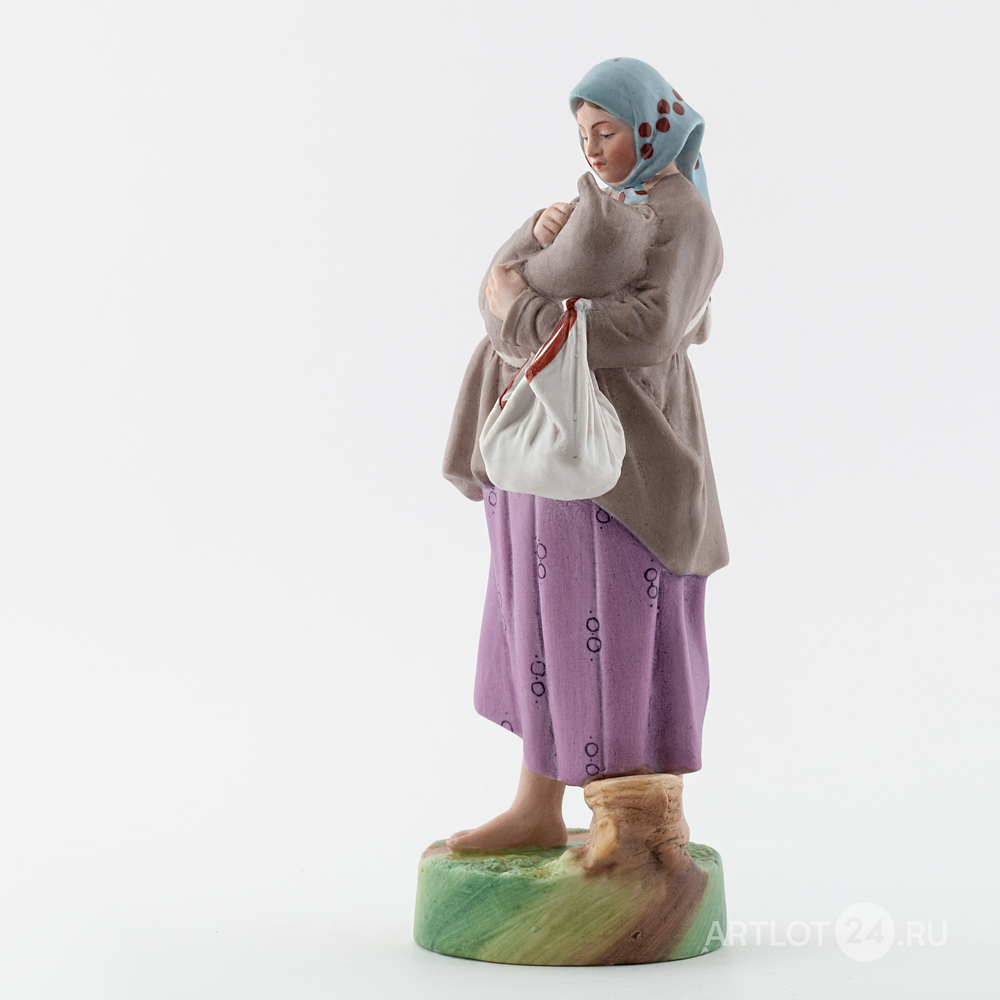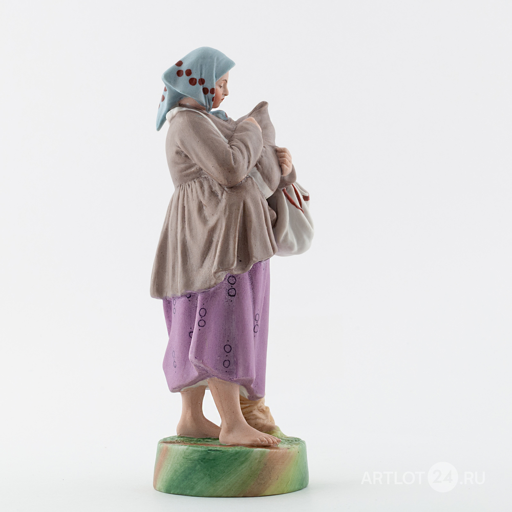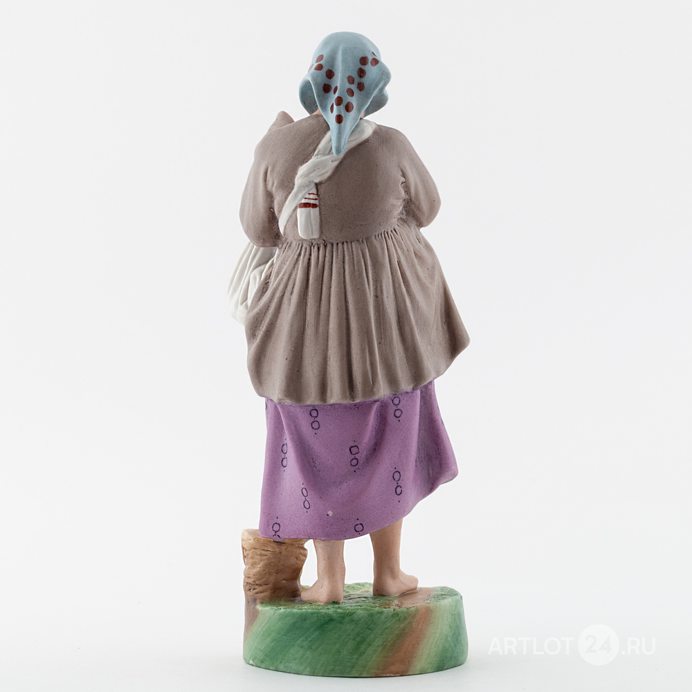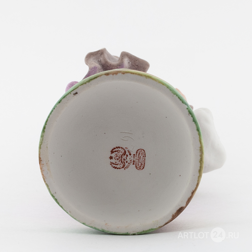 Выполнена по одноименной модели Ф.Я. Гарднера 1860-х годов. Бисквит, полихромная роспись флюсовыми красками, марка красным надглазурным штампом «РОССТЕКЛО-ФАРФОР МОСКВА Дмитровская фабрика в Вербилках» и цифры «1673» по бисквиту, Дмитровский фарфоровый завод, 1926-1930 годы, высота – 23,8 см