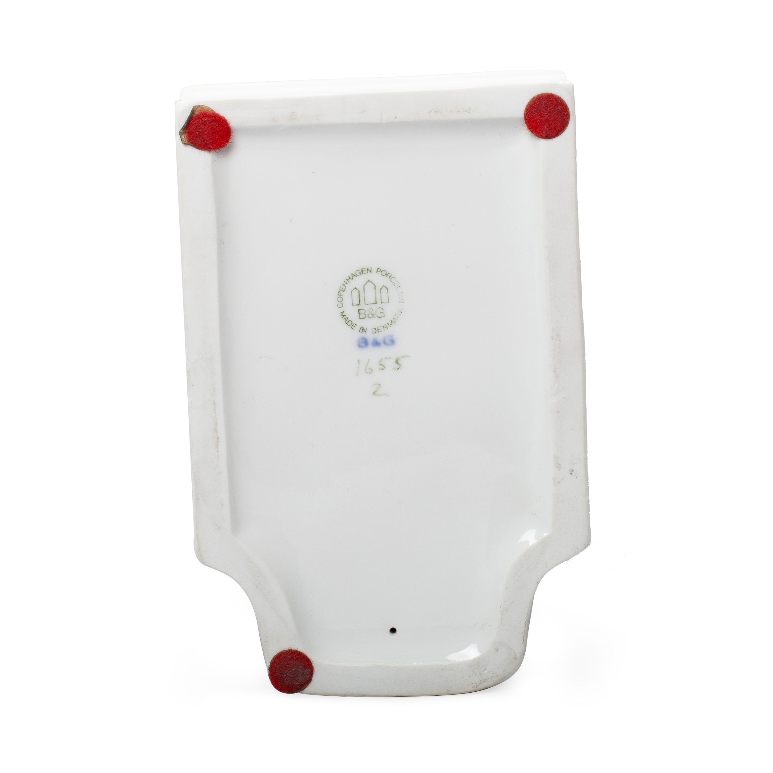 Фарфор, подглазурная роспись, марка: печатная зеленая «B&G Kjobenhavn DENMARK под тремя башнями» и кобальтом «B&G», номер - «1655», литеры. Дания, Копенгаген, фабрика «Бинг и Грёндаль» (Bing & Grondahl), 1970 - 1983 годы, высота - 13,5 см