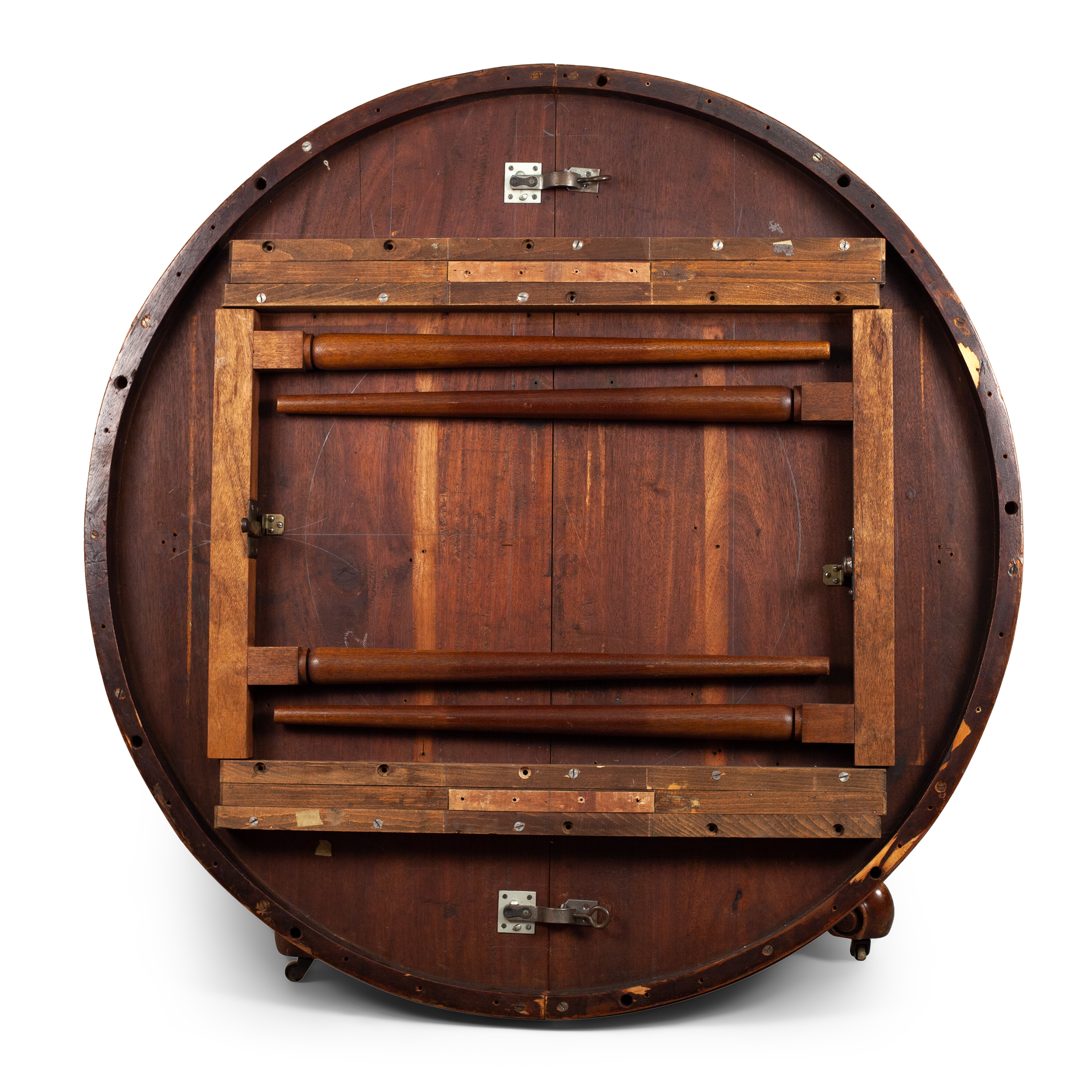 На колесиках. Красное дерево, фанерование, резьба, точение, полирование, Европа, конец XIX века, диаметр – 115 см, высота – 75 см