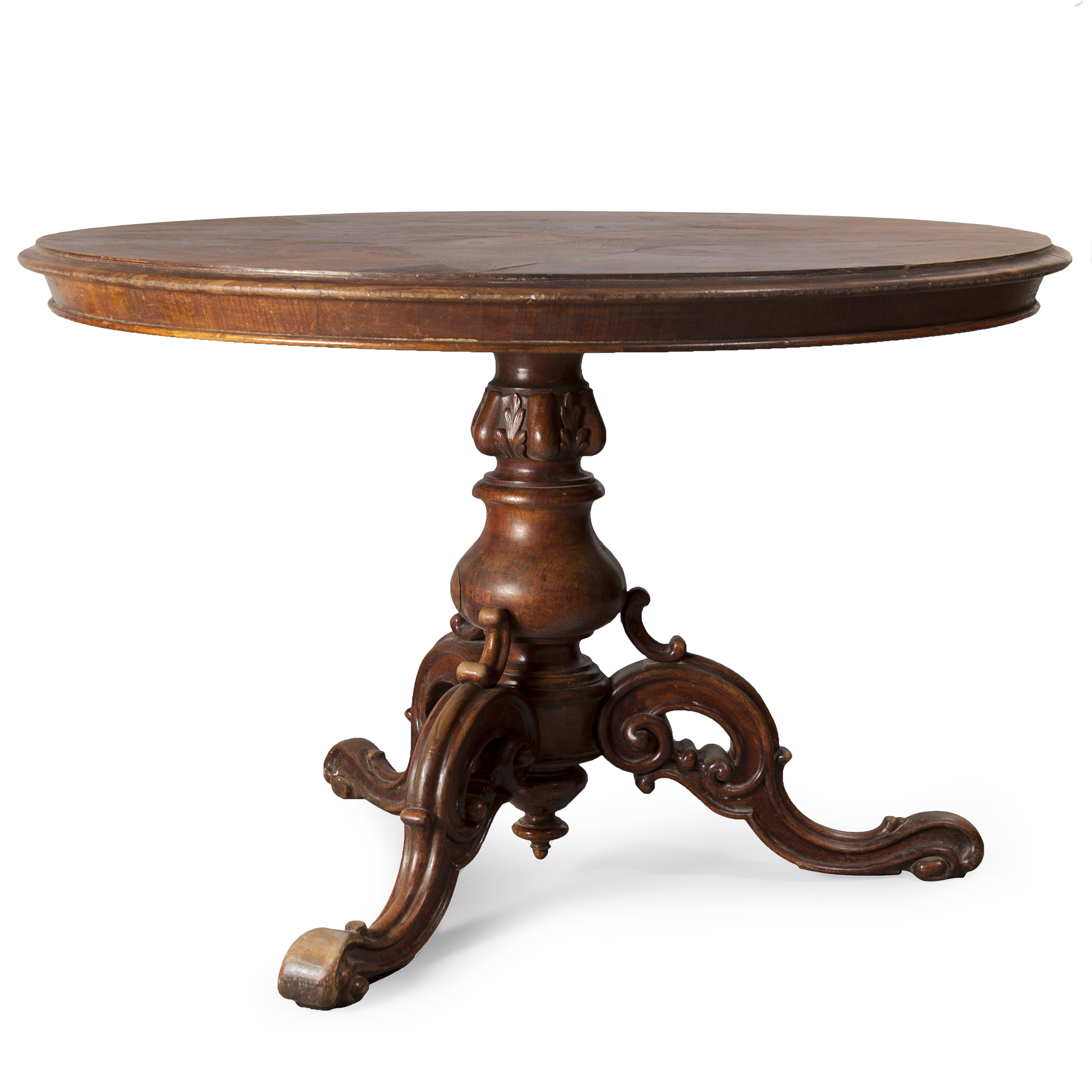 Стол для гостиной. Дуб, резьба, полировка, точение, Европа, начало ХХ века, высота - 75 см, диаметр - 115 см