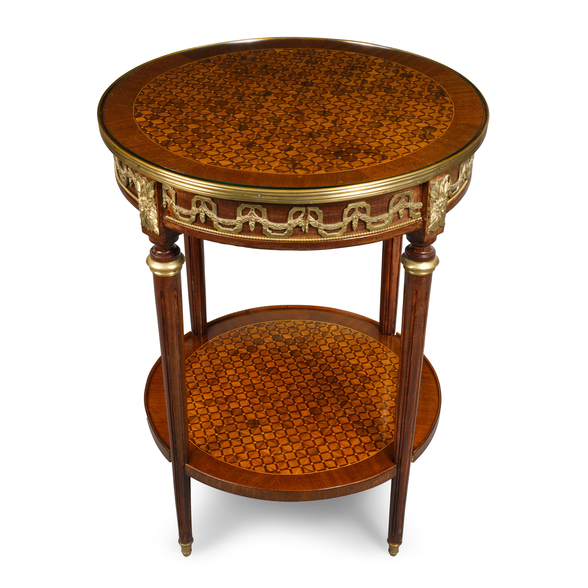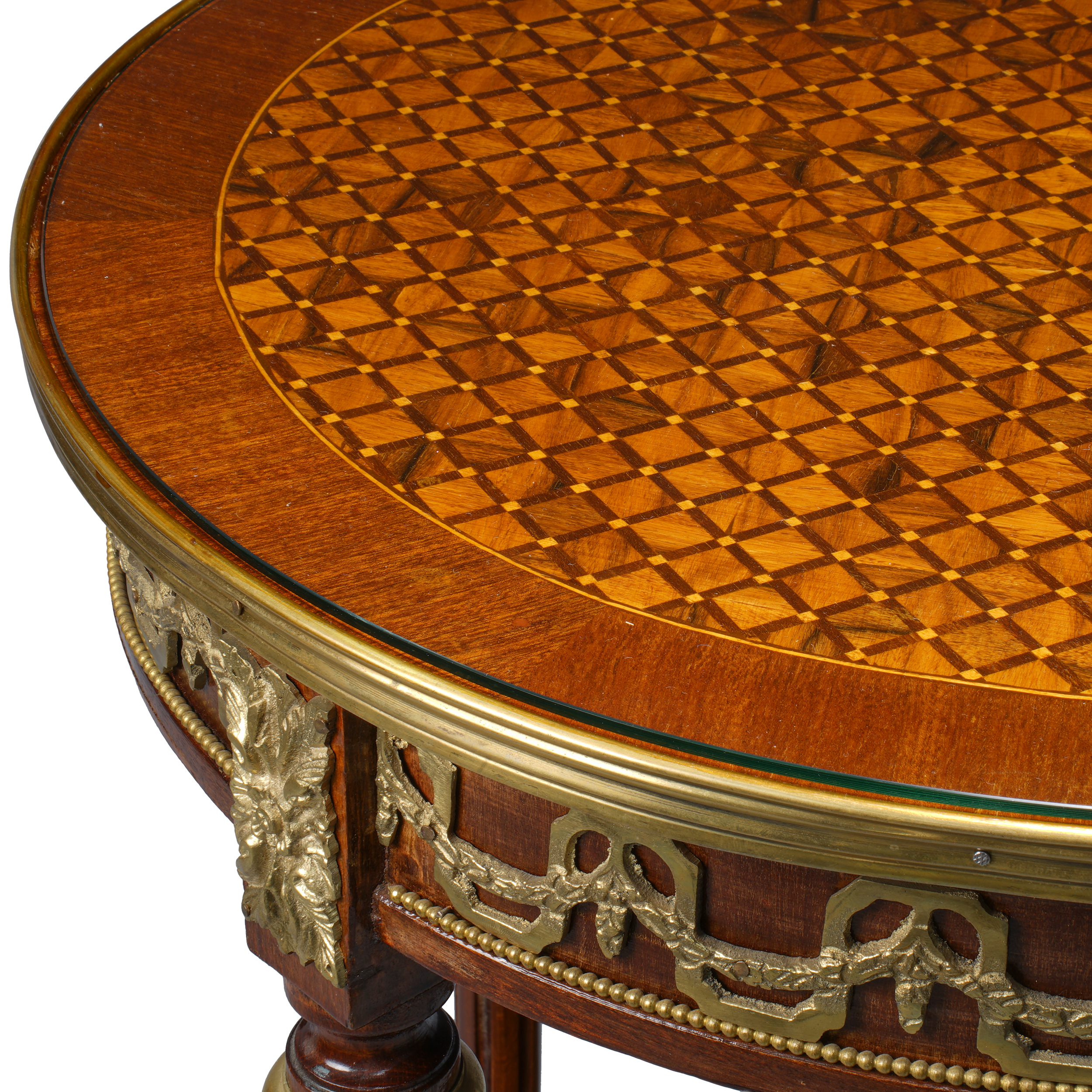 Орех, паркетри с использованием фруктовых пород дерева, бронза, латунь.