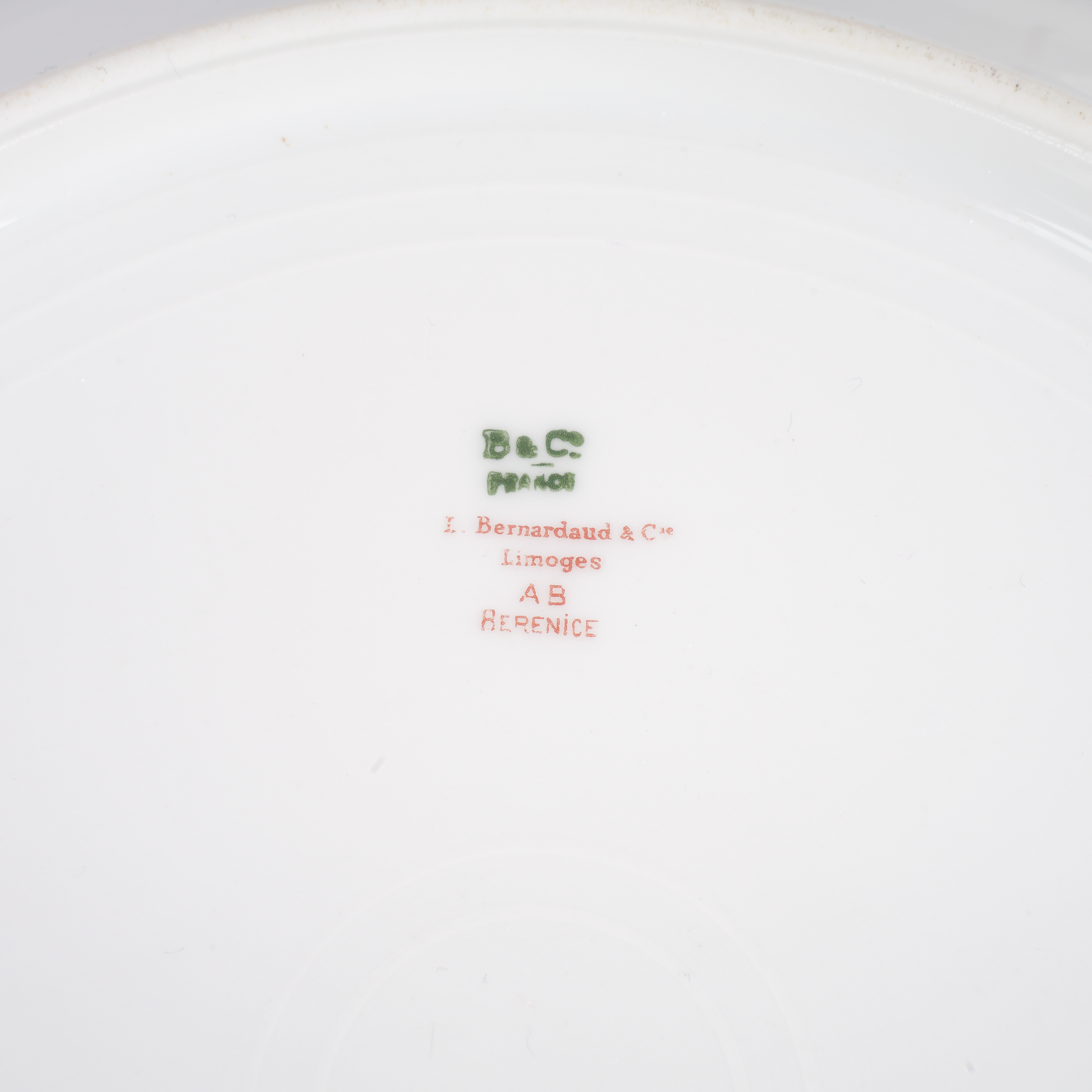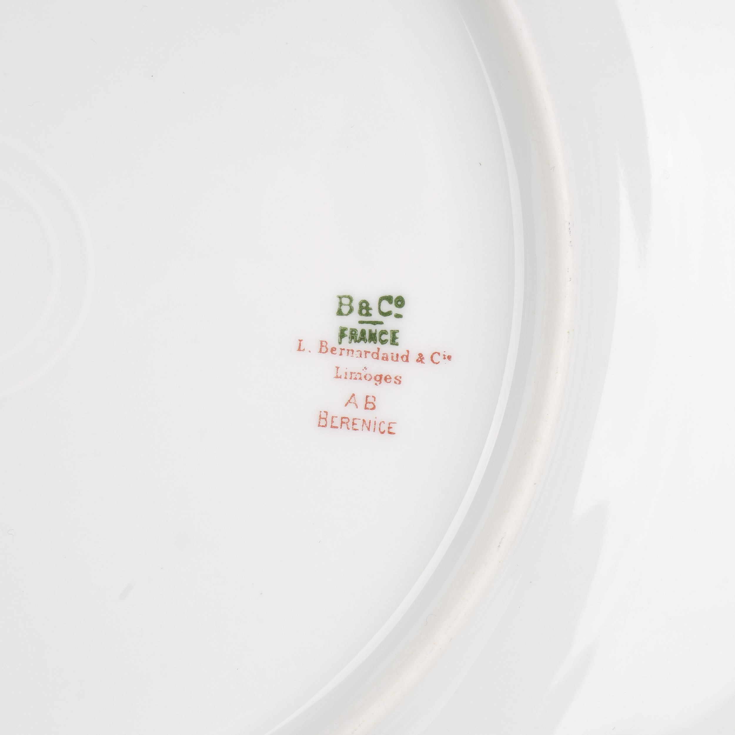 Лимож, Франция, начало ХХ века (1900-1914), подглазурная марка зеленым (B&C FRANCE L.Bernardaud & C, Limoges, AB Berenice)