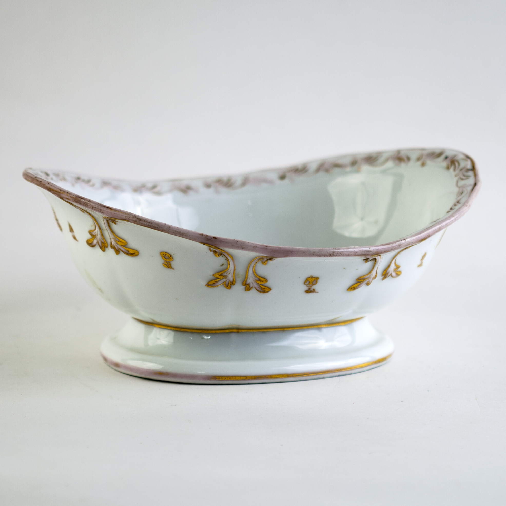 Фарфор, рельеф, золочение, клеймо кобальтом завода А. Попова, 1840-1850-е годы, размер (в/д/ш): 9,5 х 24 х 19 см.