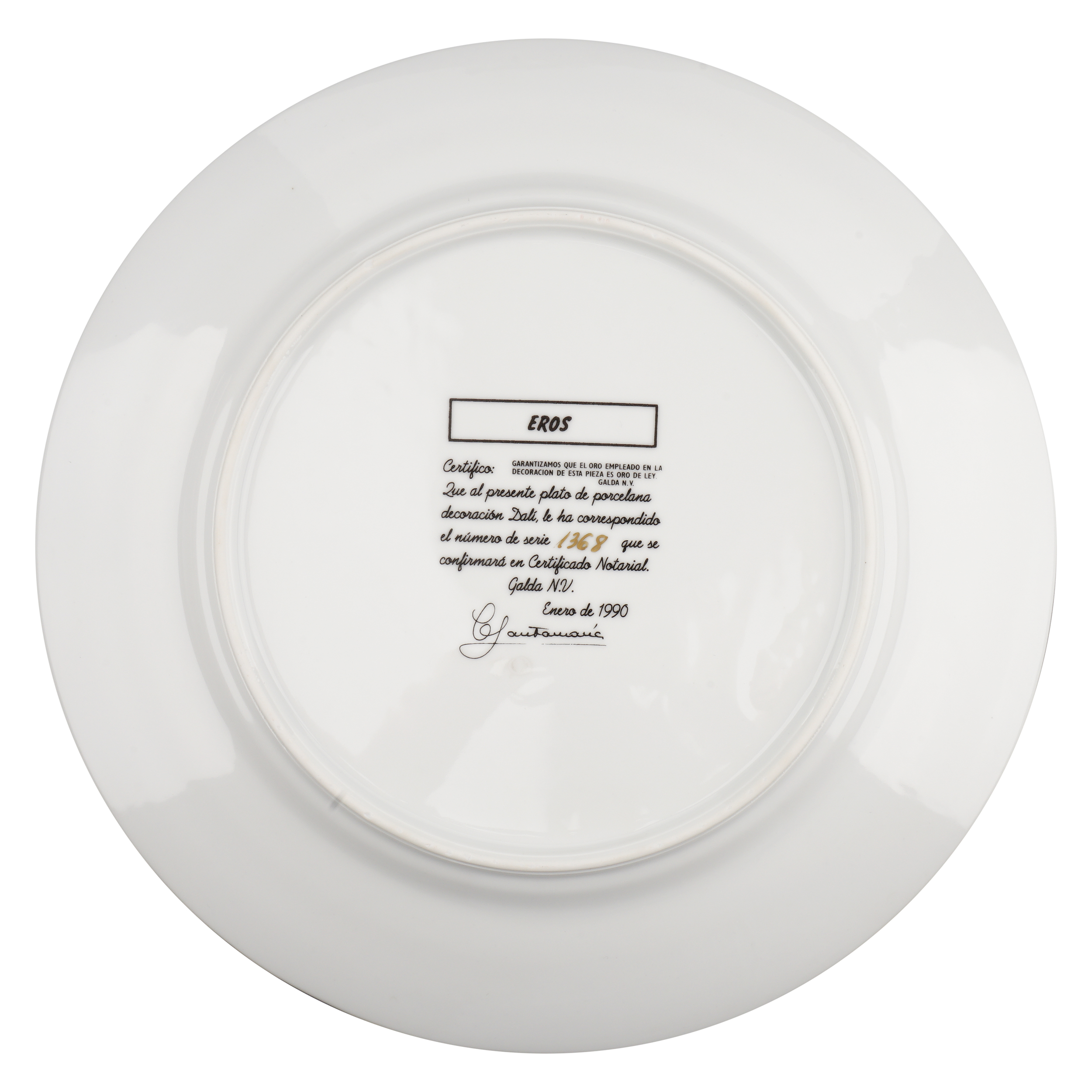 Фарфор, сериграфия, золочение, №1368 золотом на оборотной стороне, фирма «Dalí Porcelanas Galda N.V.», диаметр – 25 см. В родном картонном футляре с сертификатом подлинности.