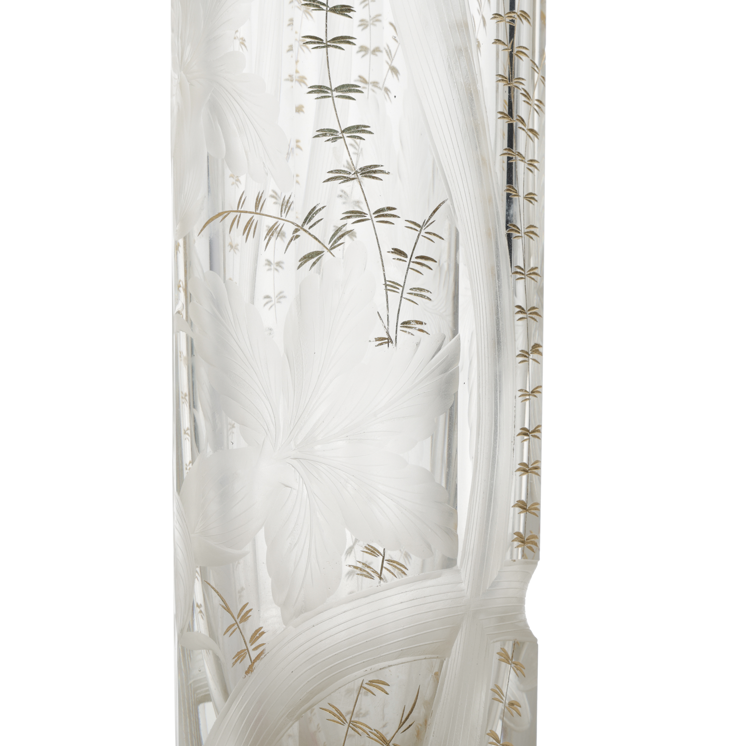 Стекло прозрачное бесцветное, гранение, шлифовка, рельефный рисунок, золочение, Россия (?), начало XX века, высота - 27 см