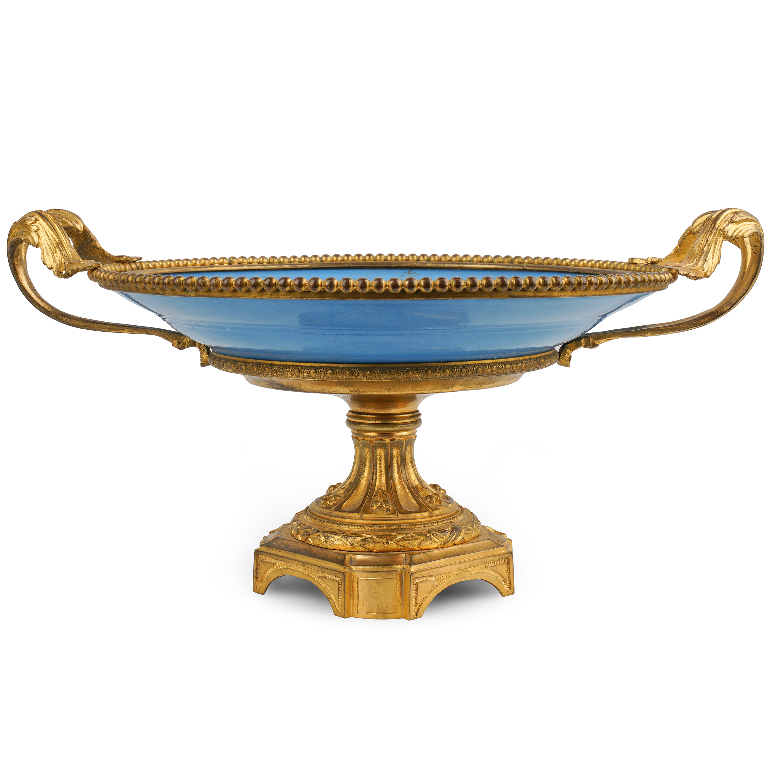 Фарфор, надглазурная роспись, бронза, литье, золочение, монтировка. Марка скрыта под бронзовой ножкой.