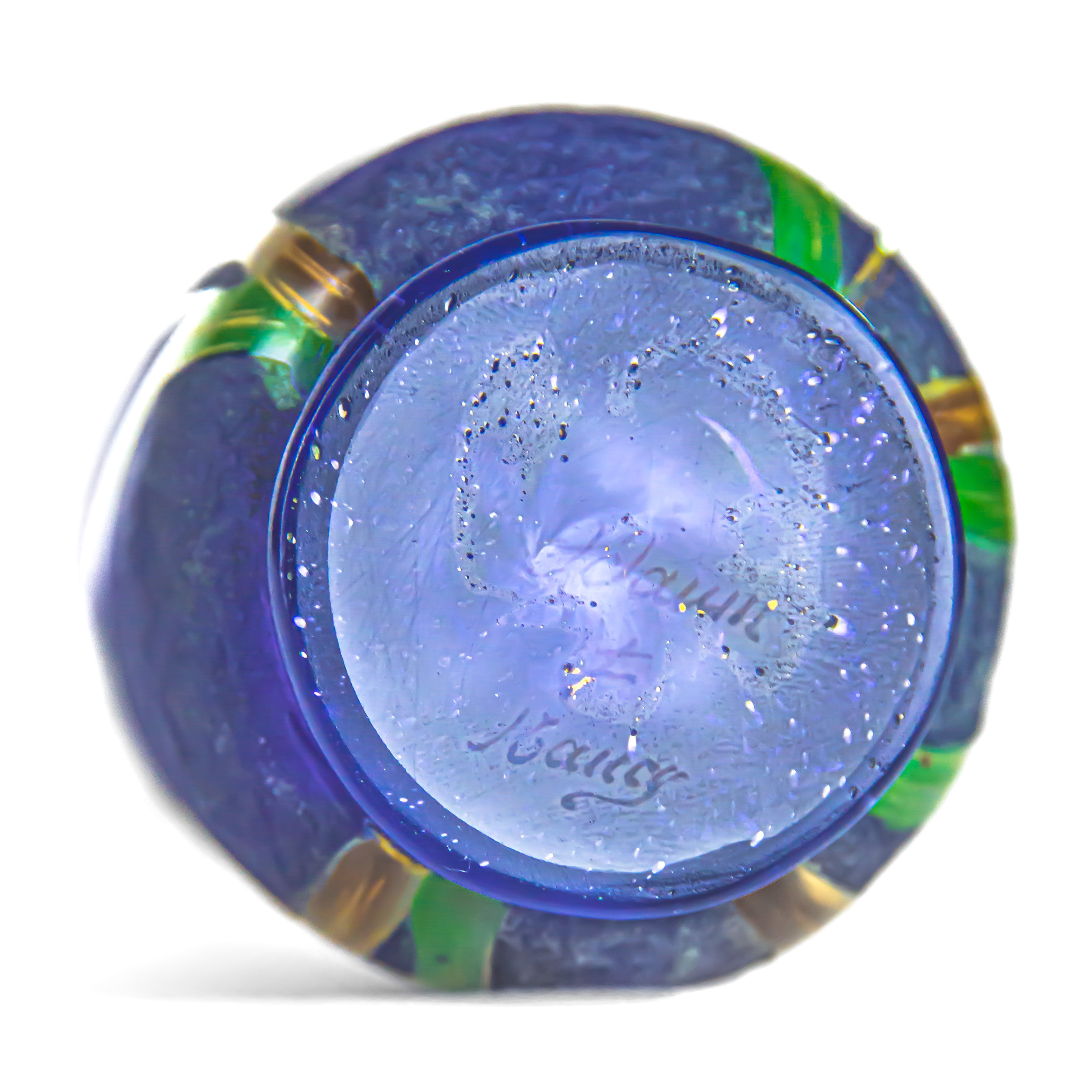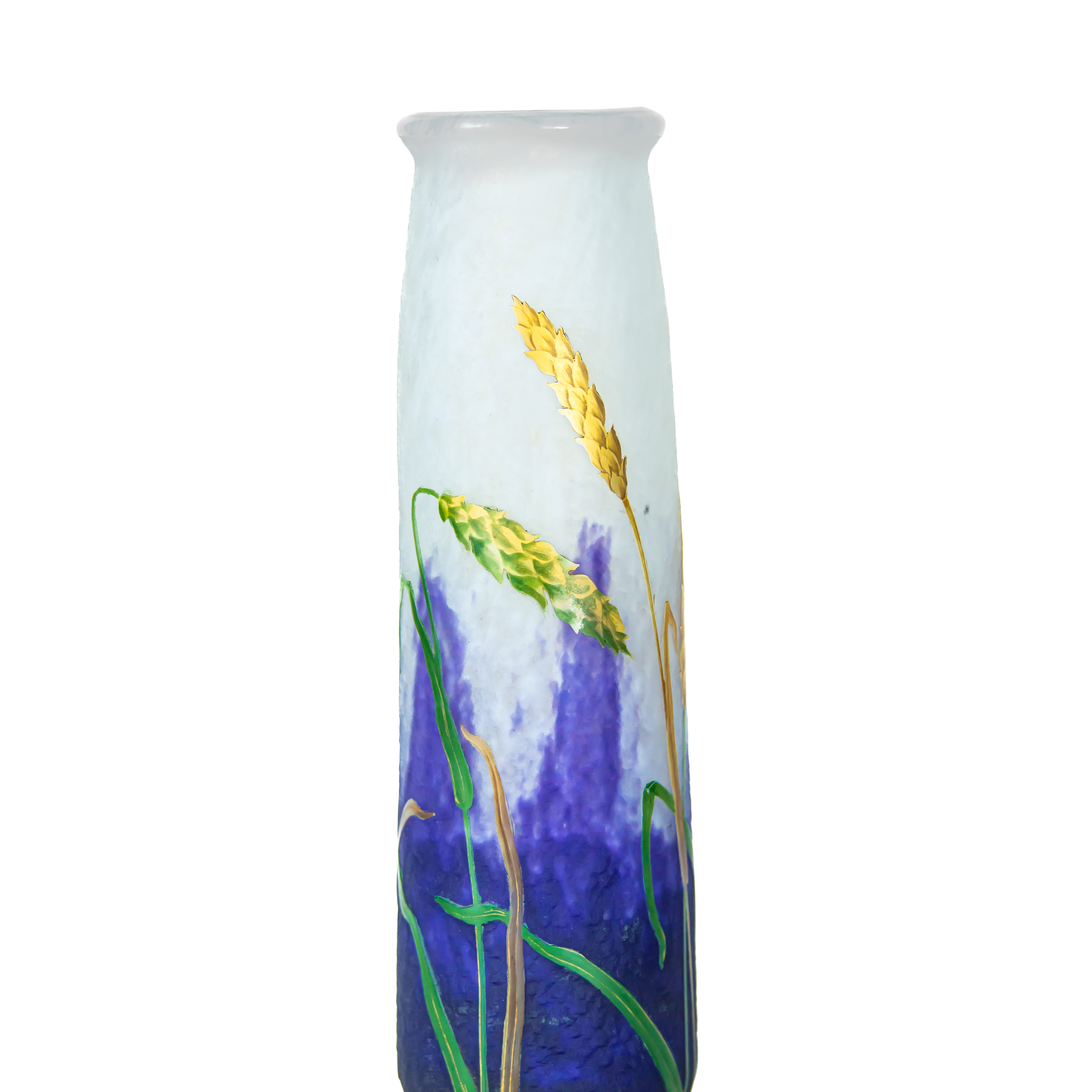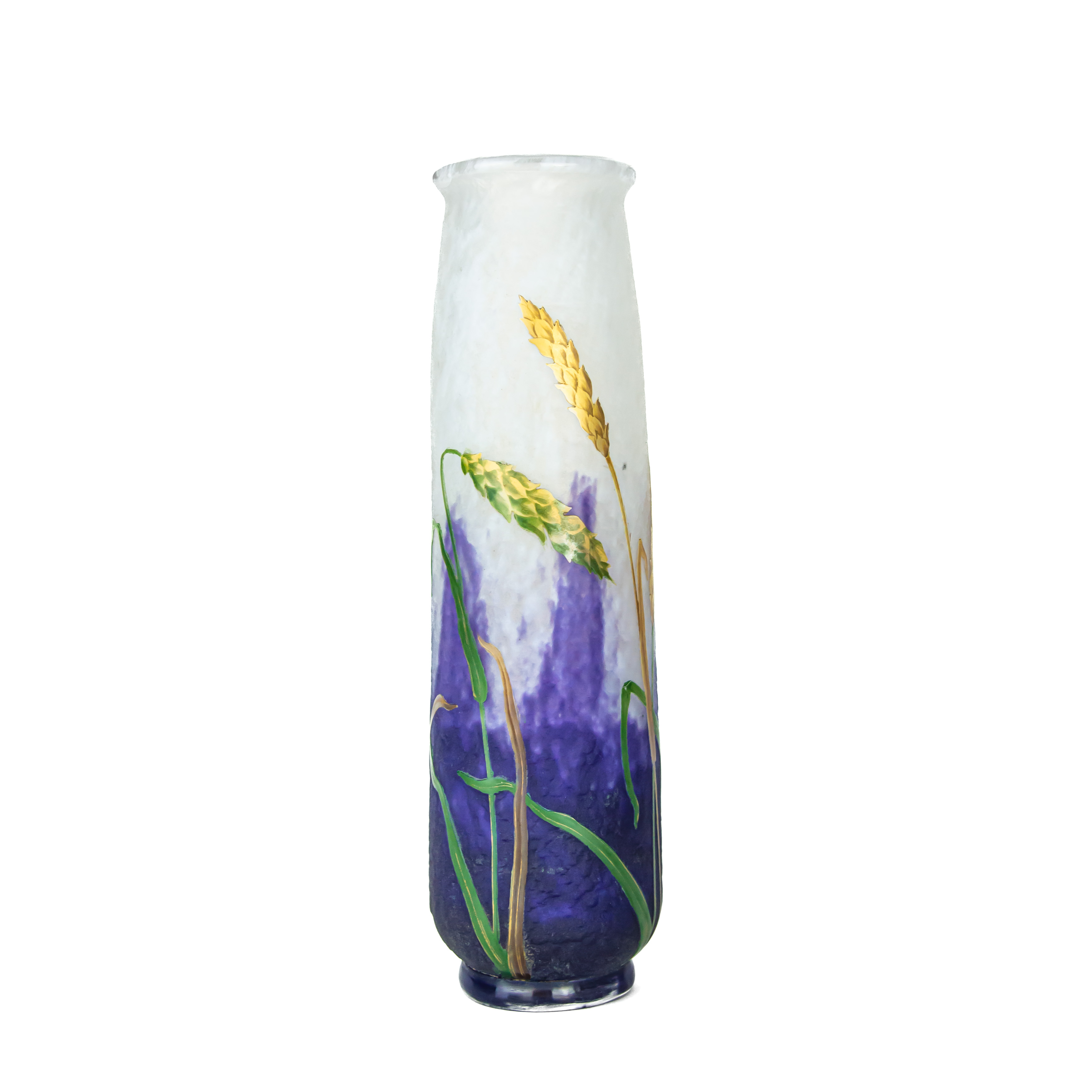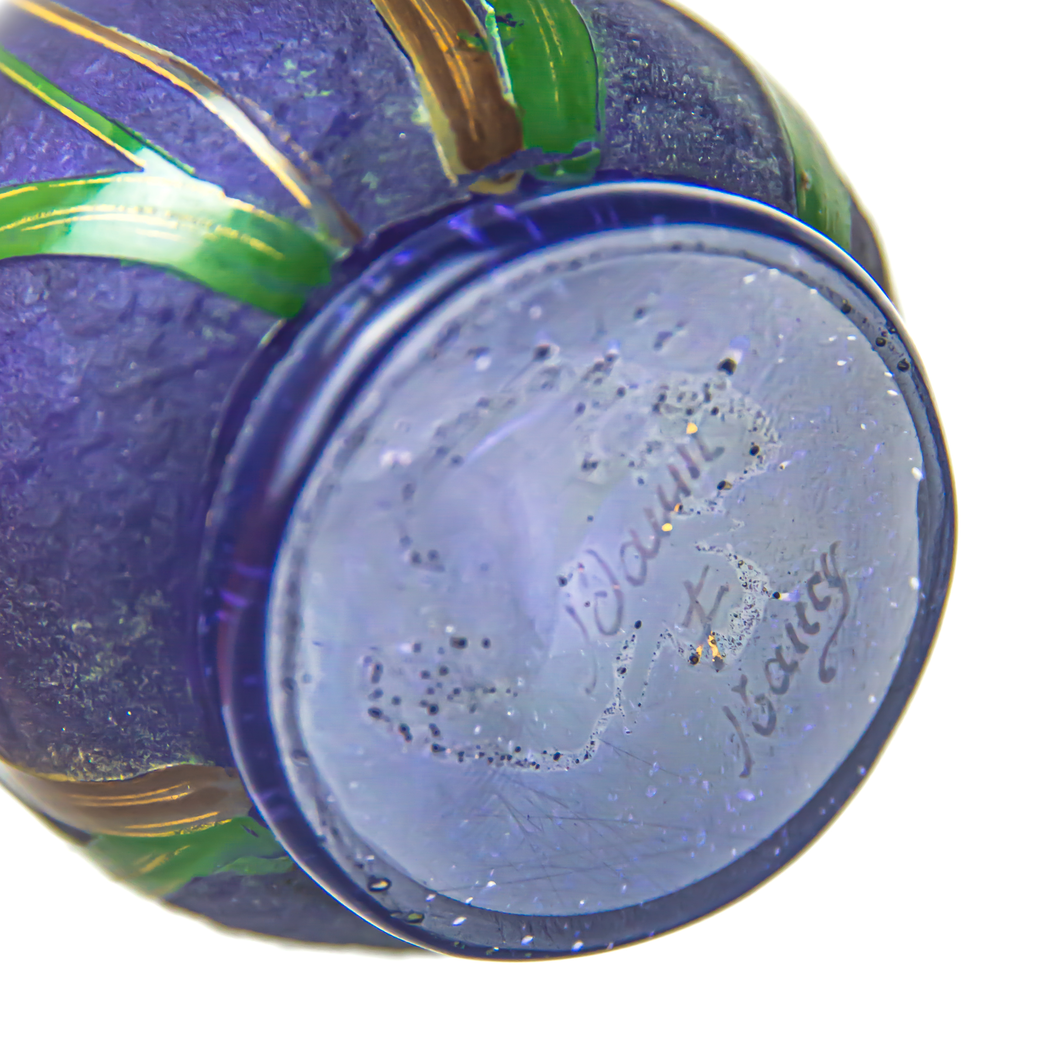 Многослойное стекло, травление, матирование, роспись полихромными эмалями, в основании сигнатура травлением с последующим золочением «daum # Nancy» с лотарингским крестом, Лотарингия, школа Нанси; высота – 20,2 см.