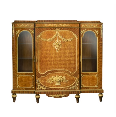 Красное дерево, полировка, хвойные породы (основа), металл, вальцовка, монтировка, зеленый бархат, стекло, Россия, конец ХIХ - начало ХХ века, размеры (в/ш/г): 76 х 47 х 32 см.