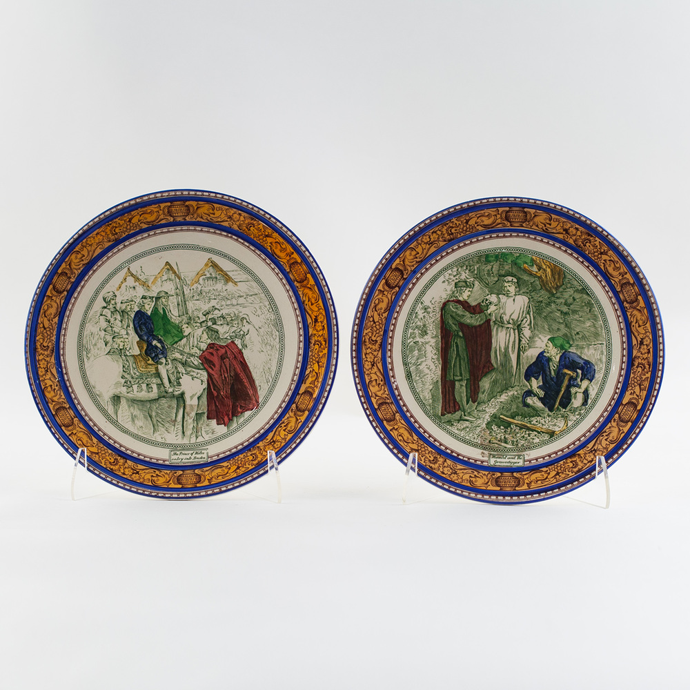 Фаянс, деколь, раскраска, глазуровка, подглазурное клеймо коричневого цвета "Adams, England", завод Адамс, Великобритания, первая половина XX века, диаметр – по 24 см.