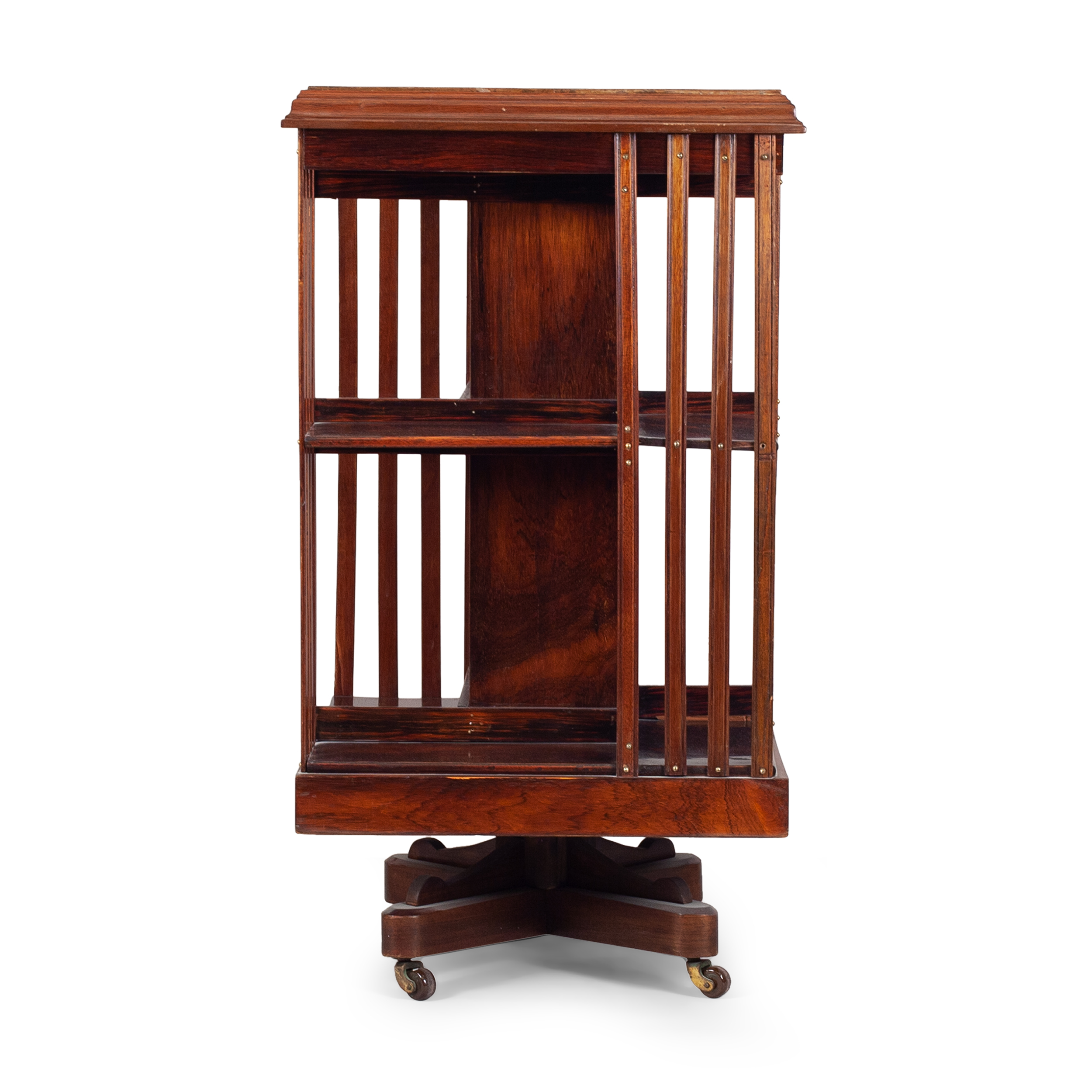 Вашему вниманию мы представляем английскую этажерку для книг из красного дерева на колёсиках. Вращающаяся книжная этажерка в эдвардианском стиле будет прекрасно смотреться как в кабинете, так и в любых других комнатах в доме. Стеллаж для книг поворачивается на 360 градусов относительно опоры, в обе стороны, обеспечивая удобный доступ ко всем четырем сторонам. Этажерка не загромождает пространство и позволяет быстро найти нужную вам книгу. Открытые двухъярусные полки с реечными боковыми панелями — удобная система хранения.