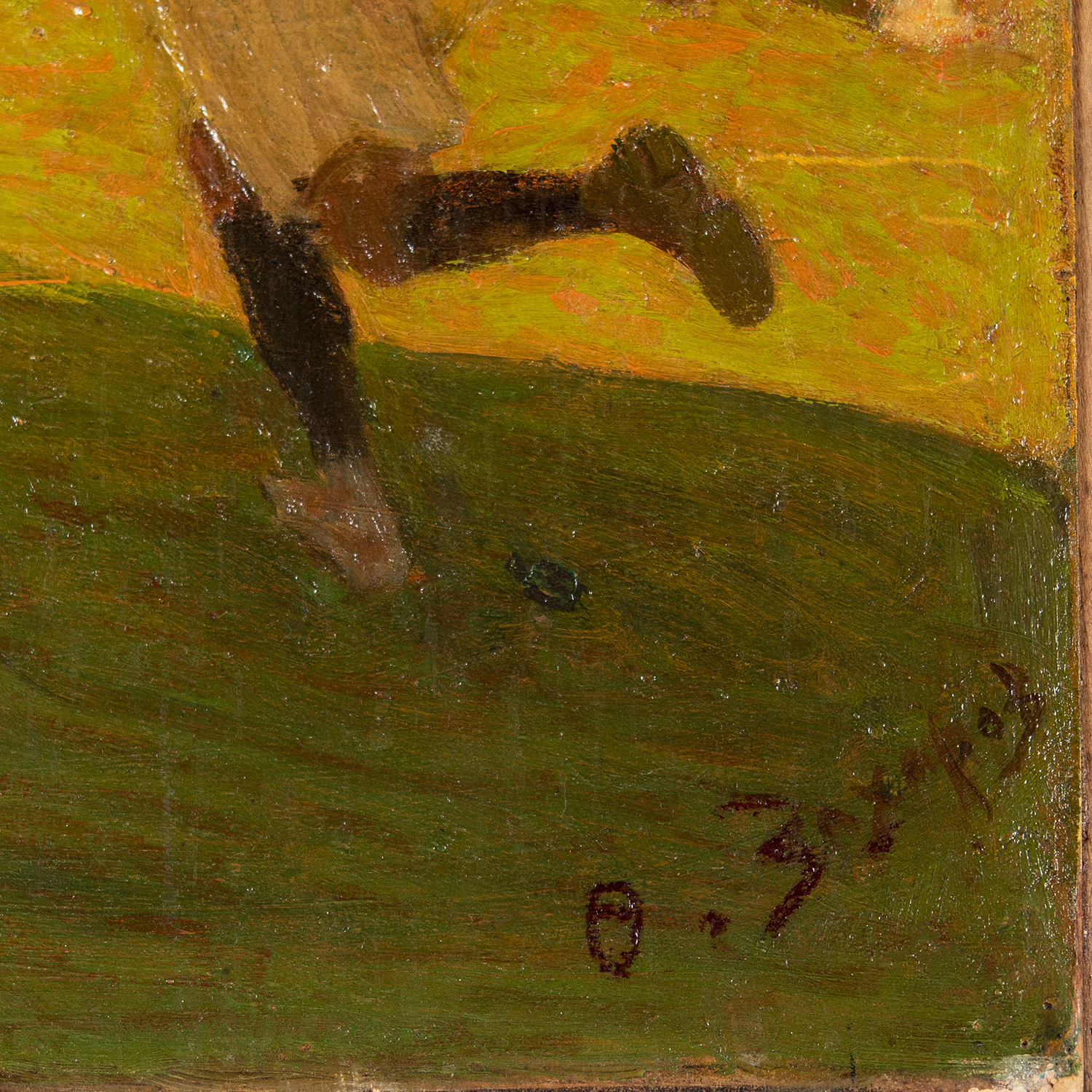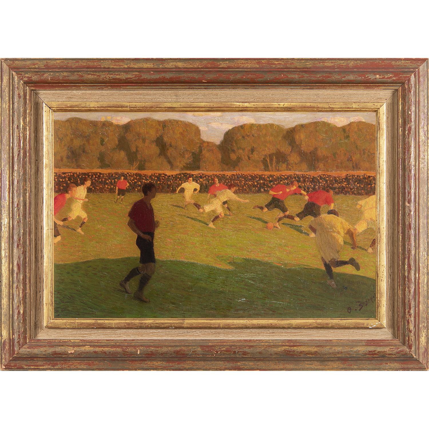 Картон, фанера, масло, справа внизу: «О. З., позже дописано автором «Захаров», на обороте надпись наклейки «Football Feodor Zakharov» и дата «1912», автор: Ф.И Захаров (1882-1968), Россия, 1910-1912 гг. Размеры: 46х71,5 см, в раме 68 х 95см.