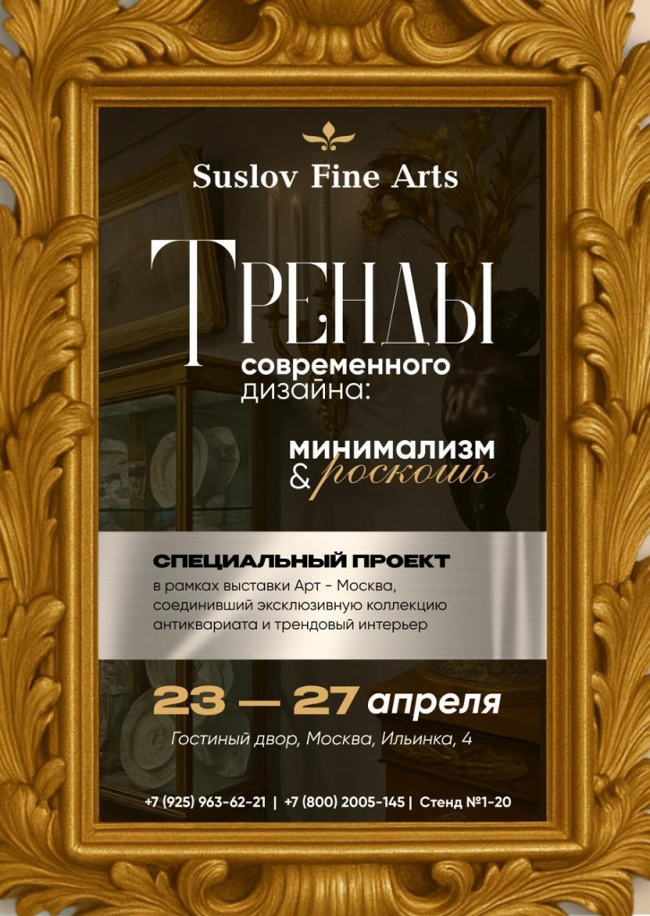 В современном дизайне существует тенденция к поиску идеального баланса между старым и новым, традициями и инновациями, эксклюзивностью и массовостью. Это не просто тренд, а целая философия, которая позволяет создать уникальные и стильные пространства, гармонично сочетая элементы прошлого и настоящего. В композиции стенда Suslov Fine Arts будет представлено видение этой гармонии, которая в контексте многослойности эпох и стилей объединит в себе антиквариат и современное искусство.