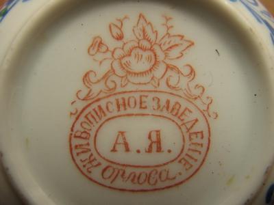 В конце XIX века там работало около двадцати пяти человек. В 1901 году предприятие перешло к сыну А Орлова - Ивану. Живописное заведение Орлова считалось одним из лучших в московской губернии и просуществовало довольно долго, до 1917 года. Формы, или так называемое белье закупались на других соседних фабриках, рисунки мастера копировали с произведений ИФЗ, фабрики Попова или стилизовали орнамент исходя из поставленной художественной задачи. В росписи использовали цветное крытье темно-вишневого и голубого тонов. Краски отличались яркостью и контрастным сочетанием холодных и теплых тонов. Букеты и гирлянды стали основным мотивом росписи. Золотом прорисовывали элементы декора и покрывали ручки чашек, сахарниц и чашек.