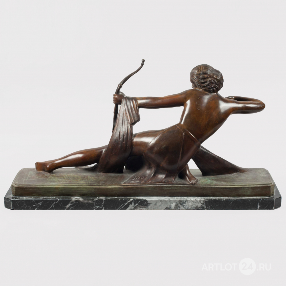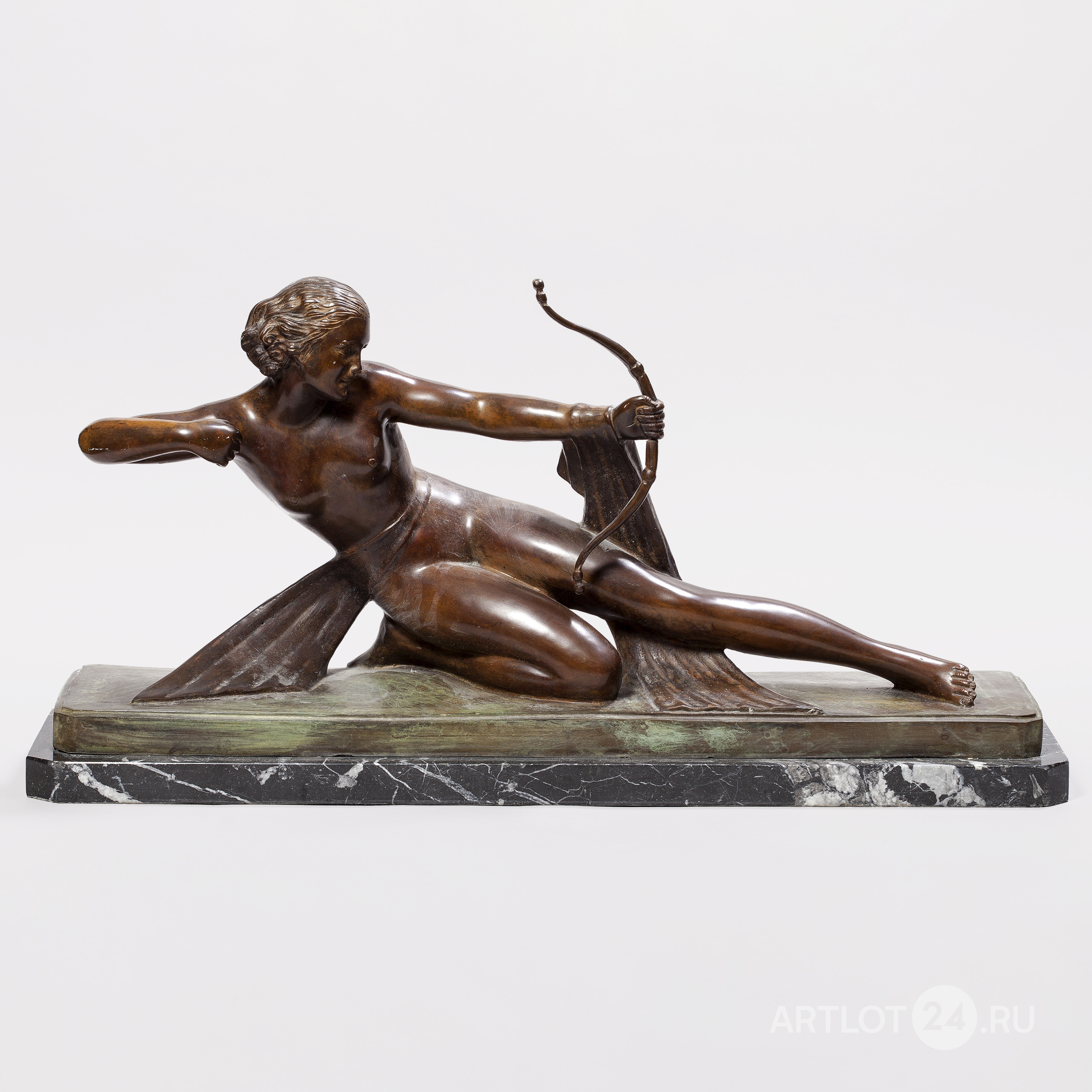 Бронзовая скульптура «Диана-охотница» с мраморной подставкой, тончайшей паутиной патины и детальной проработкой элементов – это искусная работа европейских авторов второй четверти XX века. Предмет антиквариата выдержан в стиле ар-деко: мифическая богиня полна внутренней энергии и силы, она безжалостно целится в свою невидимую жертву, оставаясь при этом невероятно женственной, грациозной и хрупкой. Как и другая антикварная бронза аукциона «АРТЛОТ24», эта изысканная скульптура украсит любой интерьер, придав ему оттенок сдержанной роскоши и утонченности.