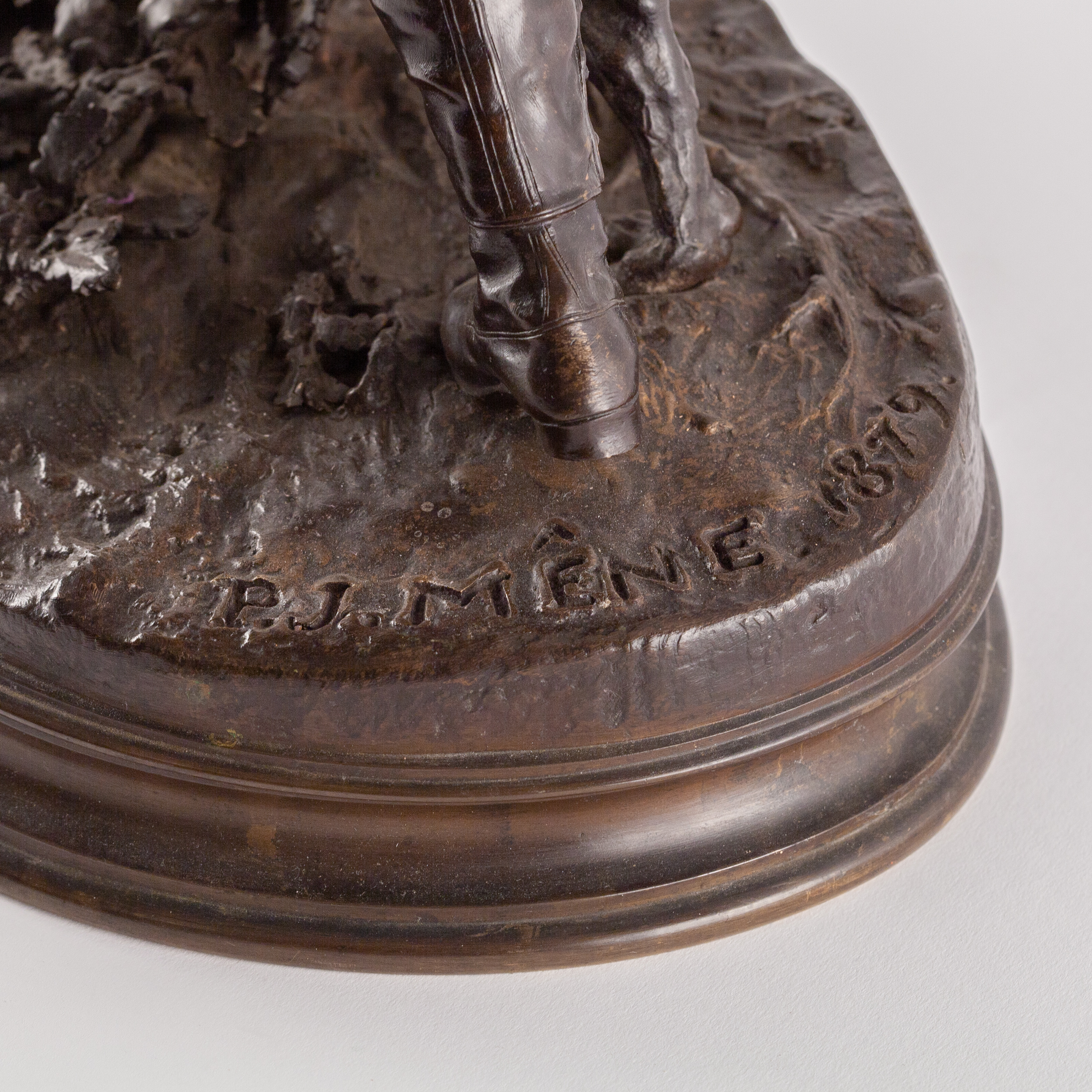 Бронза, литье, проработка, патинирование; на основании в литье дата и факсимиле подписи скульптора «P.J Mene 1879». Размер (в/д/ш): 46 х 37 х 22 см, вес – 12,55 кг.