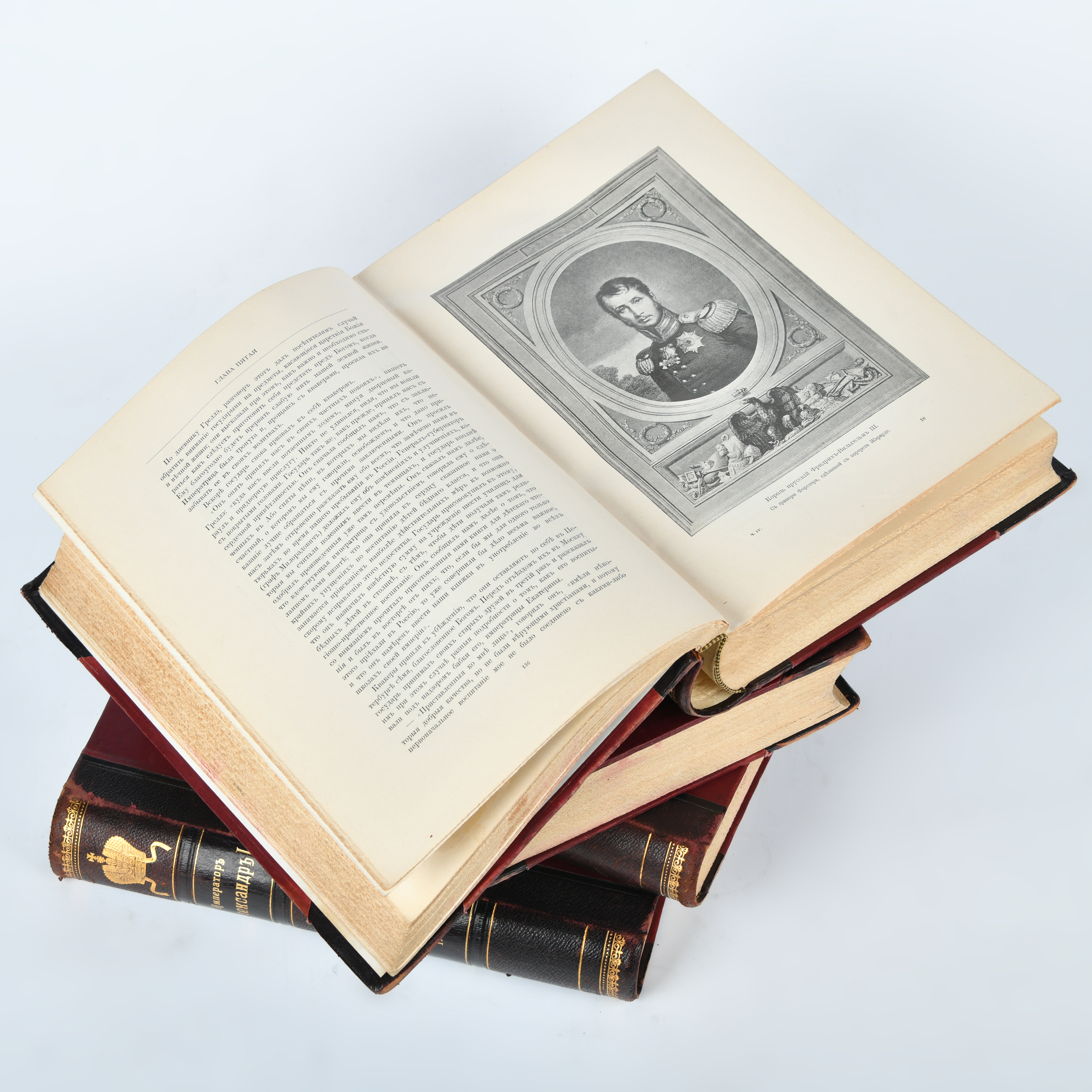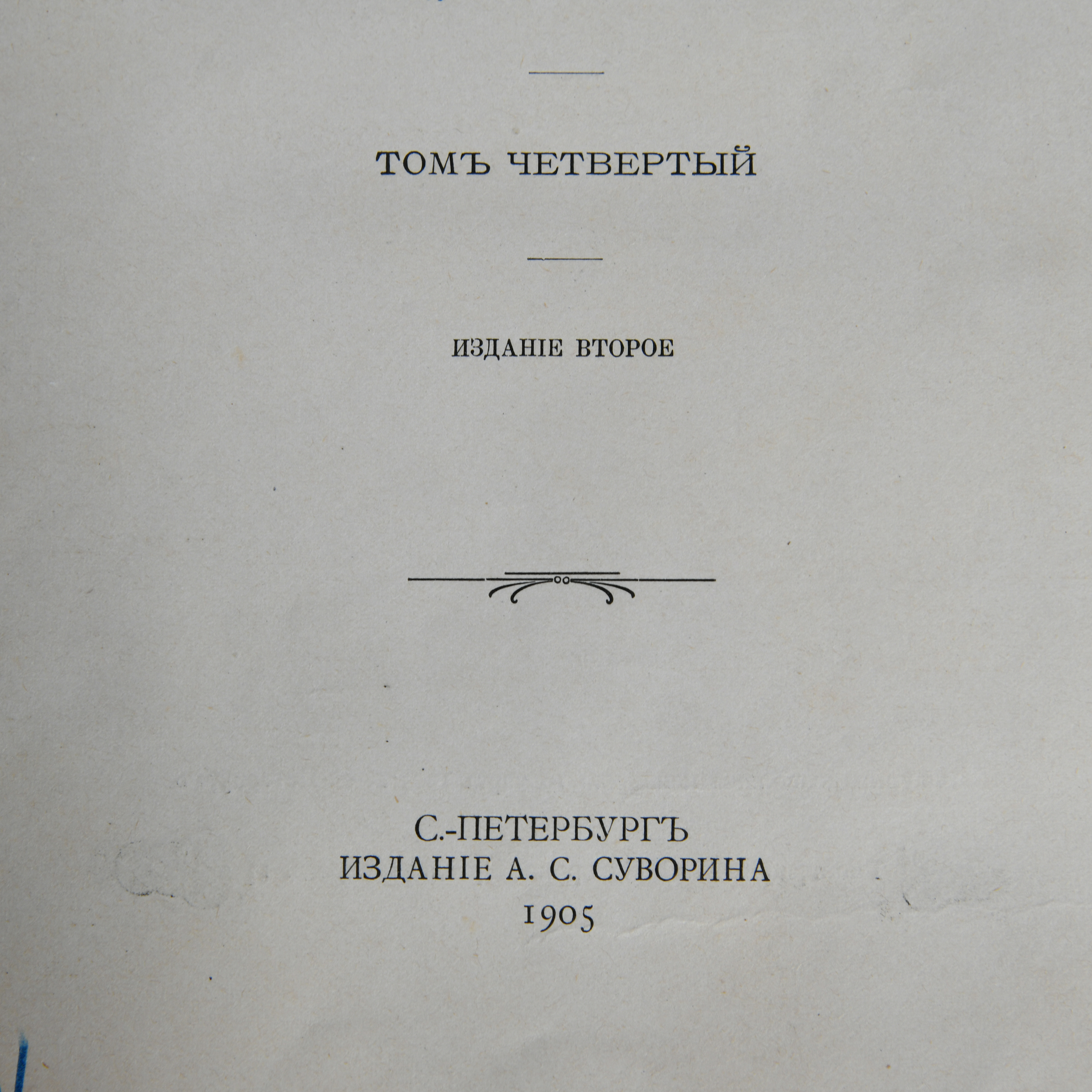 В четырех полукожаных переплетах с сохранением издательских обложек; торшонированные обрезы, золотые головки, золотое тиснение по корешкам и передним крышкам, муаровые форзацы. С 450 иллюстрациями. В 4 т. Т. 1-4. СПб.: Изд. А.С. Суворина, 1894-1905 годы.