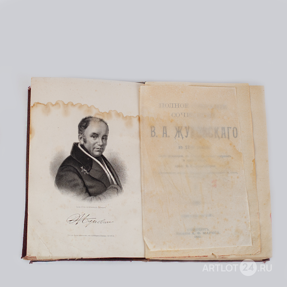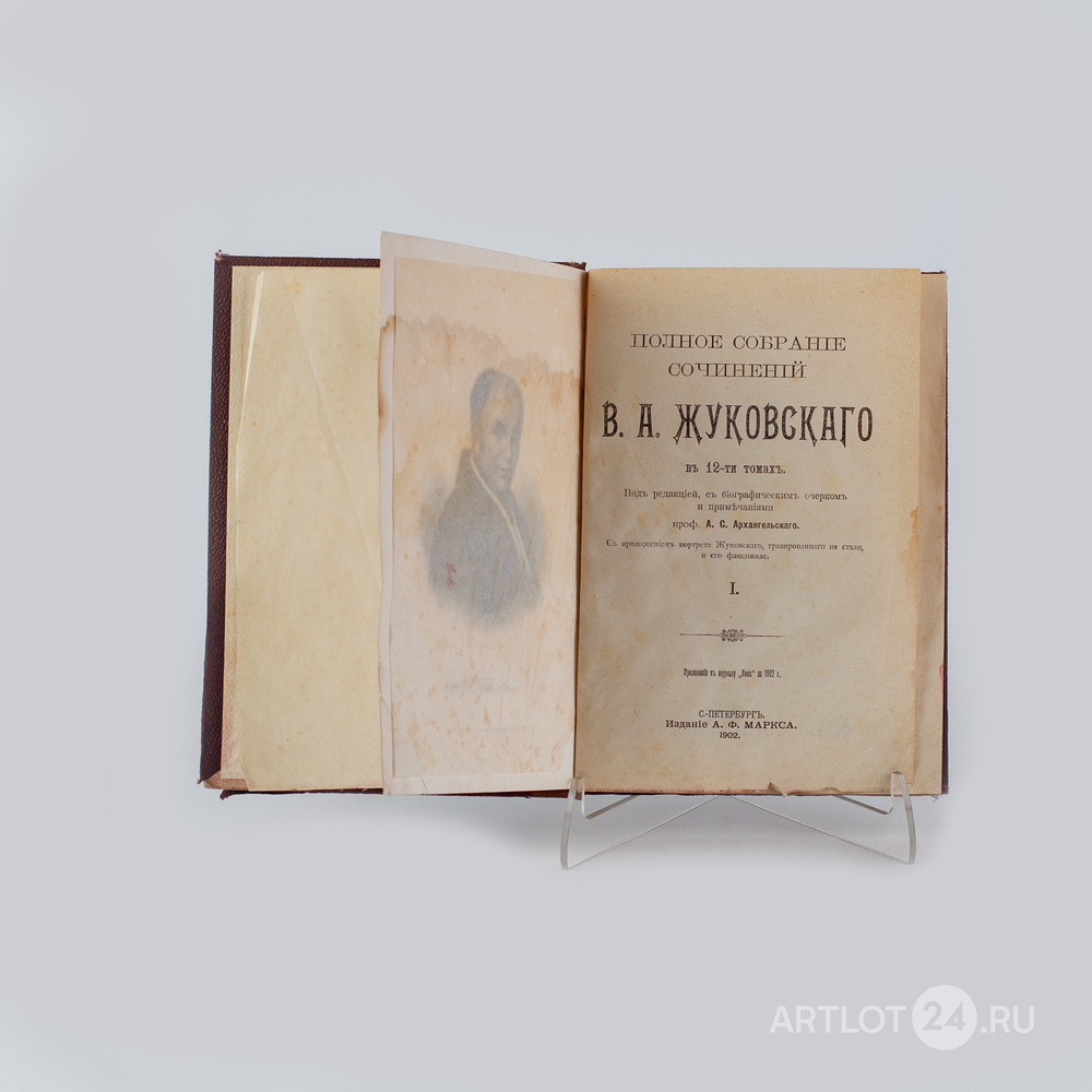 Комплект в трех переплётах. С приложением портрета Жуковского, гравированного на стали (грав. у Ф.А. Брокгауза в Лейпциге), и его факсимиле. Санкт-Петербург, издание А.Ф. Маркса, 1902 год. Под редакцией, с биографическим очерком и примечаниями профессора истории русской литературы, член-корреспондента Императорской академии наук А.С.Архангельского.