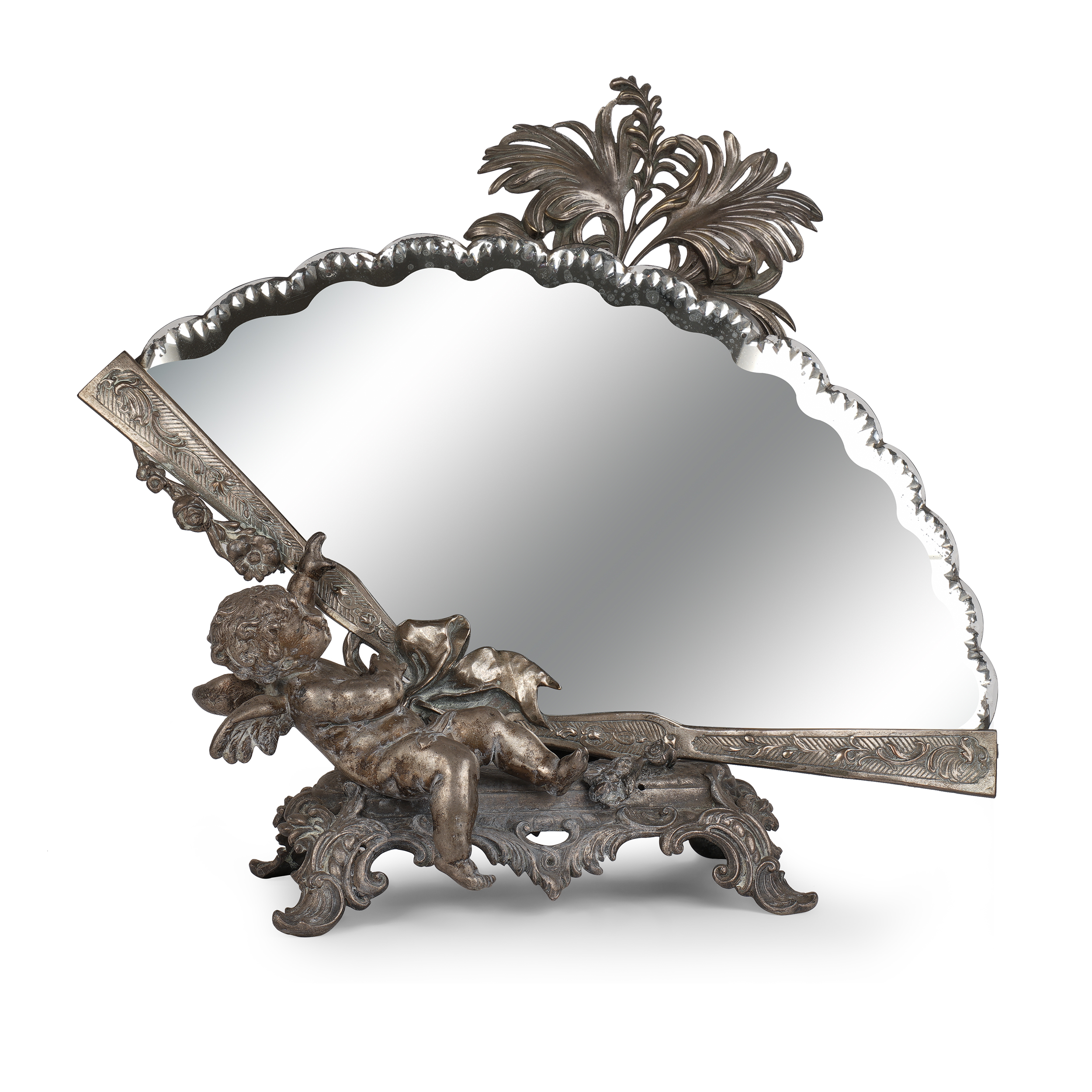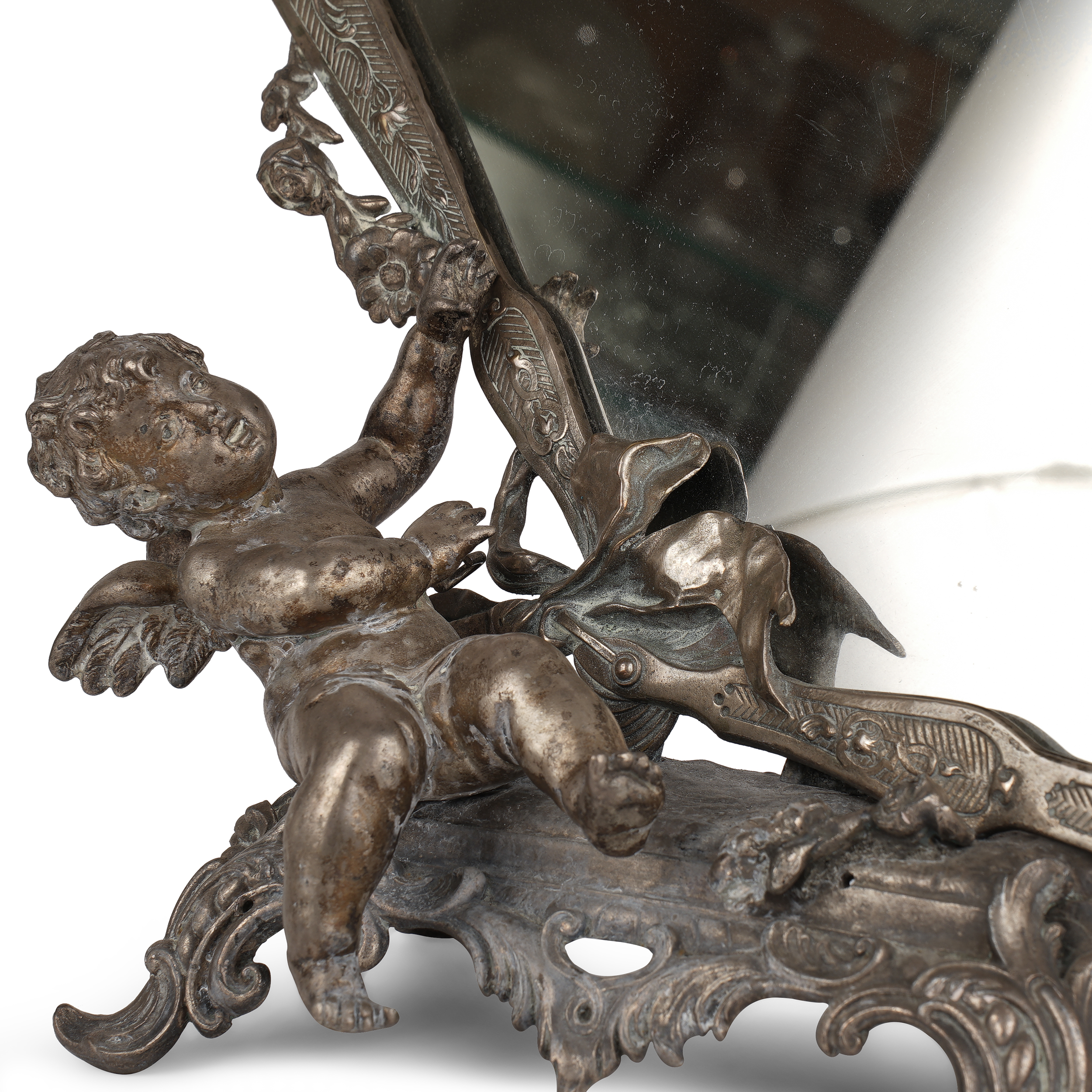 Бронза, литье, чеканка, серебрение, фацетное зеркало, Европа, вторая половина XIX века, размер: 36 х 35 х 17 см