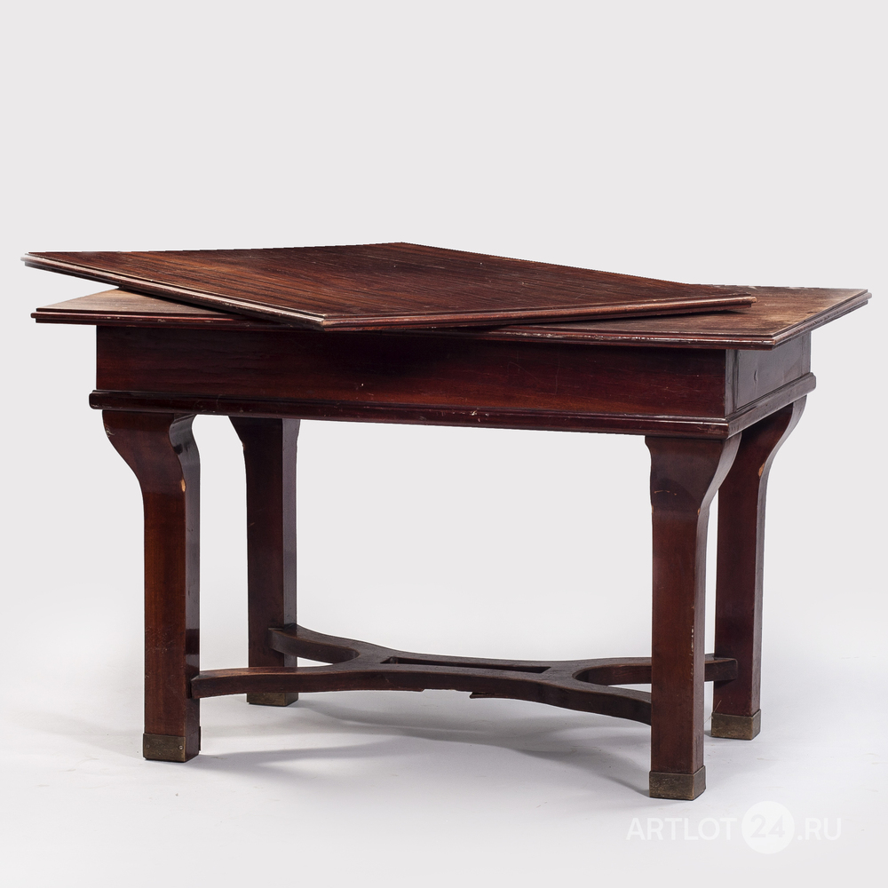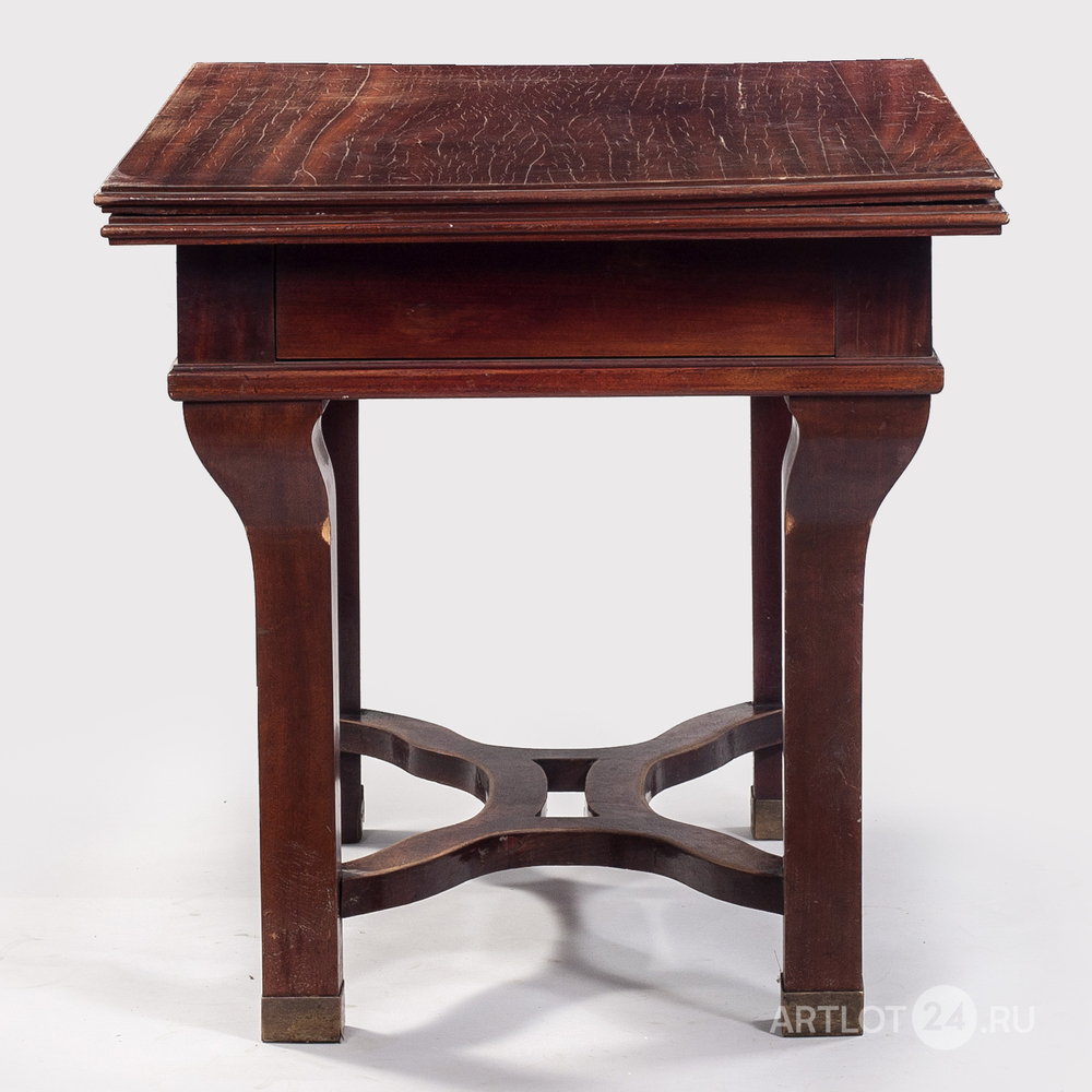 Стол-книжка с поворотом столешницы на 90 градусов. Красное дерево, фанеровка, столярная работа, латунь, Россия, конец XIX - начало XX века, размер (в/ш/г): 77 х 119 х 75,5 см (150 см в разложенном виде)