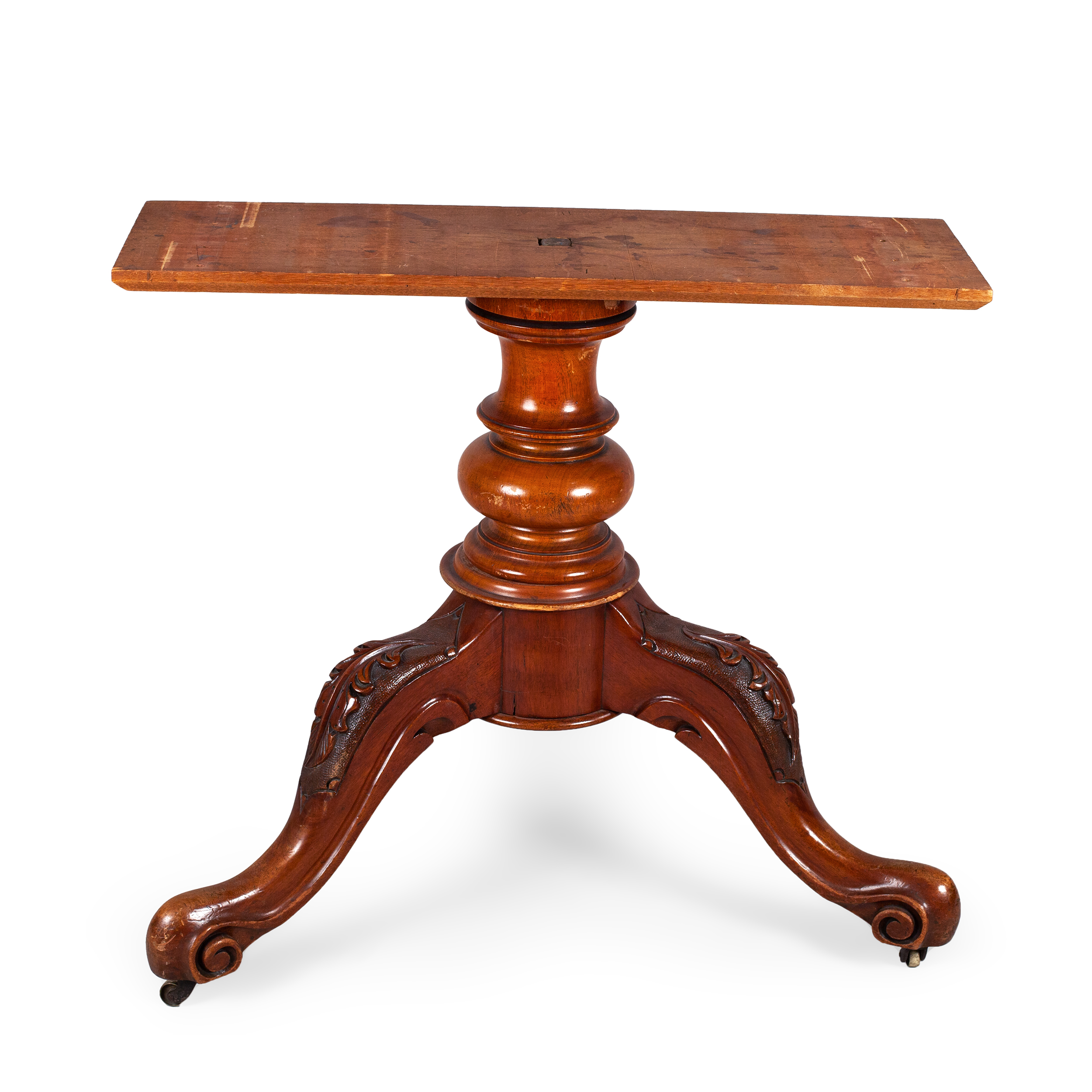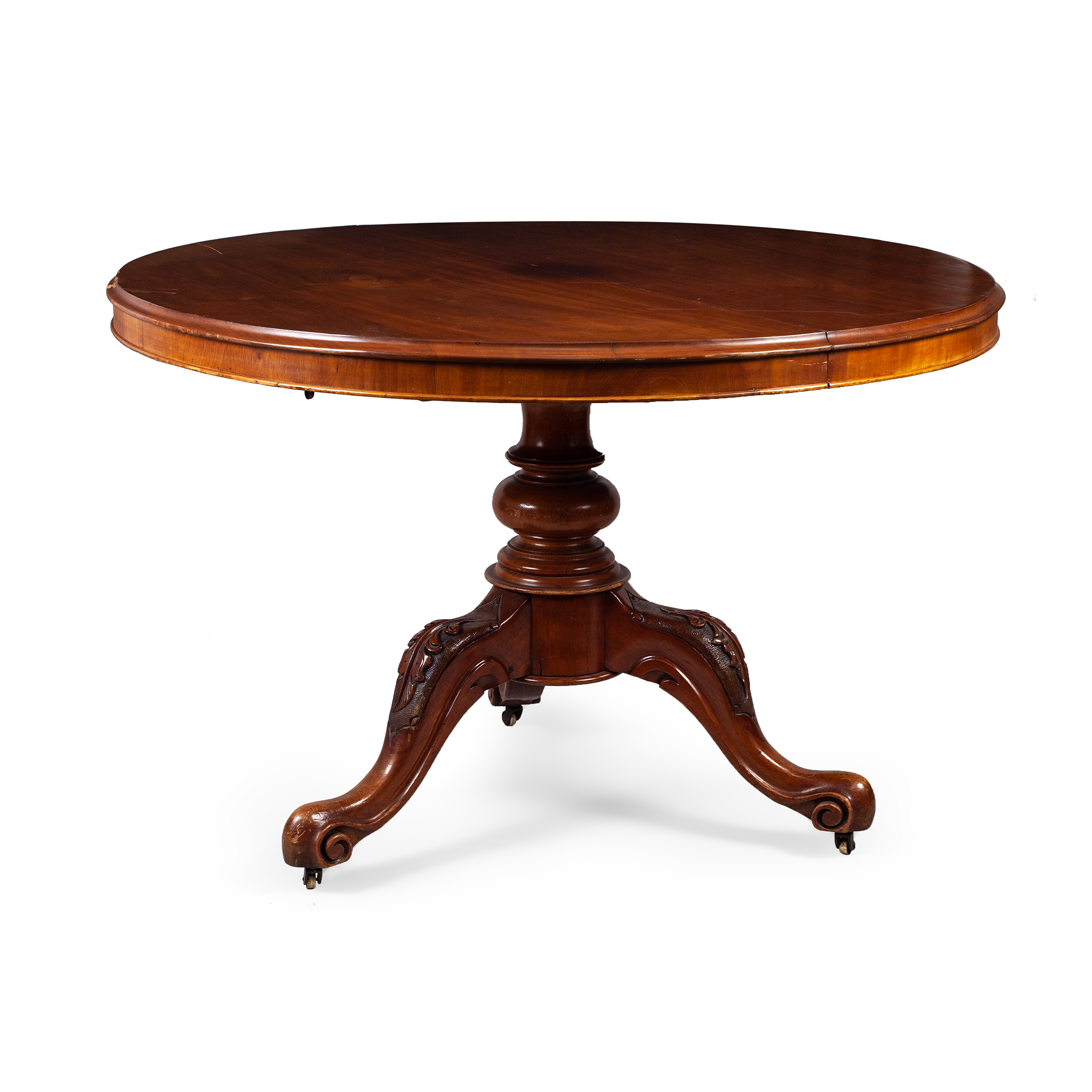 На колесиках. Красное дерево, фанерование, резьба, точение, полирование, Европа, конец XIX века, диаметр – 115 см, высота – 75 см