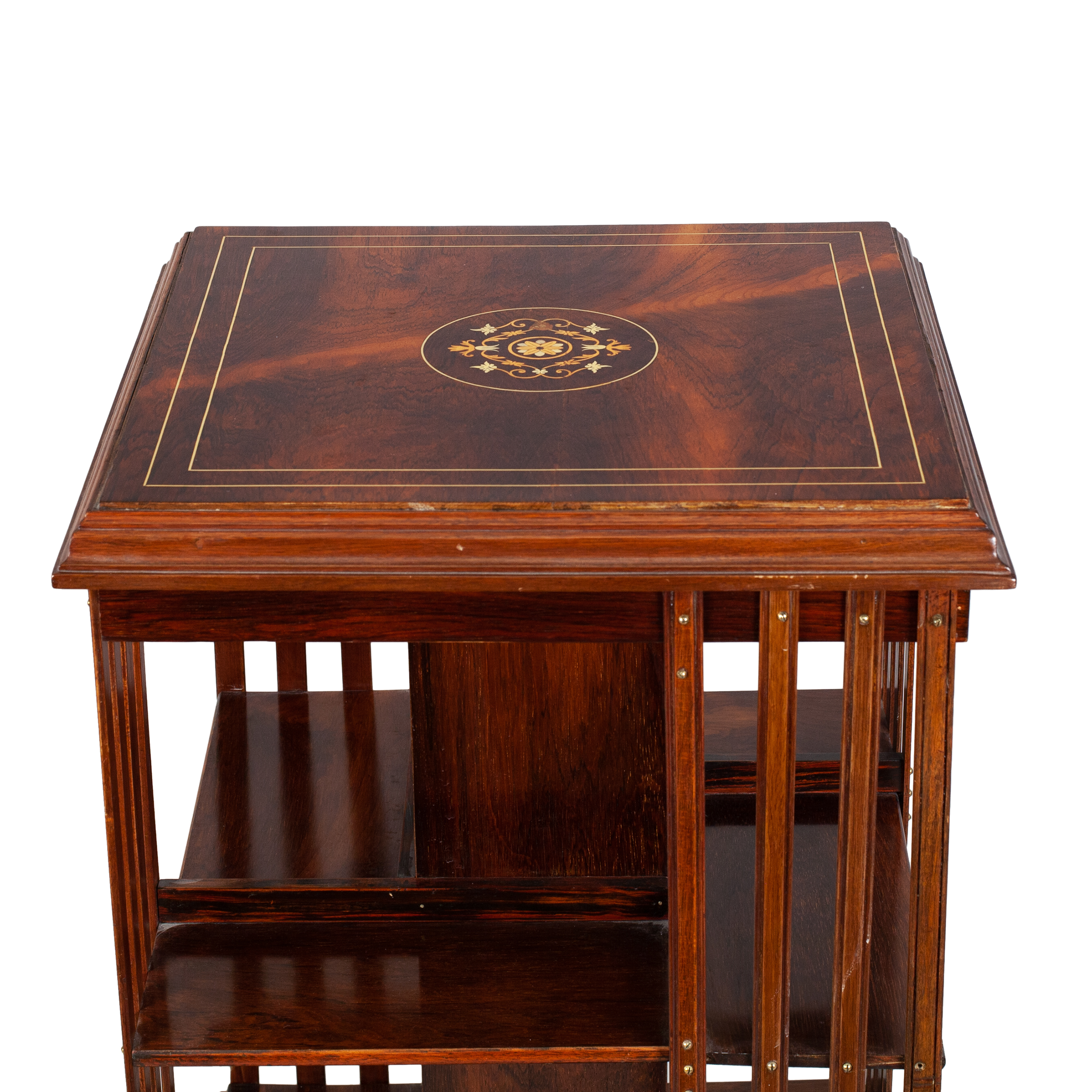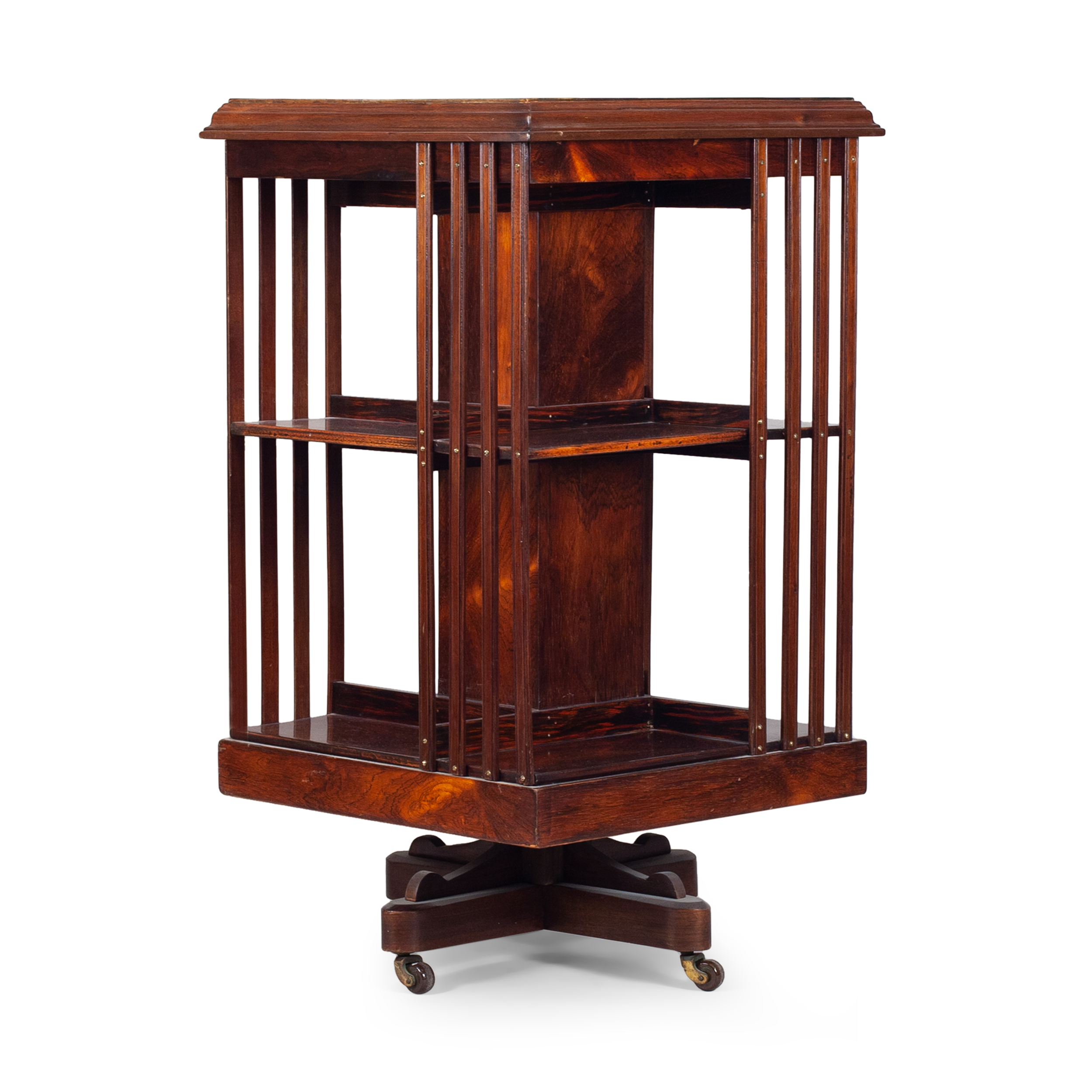 Вашему вниманию мы представляем английскую этажерку для книг из красного дерева на колёсиках. Вращающаяся книжная этажерка в эдвардианском стиле будет прекрасно смотреться как в кабинете, так и в любых других комнатах в доме. Стеллаж для книг поворачивается на 360 градусов относительно опоры, в обе стороны, обеспечивая удобный доступ ко всем четырем сторонам. Этажерка не загромождает пространство и позволяет быстро найти нужную вам книгу. Открытые двухъярусные полки с реечными боковыми панелями — удобная система хранения.