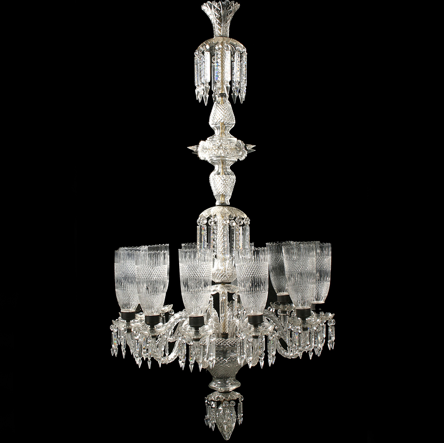 Двенадцатирожковая парадная люстра Баккара. Хрусталь, бесцветный; гранение, пресс, полировка, металл, хрустальная мануфактура «Baccarat», Франция, около 1890 года, размеры: высота - 165 см., диаметр 95 см