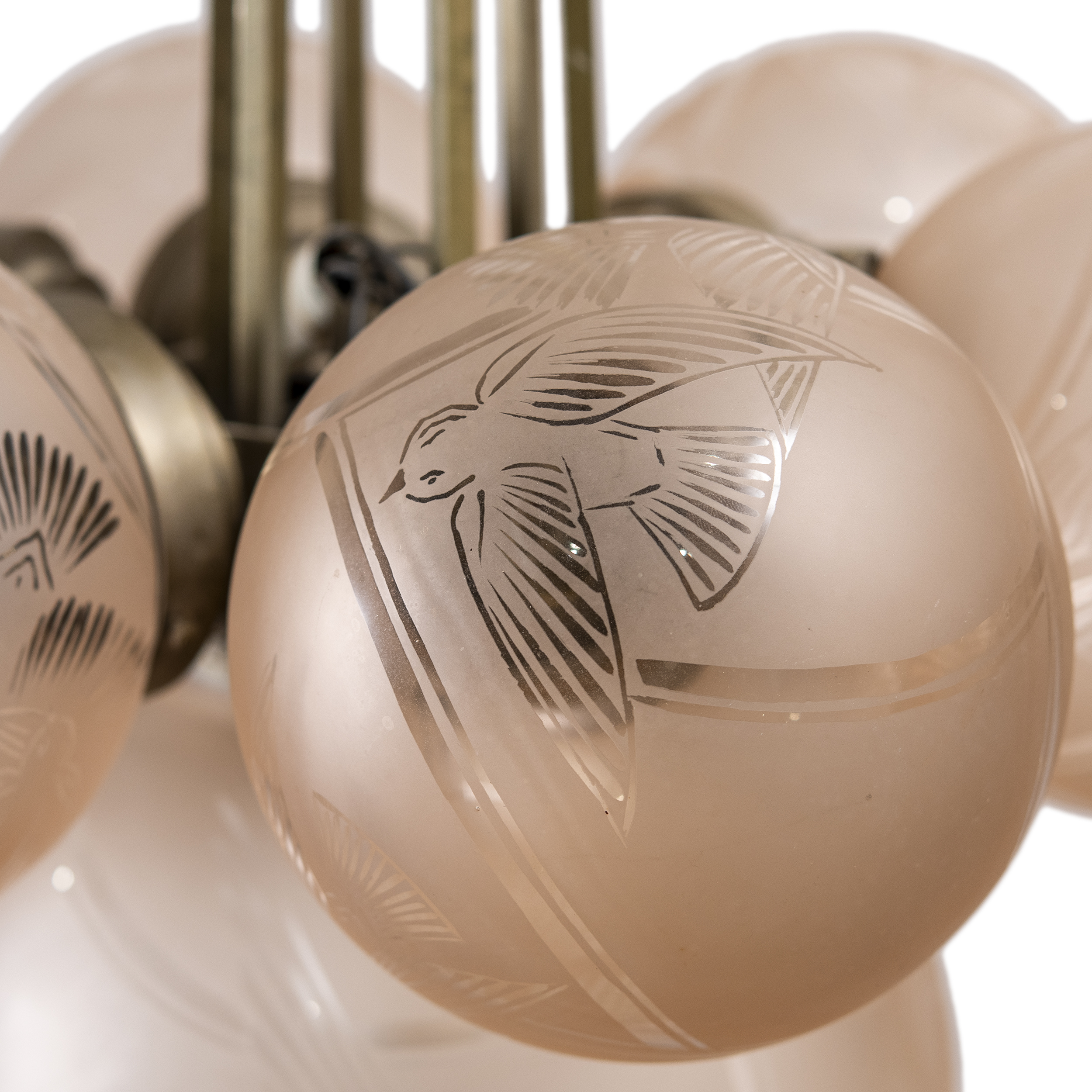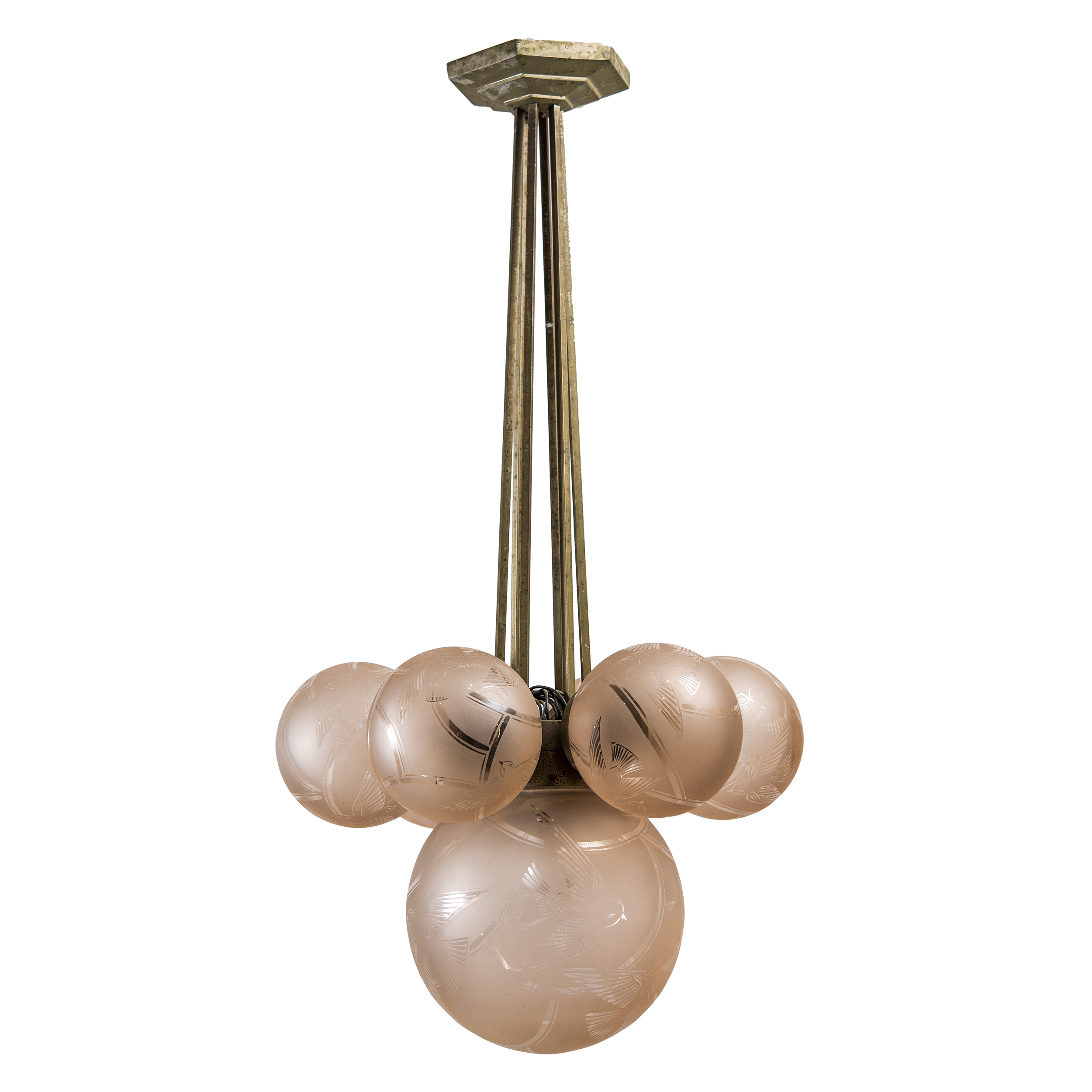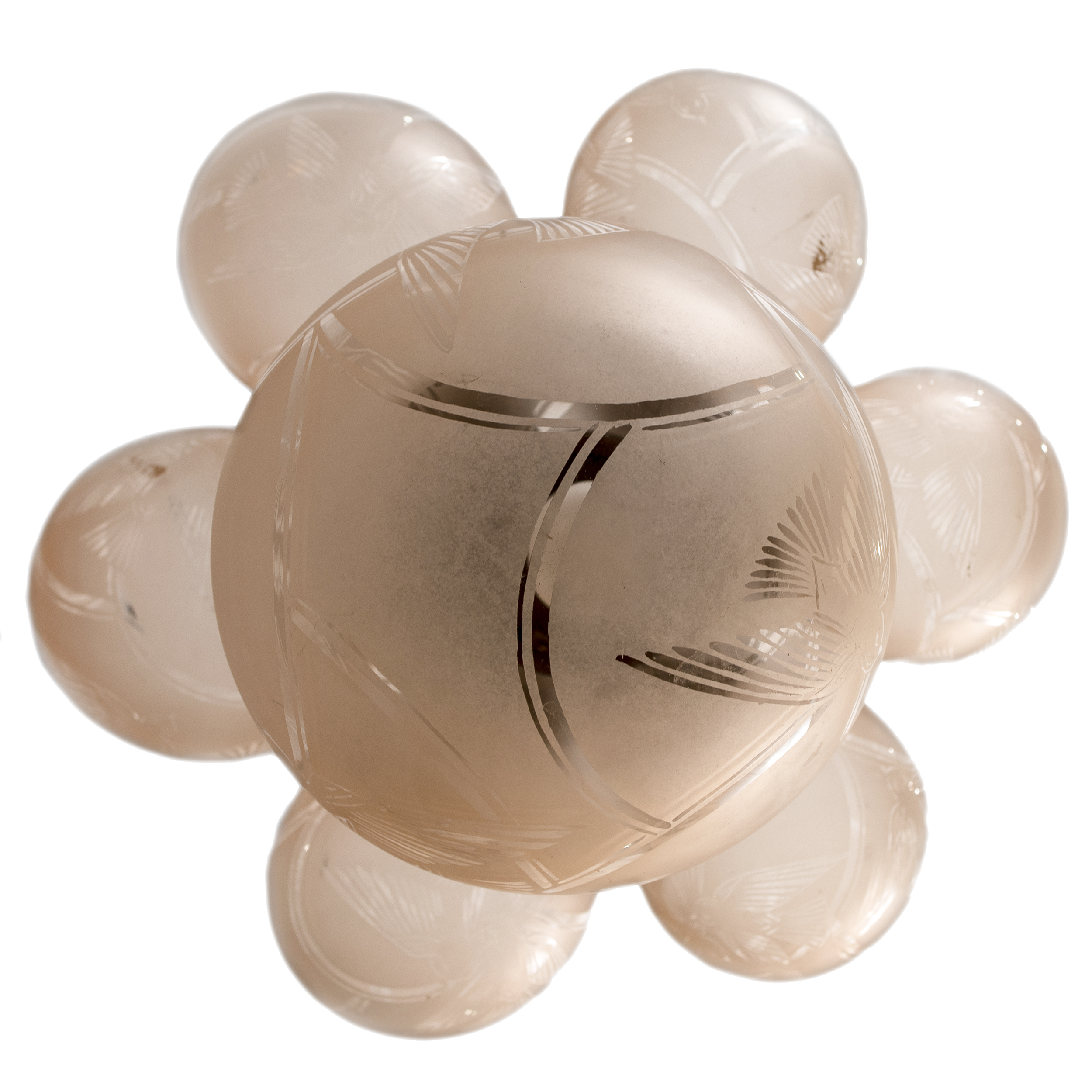Состояние: следы припоя на основании, аутентичные стеклянные плафоны в хорошей сохранности, электрифицирована
