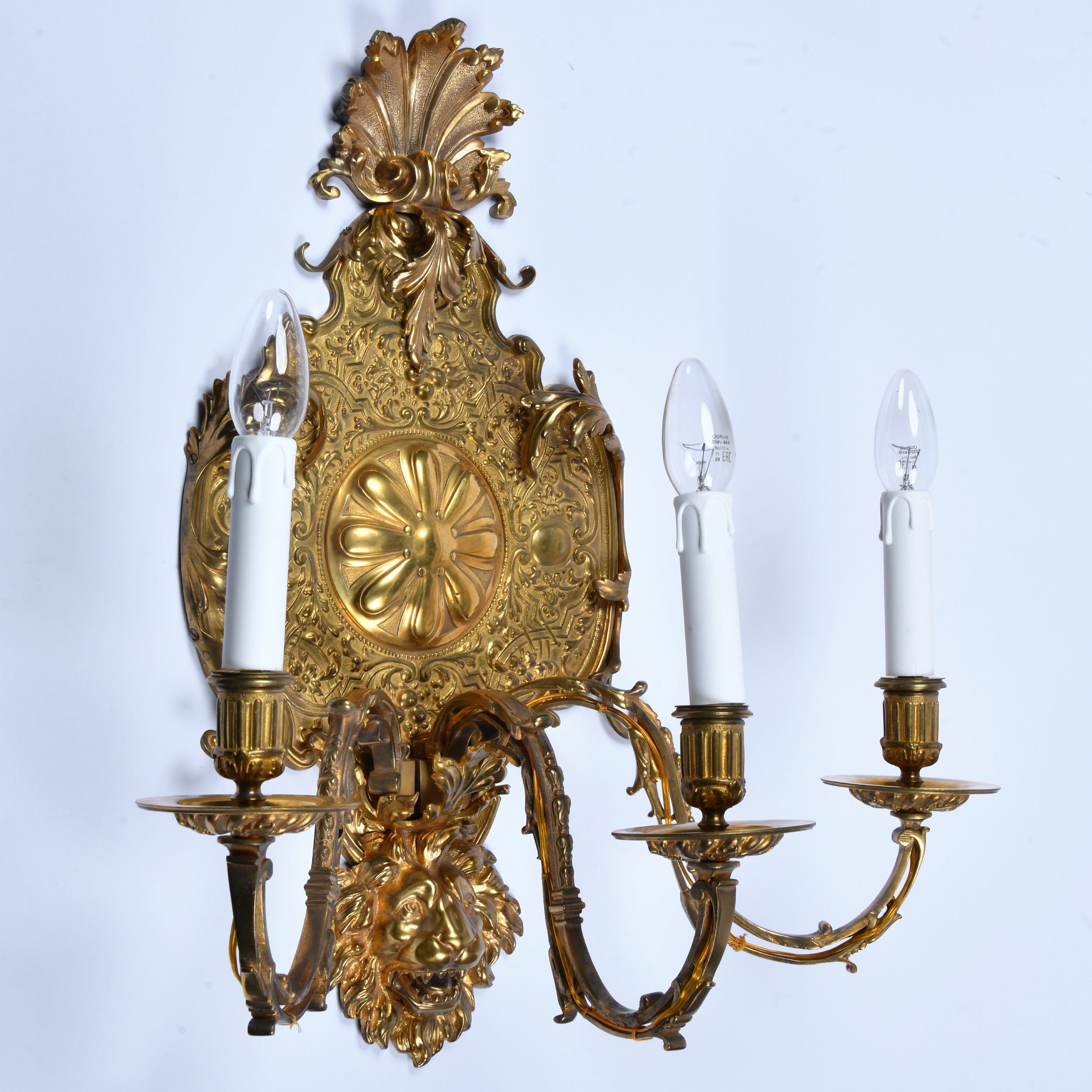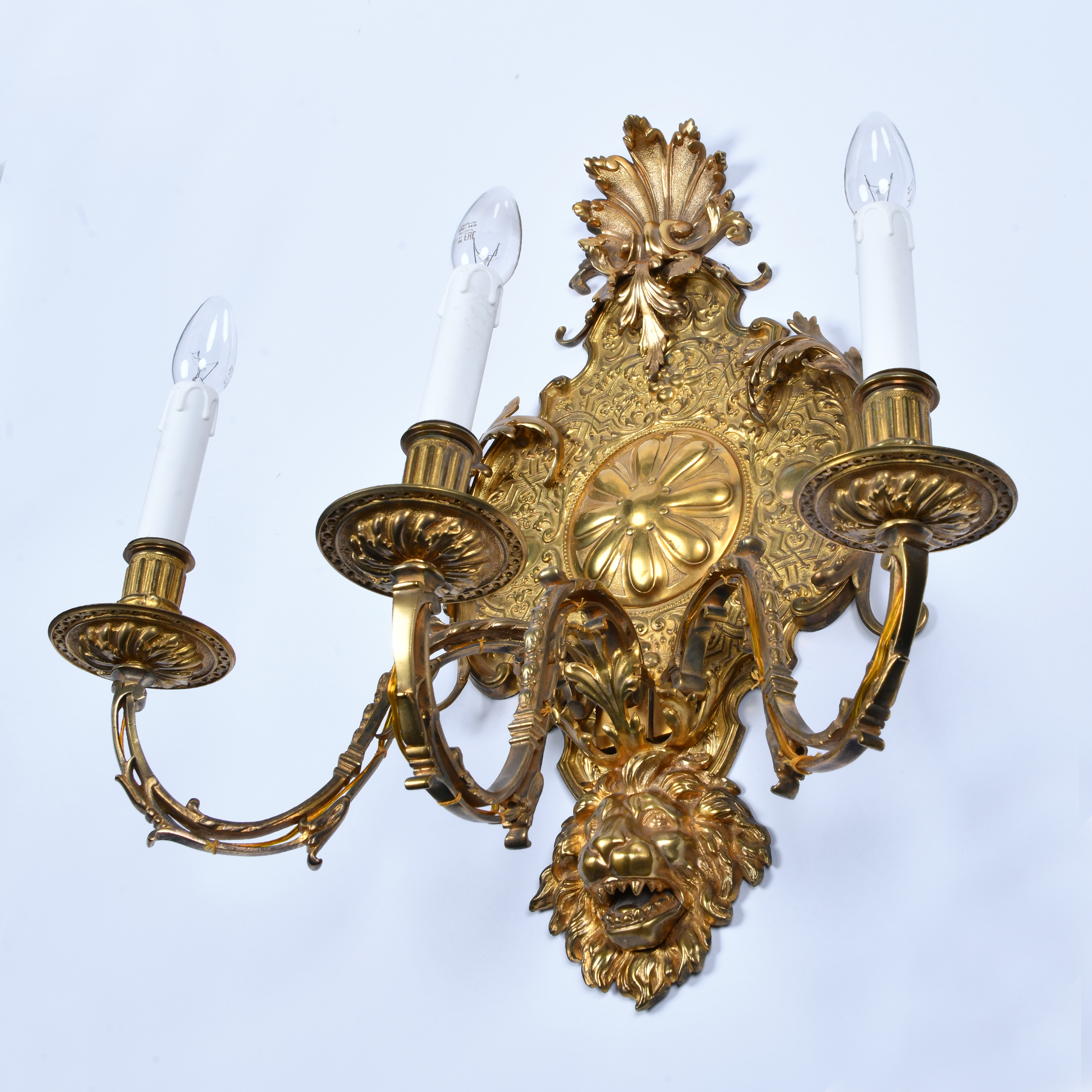 Парные французские бра с львиными маскаронами в стиле «третье рококо»