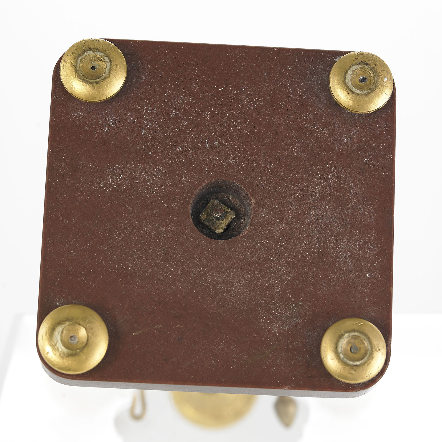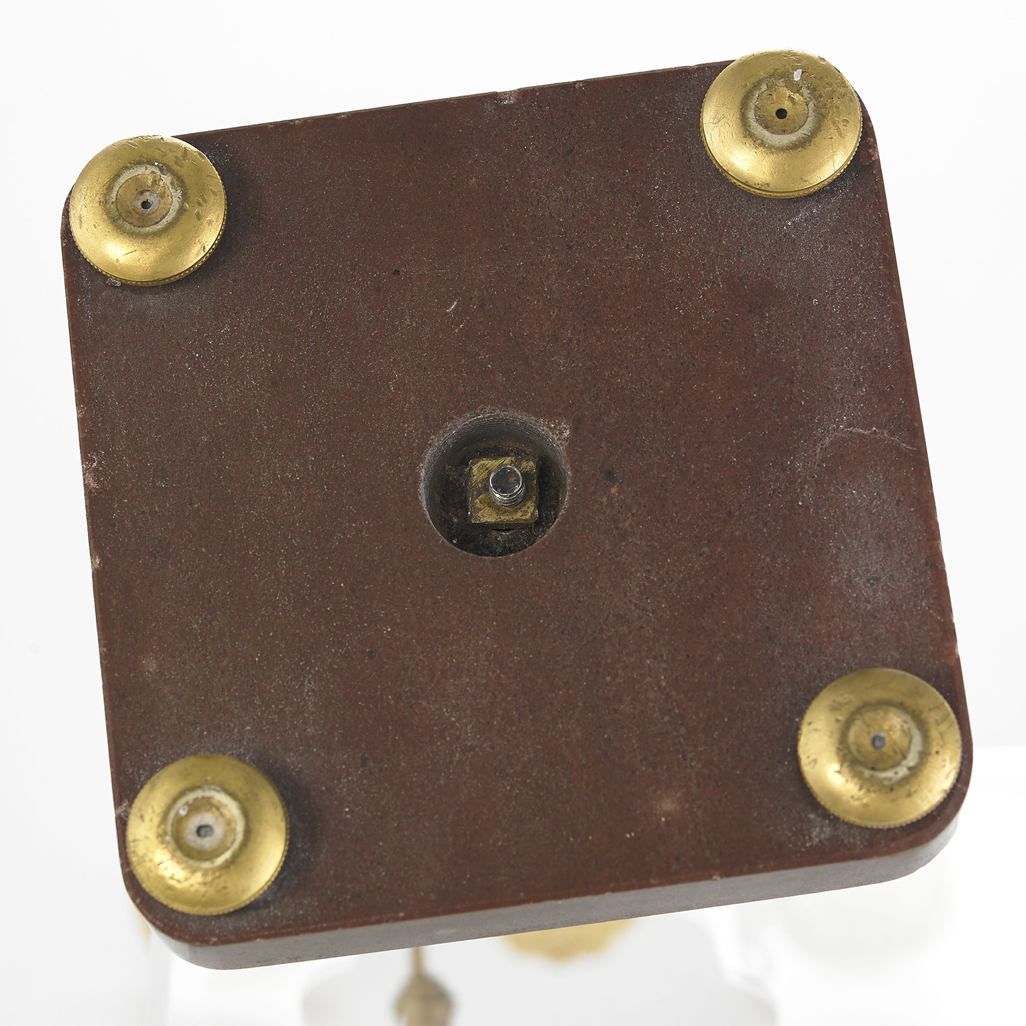 Бронзовая патинированная фигура Антиноя установлена на мраморной подставке. Перемычка, которая соединяет золоченые подсвечники, завершена головами орлов и украшена символами, стилизованными под египетские иероглифы.