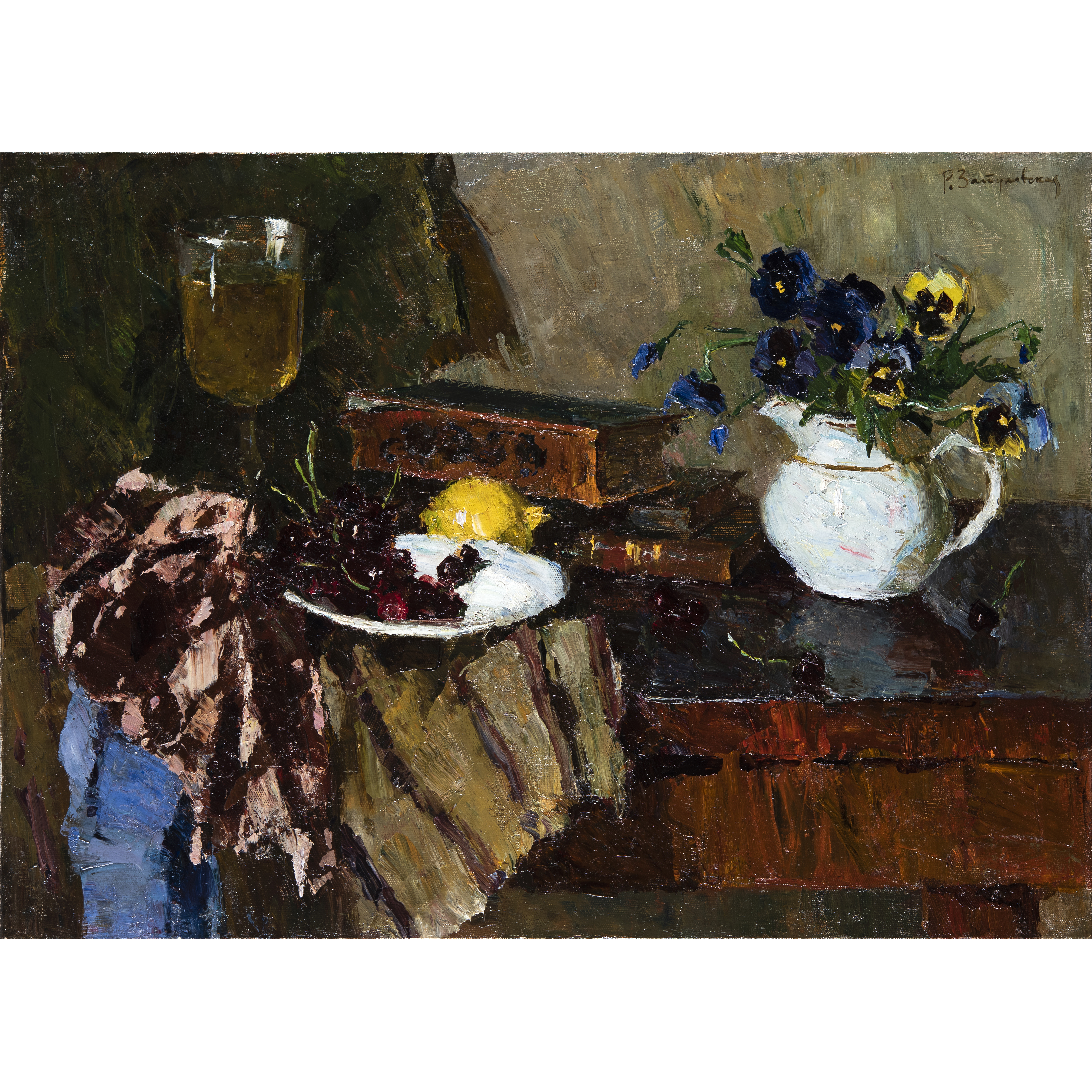 Полотна Р.С. Затуловской экспонировались на выставке «Советская Россия» 1960 года, где, вероятно, был представлен и «Натюрморт с анютиными глазками».
