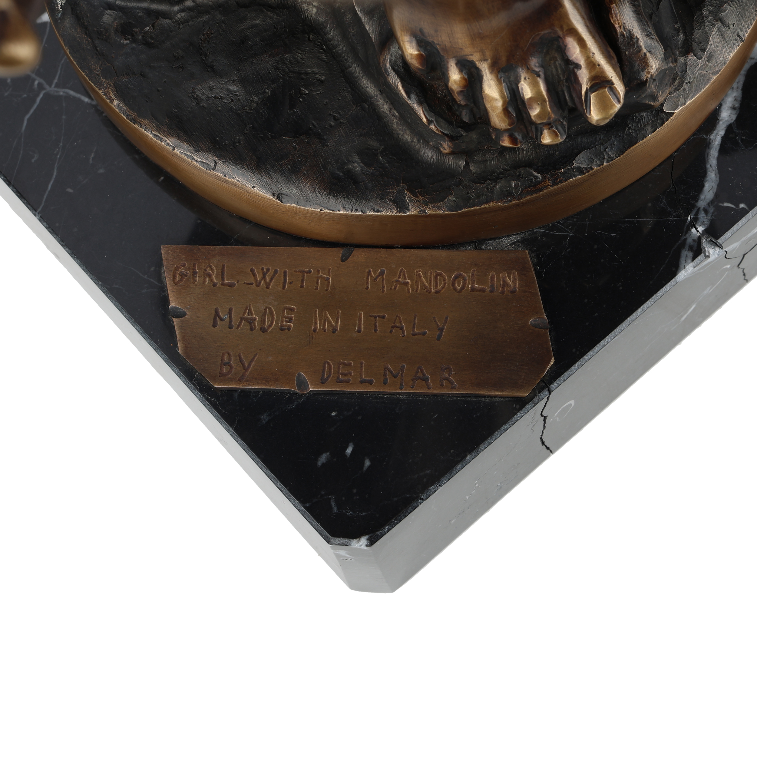 Бронза, патинирование. Подпись на основании «Girl with mandolin / made in Italy / by DELMAR" Высота: 55 см