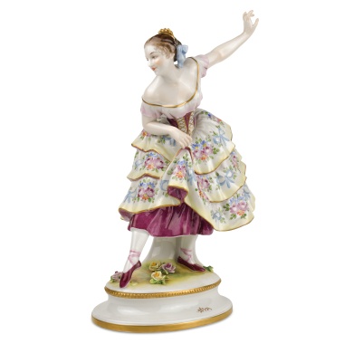 Фарфор, лепка, полихромная деколь с подрисовкой, золочение, надглазурное синее печатное клеймо «Дулевская фабр. им. "Правды"» и «Фарфортрест» под гербом СССР, печатная надпись в две строки «Разр. №-253-19/VI-24г. // ПРОТ. № 9§20.» и номер «811» от руки, СССР, Дулевский фарфоровый завод, 1924 год, опытный образец. Размеры: высота – 7,9 см, диаметр – 8,5 см