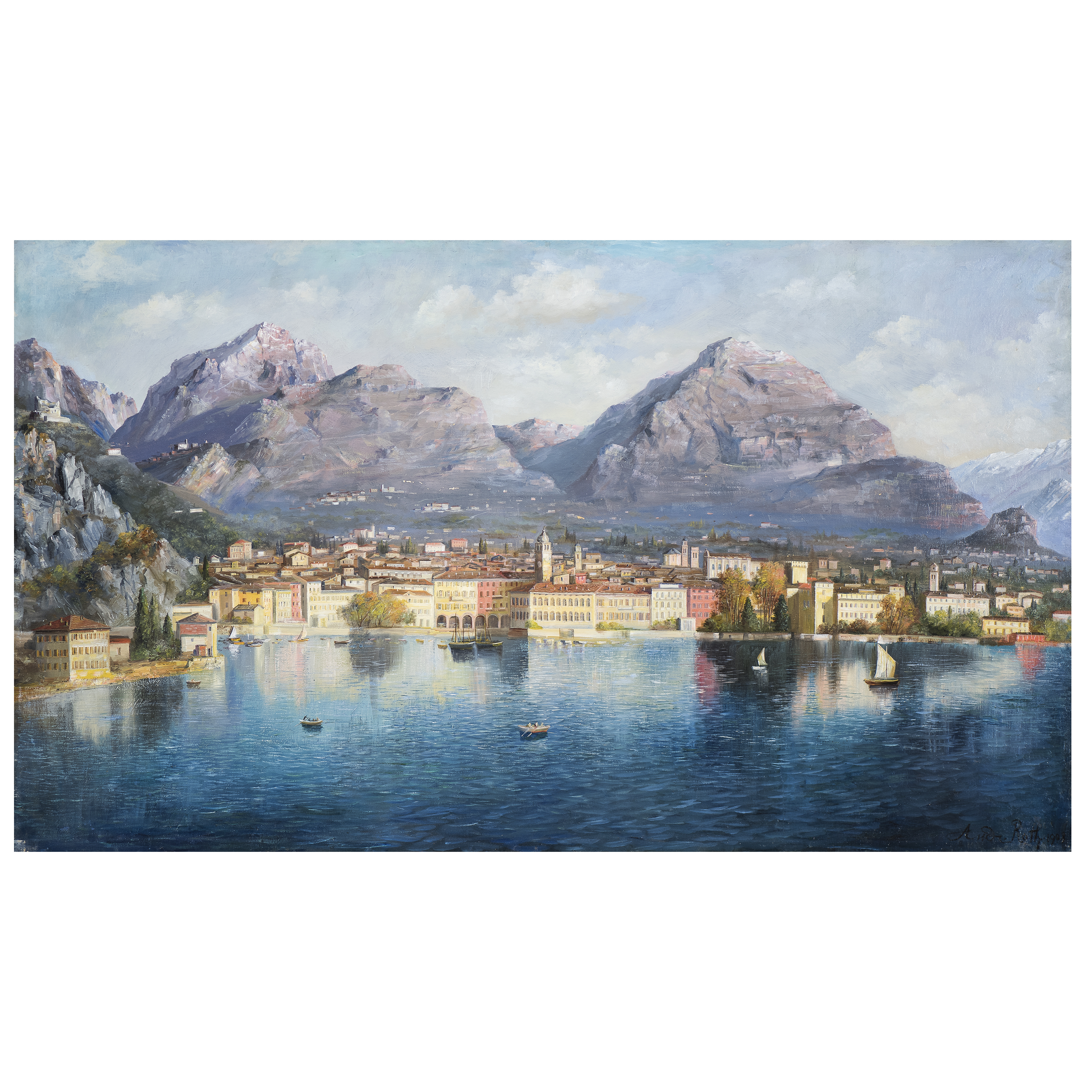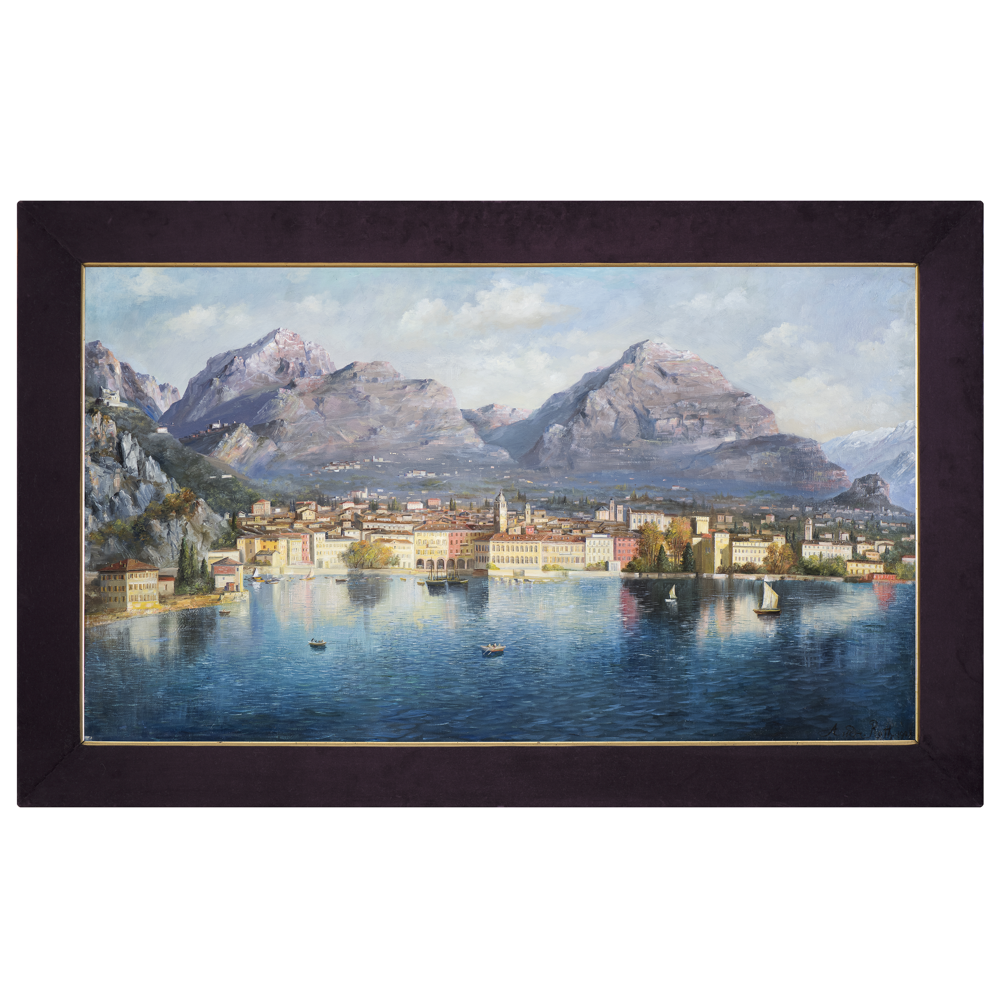 Картина «Северная Италия. Озеро Гарда» является уникальной из серии пейзажей Эдварда Рота. Ракурс пейзажа показывает вид не только на бухту кораблей, но и на всю коммуну Рива-дель-Гарда в провинции Тренто. Передний план украшают тончайшие мазки водной глади, на которых раскинулись рыбацкие лодки. Искусно переданное отражение городка показывает талант художника. На центральном плане изображен курортный городок, привлекающий внимание своими живописными и яркими домиками. Виднеющаяся башня Торре Аппонале является главной достопримечательностью города и служит для наблюдательных целей. Верхняя часть картины открывает вид на массивные Доломитовые Альпы. Игра света и тени показывает объём и реалистичность изображения гор. Гармония пейзажа подчеркивается умиротворенностью озера и безмятежностью городка. Возможно лишь только вечером курортный городок обретёт весёлую и шумную жизнь.