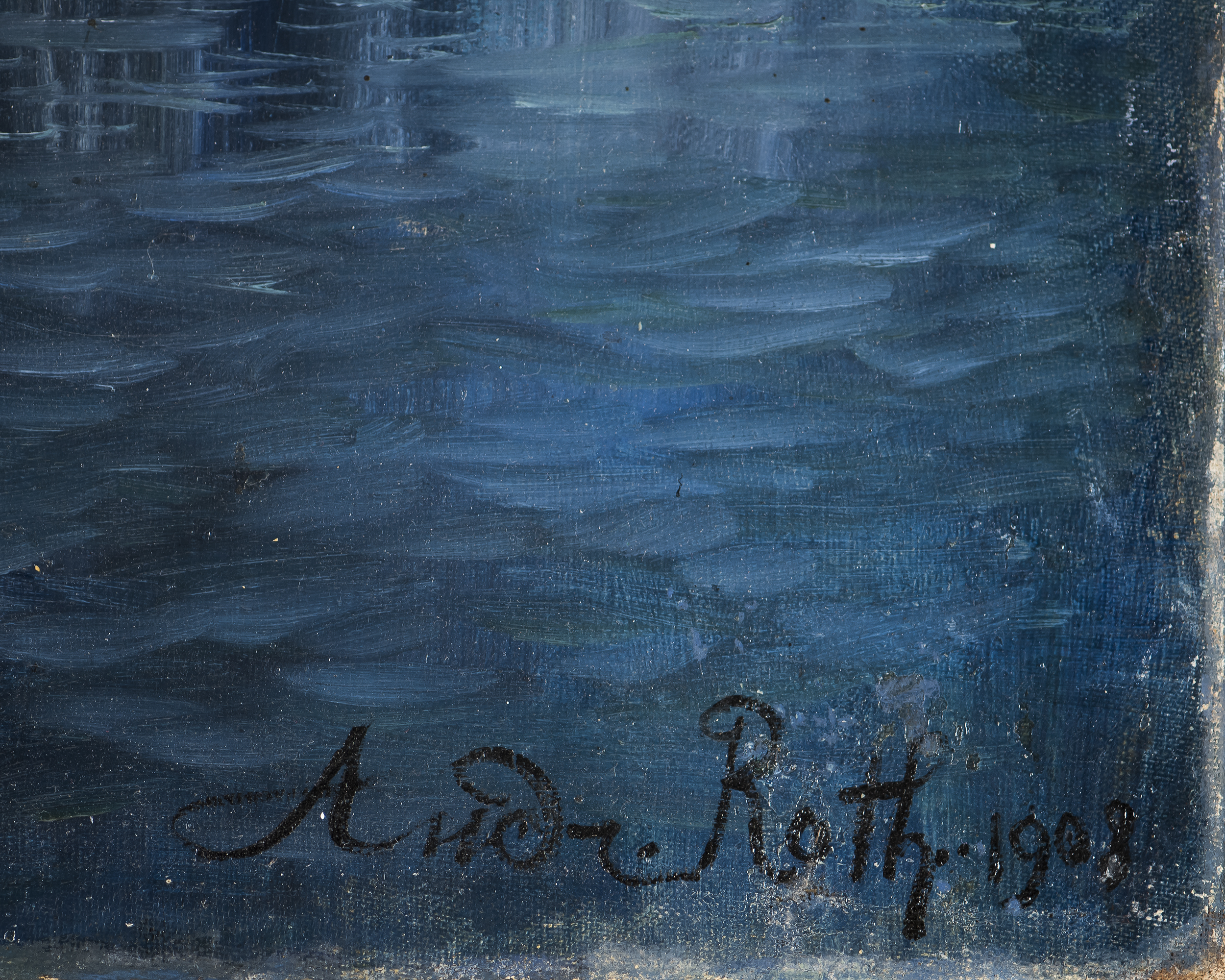Холст, масло, подпись в правом нижнем углу «Andr. Roth. 1908», художник немецкого происхождения Андреас Рот (Andreas Roth, 1872-1949), Европа, 1908 год, размер холста: 73 х 126 см, в раме: 90 х 145 см