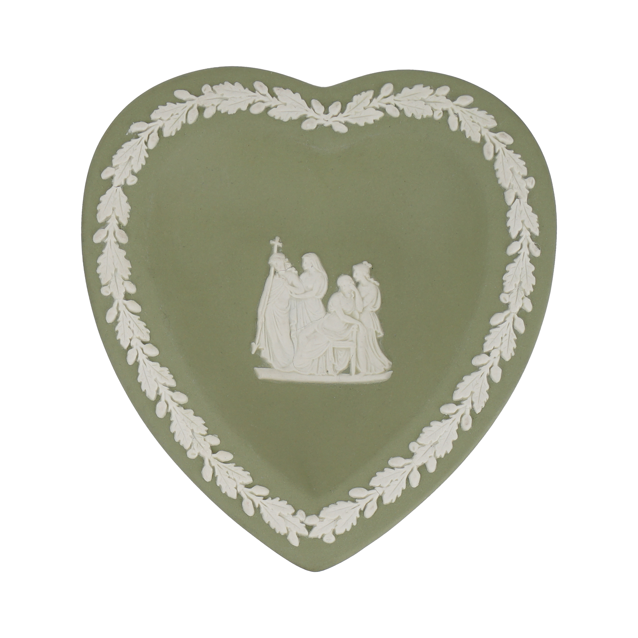 Фарфор (яшмовая масса), обжиг, рельеф. Блюдо декорировано с античным сюжетом. Печатные клейма в тесте "WEDGWOOD / made in England". Размер: 12х10,6