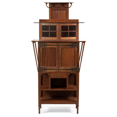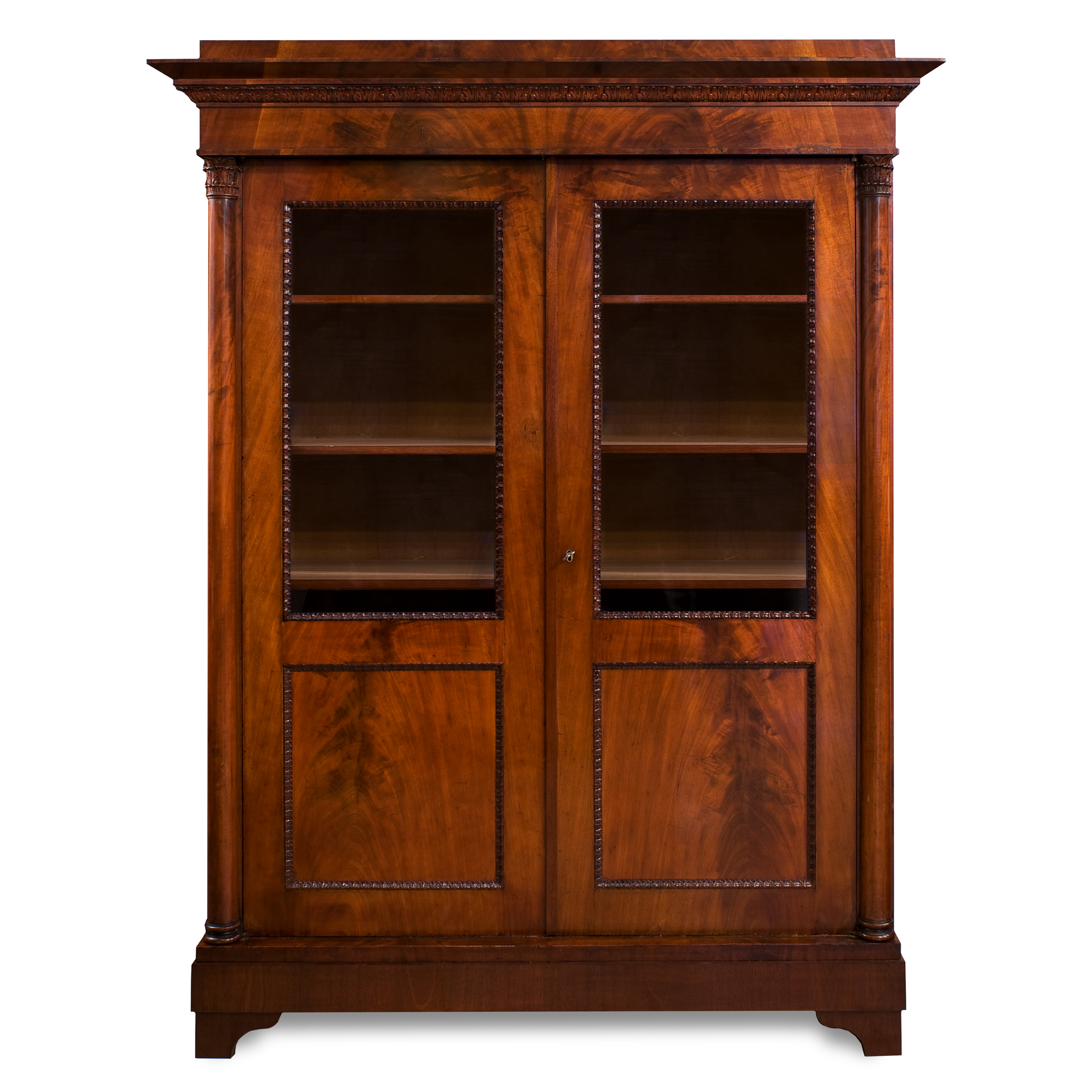 С резным фризом в виде аканта. Сосна (основа), красное дерево, фанерование, стекло, Россия, 1830-е годы, размер (в/ш/г): 208 х 160 х 61 см