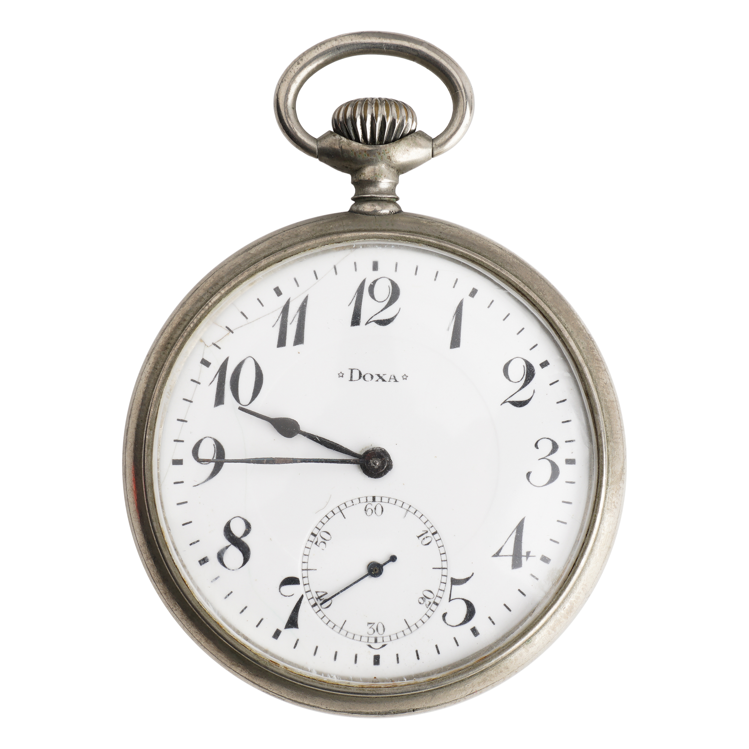 Металл, эмаль, гравировка, тип корпуса "мыло", ремонтуар. На задней крышке гравированная надпись "Стойкому бойцу особой Краснознаменной Дальне-Восточной Армии т. Чекризову А.Ф. от РВС СССР" Doxa, Швейцария, начало ХХ века, размер - 50 мм