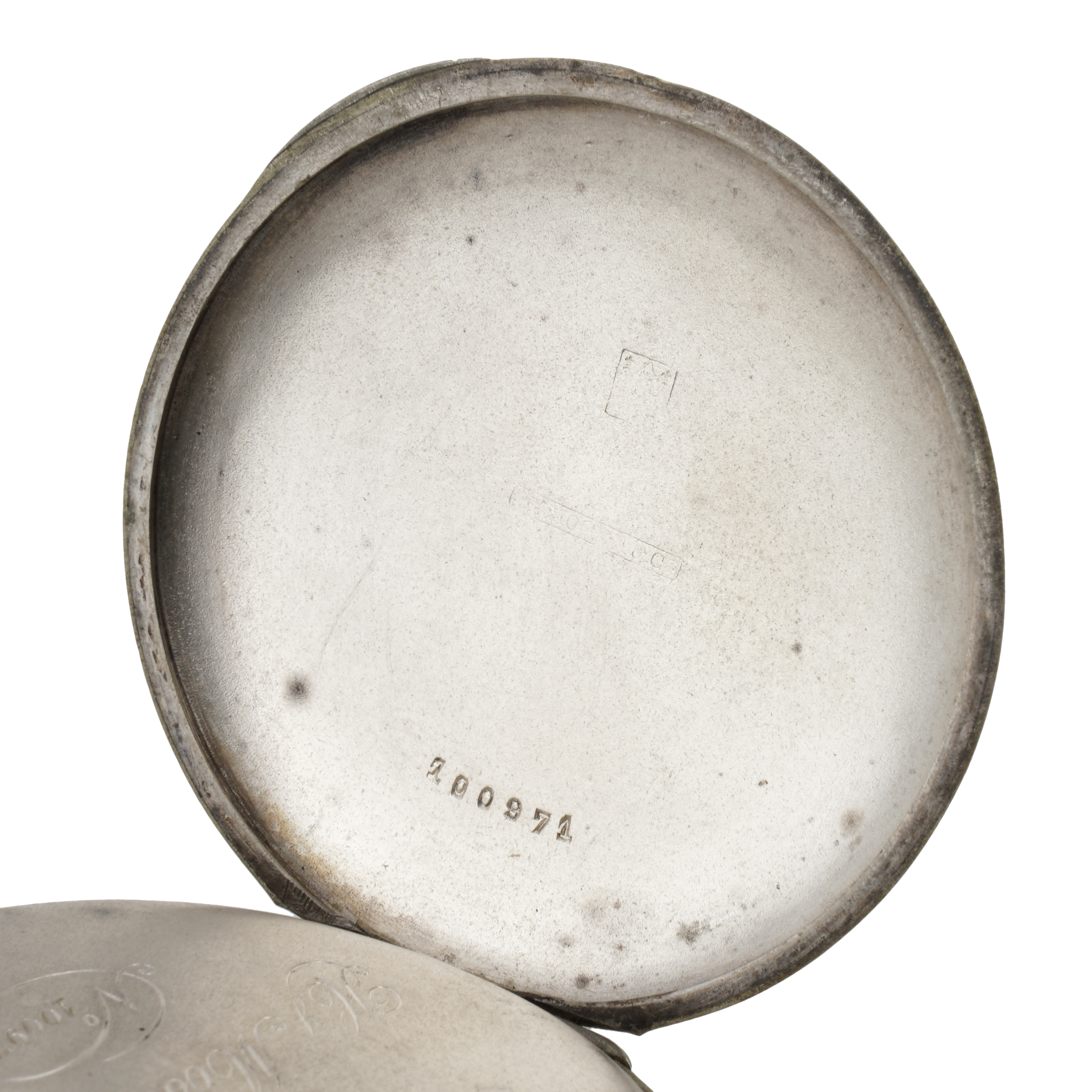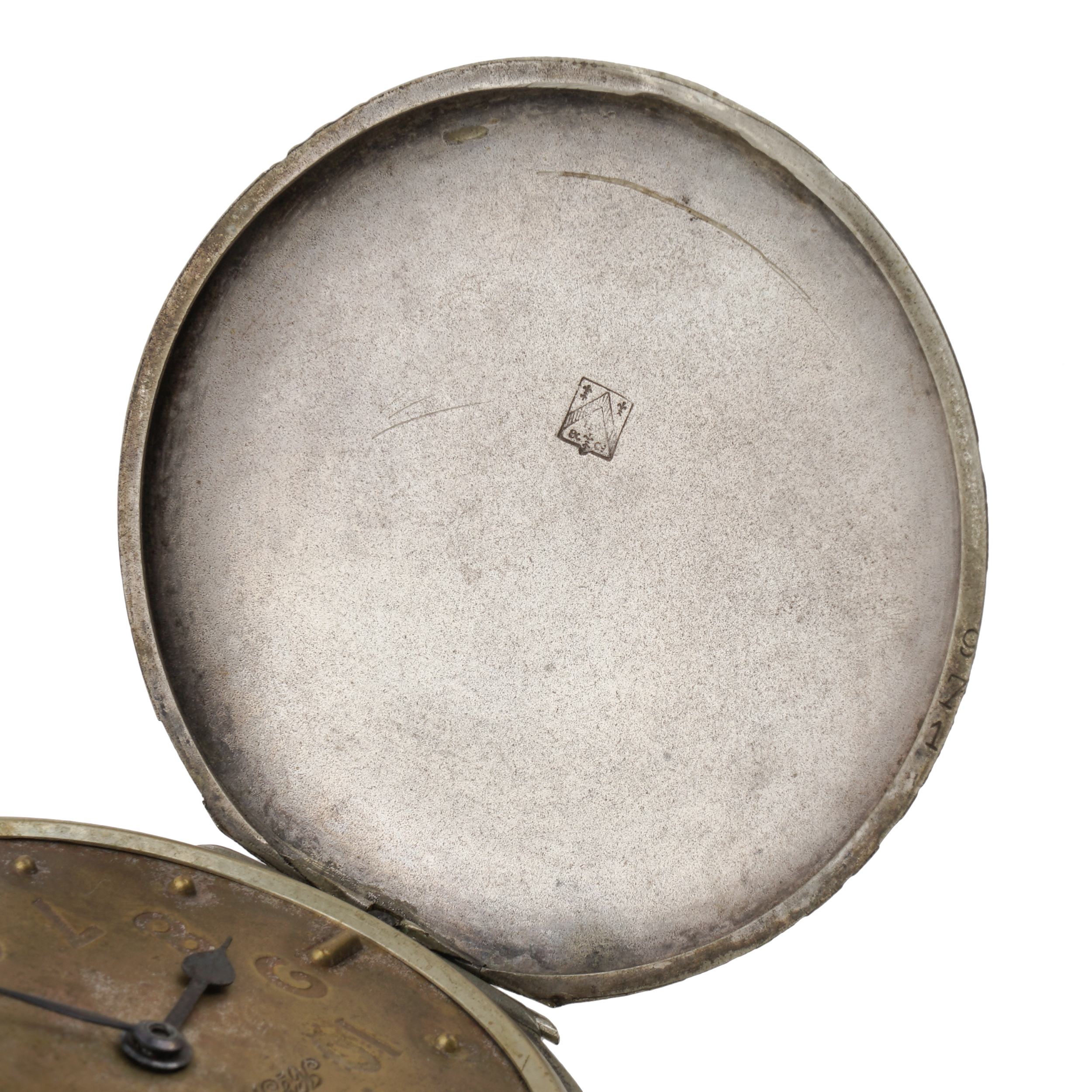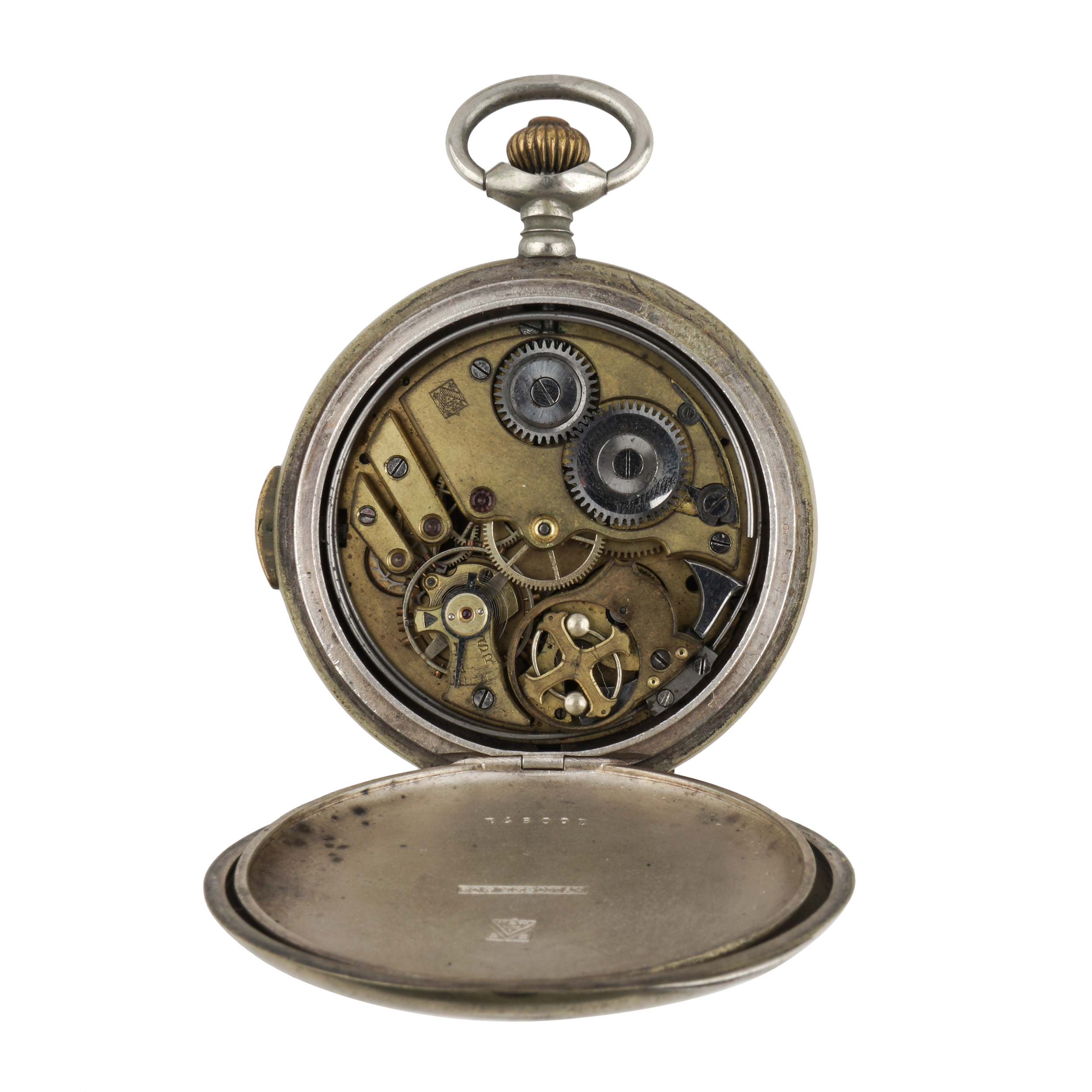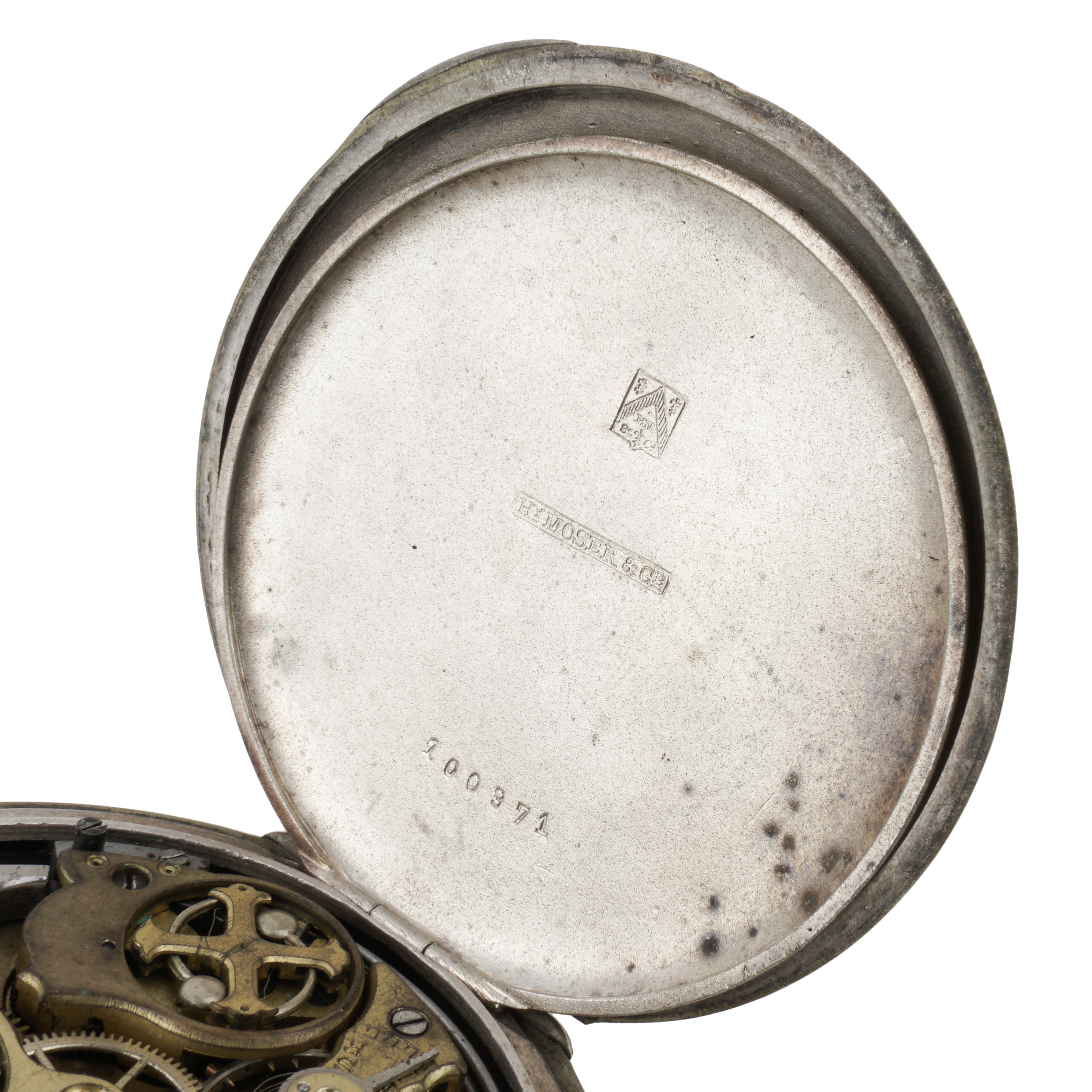 Часы закрытого типа (трёхкрышечные). Серебро, штамп, гравировка, тип корпуса «мыло», ремонтуар. На верхней крышке штампованное выпуклое изображение раненого воина на поле сражения, слева вверху за его головой - знамя с красным крестом, Россия, торговый дом «Генрих Мозер и К», конец 1916 - начало 1917 года, размер - 54 мм, вес ± 115 грамм