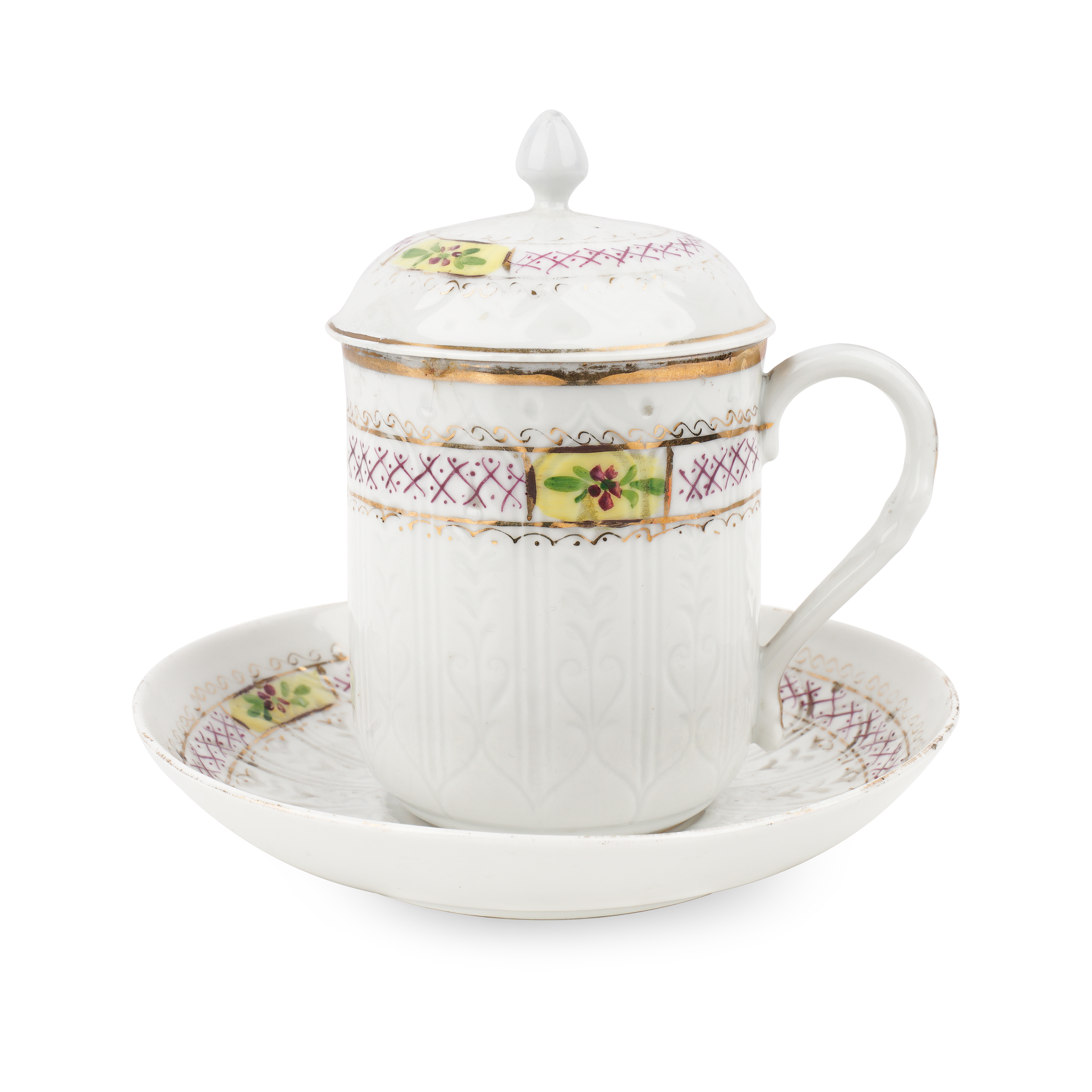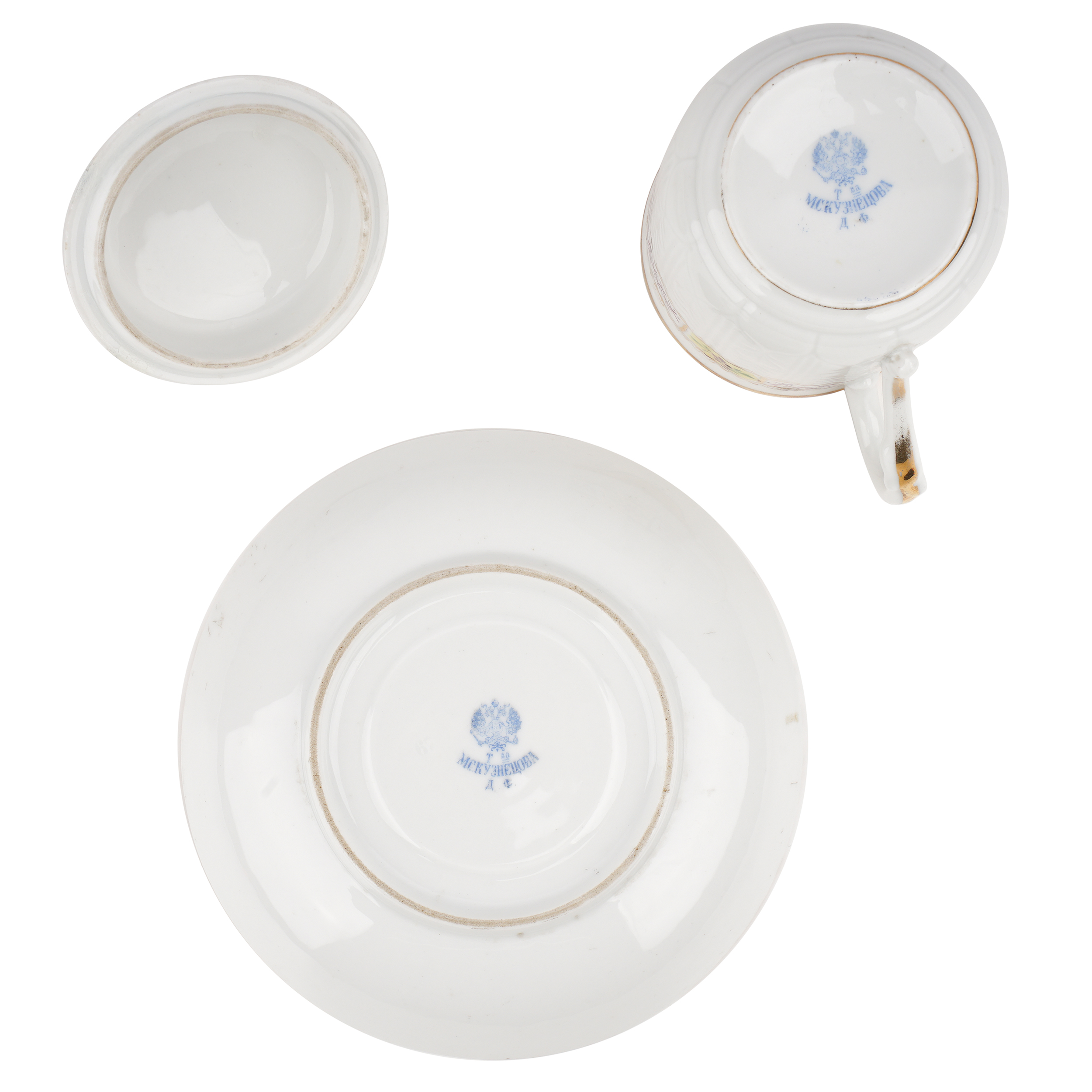 Состояние: Потертости золочения, небольшая реставрация по борту крышки, хватка; две сквозные трещины на кружке