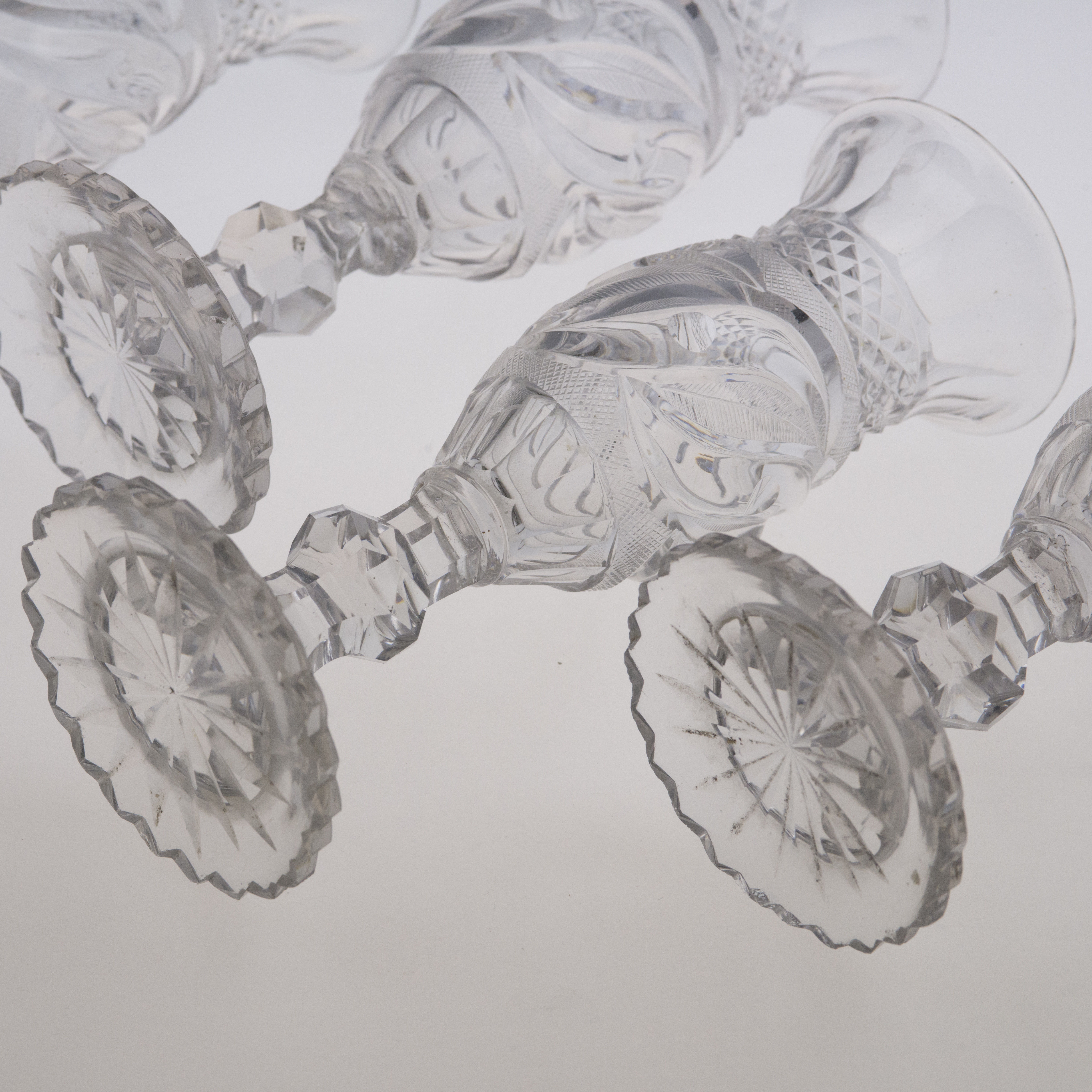 Предметы Пригородного «Гранного» сервиза. Бесцветный хрусталь, выдувание в форму, гранение – «павлинье перо», шлифовка; высота бокалов – 17,9 см.