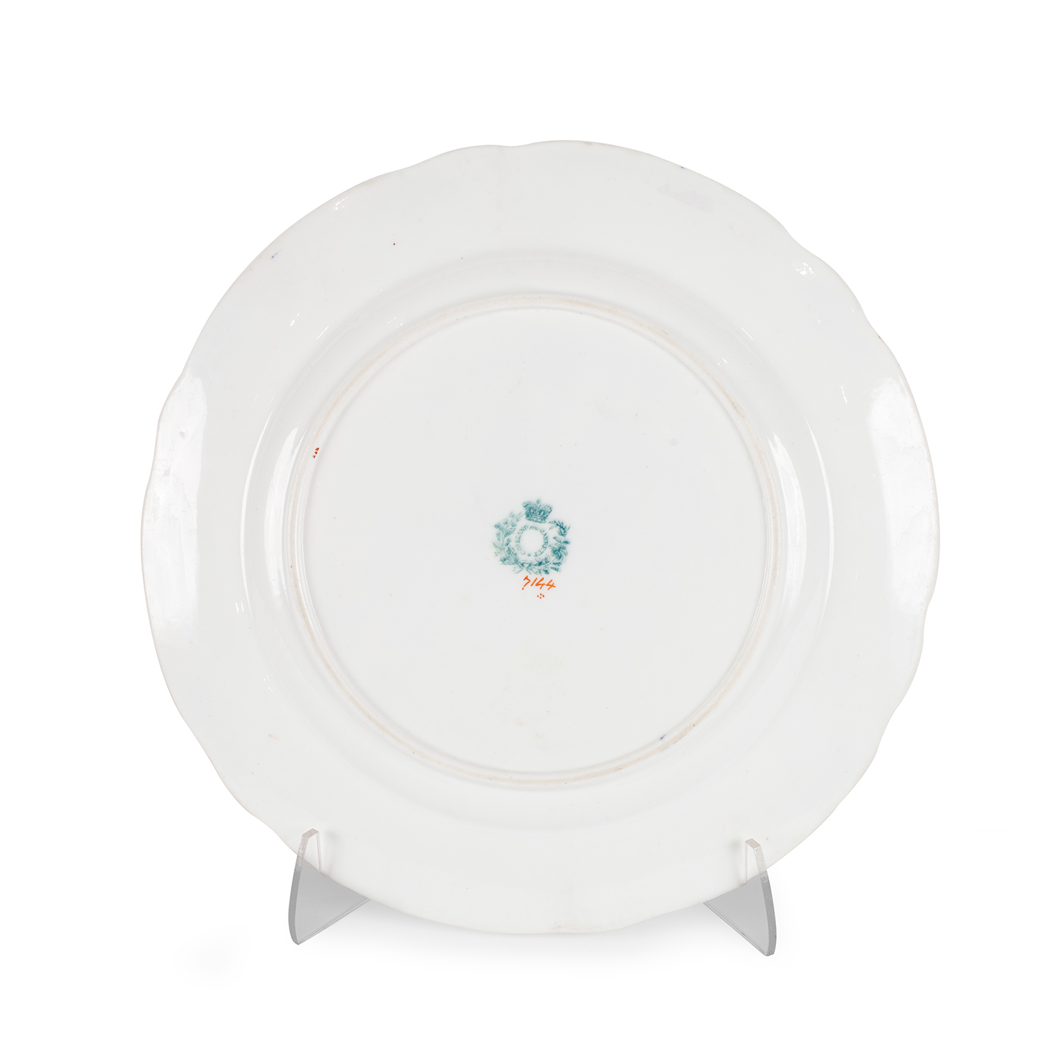 Опак, подглазурная роспись кобальтом, надглазурная роспись, золочение, зеленое подглазурное клеймо «Copeland and Garrett» по кругу с растительным орнаментом под короной; цифры от руки красным «7144», мануфактура «Коупленд и Гарретт», Англия, Стаффордшир, Сток-он-Трент, 1833-1847 годы, диаметр - 26 см